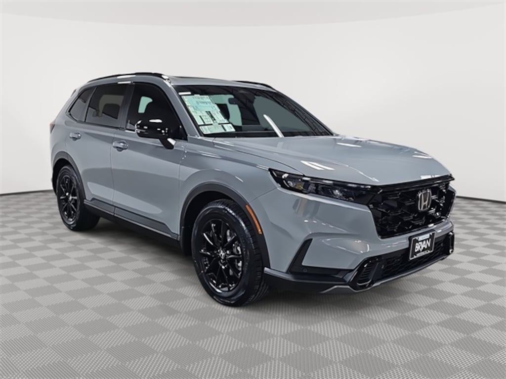 This 2026 Honda CR-V Hybrid Sport-L in Urban Gray Pearl features: 2.0L I4 DOHC 16V, 2.0L I4 DOHC 16V, 4-Wheel Disc Brakes, 8 Speakers, ABS brakes, Adaptive Cruise Control: Adaptive Cruise Control (ACC) with Low-Speed Follow, Air Conditioning, Alloy wheels, Apple CarPlay/Android Auto, Auto High-beam Headlights, Auto-dimming Rear-View mirror, Automatic temperature control, Blind Spot Information (BSI) System warning, Brake assist, Bumpers: body-color, Compass, Delay-off headlights, Driver door bin, Driver vanity mirror, Dual front impact airbags, Dual front side impact airbags, Electronic Stability Control, Exterior Parking Camera Rear, Four wheel independent suspension, Front anti-roll bar, Front Bucket Seats, Front Center Armrest, Front dual zone A/C, Front reading lights, Fully automatic headlights, Heated door mirrors, Heated Front Bucket Seats, Heated front seats, Illuminated entry, Knee airbag, Leather Seat Trim, Leather Shift Knob, Leather steering wheel, Low tire pressure warning, Memory seat, Occupant sensing airbag, Outside temperature display, Overhead airbag, Overhead console, Panic alarm, Passenger door bin, Passenger vanity mirror, Power door mirrors, Power driver seat, Power Liftgate, Power moonroof, Power passenger seat, Power steering, Power windows, Radio data system, Radio: 320-Watt AM/FM Audio System, Rear anti-roll bar, Rear reading lights, Rear seat center armrest, Rear side impact airbag, Rear window defroster, Rear window wiper, Remote keyless entry, Security system, Speed control, Speed-sensing steering, Speed-Sensitive Wipers, Split folding rear seat, Spoiler, Steering wheel mounted audio controls, Telescoping steering wheel, Tilt steering wheel, Traction control, Trip computer, Turn signal indicator mirrors, Variably intermittent wipers, Wheels: 18" Berlina Black.