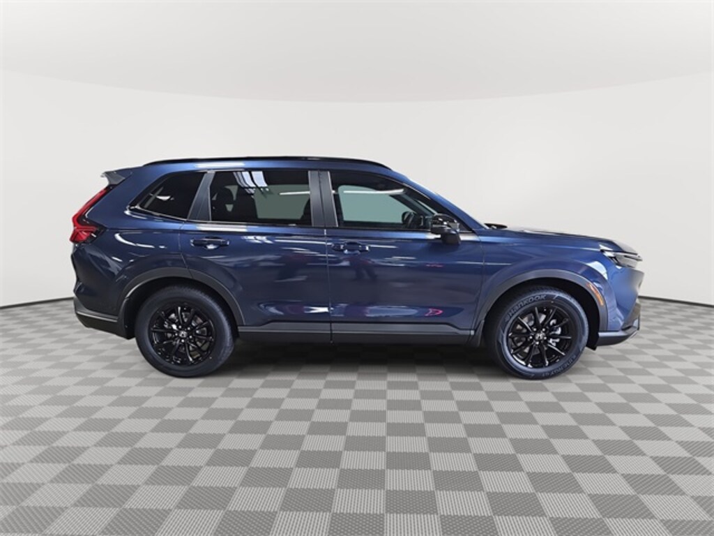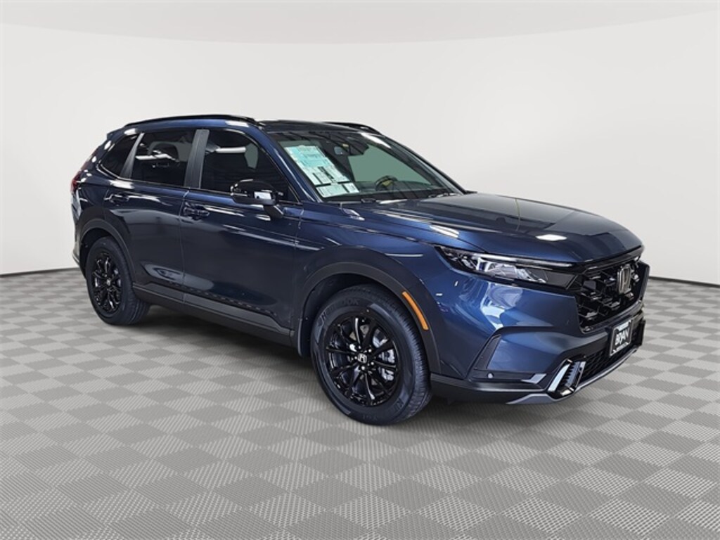 This 2026 Honda CR-V Hybrid Sport-L in Canyon River Blue Metallic features: 2.0L I4 DOHC 16V, 2.0L I4 DOHC 16V, 4-Wheel Disc Brakes, 8 Speakers, ABS brakes, Adaptive Cruise Control: Adaptive Cruise Control (ACC) with Low-Speed Follow, Air Conditioning, Alloy wheels, AM/FM radio, Apple CarPlay/Android Auto, Auto High-beam Headlights, Auto-dimming Rear-View mirror, Automatic temperature control, Blind Spot Information (BSI) System warning, Brake assist, Bumpers: body-color, Compass, Delay-off headlights, Driver door bin, Driver vanity mirror, Dual front impact airbags, Dual front side impact airbags, Electronic Stability Control, Exterior Parking Camera Rear, Four wheel independent suspension, Front anti-roll bar, Front Bucket Seats, Front Center Armrest, Front dual zone A/C, Front reading lights, Fully automatic headlights, Heated door mirrors, Heated Front Bucket Seats, Heated front seats, Illuminated entry, Knee airbag, Leather Seat Trim, Leather Shift Knob, Leather steering wheel, Low tire pressure warning, Memory seat, Occupant sensing airbag, Outside temperature display, Overhead airbag, Overhead console, Panic alarm, Passenger door bin, Passenger vanity mirror, Power door mirrors, Power driver seat, Power Liftgate, Power moonroof, Power passenger seat, Power steering, Power windows, Radio data system, Radio: 320-Watt AM/FM Audio System, Rear anti-roll bar, Rear reading lights, Rear seat center armrest, Rear side impact airbag, Rear window defroster, Rear window wiper, Remote keyless entry, Security system, Speed control, Speed-sensing steering, Speed-Sensitive Wipers, Split folding rear seat, Spoiler, Steering wheel mounted audio controls, Telescoping steering wheel, Tilt steering wheel, Traction control, Trip computer, Turn signal indicator mirrors, Variably intermittent wipers, Wheels: 18" Berlina Black.