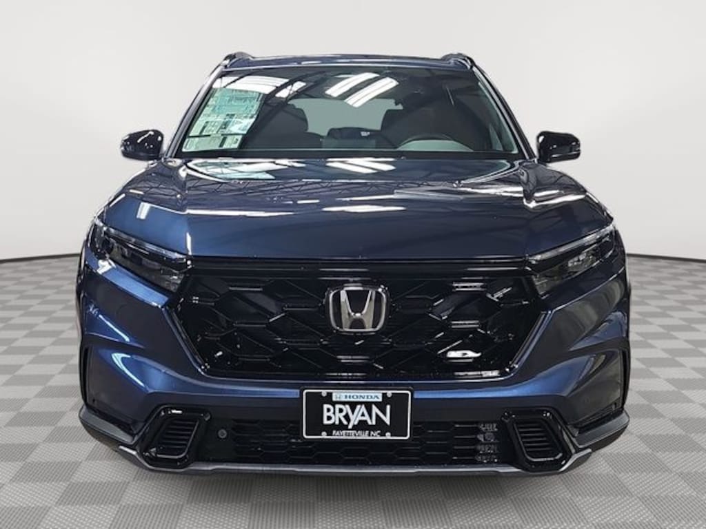 This 2026 Honda CR-V Hybrid Sport-L in Canyon River Blue Metallic features: 2.0L I4 DOHC 16V, 2.0L I4 DOHC 16V, 4-Wheel Disc Brakes, 8 Speakers, ABS brakes, Adaptive Cruise Control: Adaptive Cruise Control (ACC) with Low-Speed Follow, Air Conditioning, Alloy wheels, AM/FM radio, Apple CarPlay/Android Auto, Auto High-beam Headlights, Auto-dimming Rear-View mirror, Automatic temperature control, Blind Spot Information (BSI) System warning, Brake assist, Bumpers: body-color, Compass, Delay-off headlights, Driver door bin, Driver vanity mirror, Dual front impact airbags, Dual front side impact airbags, Electronic Stability Control, Exterior Parking Camera Rear, Four wheel independent suspension, Front anti-roll bar, Front Bucket Seats, Front Center Armrest, Front dual zone A/C, Front reading lights, Fully automatic headlights, Heated door mirrors, Heated Front Bucket Seats, Heated front seats, Illuminated entry, Knee airbag, Leather Seat Trim, Leather Shift Knob, Leather steering wheel, Low tire pressure warning, Memory seat, Occupant sensing airbag, Outside temperature display, Overhead airbag, Overhead console, Panic alarm, Passenger door bin, Passenger vanity mirror, Power door mirrors, Power driver seat, Power Liftgate, Power moonroof, Power passenger seat, Power steering, Power windows, Radio data system, Radio: 320-Watt AM/FM Audio System, Rear anti-roll bar, Rear reading lights, Rear seat center armrest, Rear side impact airbag, Rear window defroster, Rear window wiper, Remote keyless entry, Security system, Speed control, Speed-sensing steering, Speed-Sensitive Wipers, Split folding rear seat, Spoiler, Steering wheel mounted audio controls, Telescoping steering wheel, Tilt steering wheel, Traction control, Trip computer, Turn signal indicator mirrors, Variably intermittent wipers, Wheels: 18" Berlina Black.