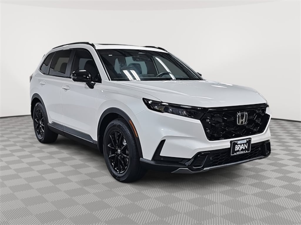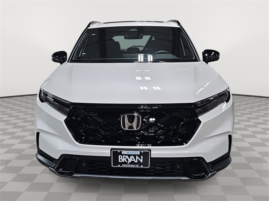 This 2026 Honda CR-V Hybrid Sport-L in Platinum White Pearl features: 2.0L I4 DOHC 16V, 2.0L I4 DOHC 16V, 4-Wheel Disc Brakes, 8 Speakers, ABS brakes, Adaptive Cruise Control: Adaptive Cruise Control (ACC) with Low-Speed Follow, Air Conditioning, Alloy wheels, Apple CarPlay/Android Auto, Auto High-beam Headlights, Auto-dimming Rear-View mirror, Automatic temperature control, Blind Spot Information (BSI) System warning, Brake assist, Bumpers: body-color, Compass, Delay-off headlights, Driver door bin, Driver vanity mirror, Dual front impact airbags, Dual front side impact airbags, Electronic Stability Control, Exterior Parking Camera Rear, Four wheel independent suspension, Front anti-roll bar, Front Bucket Seats, Front Center Armrest, Front dual zone A/C, Front reading lights, Fully automatic headlights, Heated door mirrors, Heated Front Bucket Seats, Heated front seats, Illuminated entry, Knee airbag, Leather Seat Trim, Leather Shift Knob, Leather steering wheel, Low tire pressure warning, Memory seat, Occupant sensing airbag, Outside temperature display, Overhead airbag, Overhead console, Panic alarm, Passenger door bin, Passenger vanity mirror, Power door mirrors, Power driver seat, Power Liftgate, Power moonroof, Power passenger seat, Power steering, Power windows, Radio data system, Radio: 320-Watt AM/FM Audio System, Rear anti-roll bar, Rear reading lights, Rear seat center armrest, Rear side impact airbag, Rear window defroster, Rear window wiper, Remote keyless entry, Security system, Speed control, Speed-sensing steering, Speed-Sensitive Wipers, Split folding rear seat, Spoiler, Steering wheel mounted audio controls, Telescoping steering wheel, Tilt steering wheel, Traction control, Trip computer, Turn signal indicator mirrors, Variably intermittent wipers, Wheels: 18" Berlina Black.