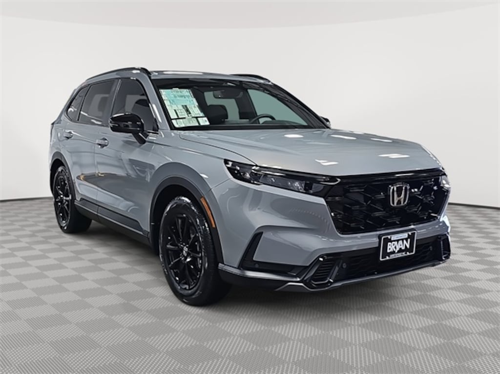 This 2026 Honda CR-V Hybrid Sport-L in Urban Gray Pearl features: 2.0L I4 DOHC 16V, 2.0L I4 DOHC 16V, 4-Wheel Disc Brakes, 8 Speakers, ABS brakes, Adaptive Cruise Control: Adaptive Cruise Control (ACC) with Low-Speed Follow, Air Conditioning, Alloy wheels, Apple CarPlay/Android Auto, Auto High-beam Headlights, Auto-dimming Rear-View mirror, Automatic temperature control, Blind Spot Information (BSI) System warning, Brake assist, Bumpers: body-color, Compass, Delay-off headlights, Driver door bin, Driver vanity mirror, Dual front impact airbags, Dual front side impact airbags, Electronic Stability Control, Exterior Parking Camera Rear, Four wheel independent suspension, Front anti-roll bar, Front Bucket Seats, Front Center Armrest, Front dual zone A/C, Front reading lights, Fully automatic headlights, Heated door mirrors, Heated Front Bucket Seats, Heated front seats, Illuminated entry, Knee airbag, Leather Seat Trim, Leather Shift Knob, Leather steering wheel, Low tire pressure warning, Memory seat, Occupant sensing airbag, Outside temperature display, Overhead airbag, Overhead console, Panic alarm, Passenger door bin, Passenger vanity mirror, Power door mirrors, Power driver seat, Power Liftgate, Power moonroof, Power passenger seat, Power steering, Power windows, Radio data system, Radio: 320-Watt AM/FM Audio System, Rear anti-roll bar, Rear reading lights, Rear seat center armrest, Rear side impact airbag, Rear window defroster, Rear window wiper, Remote keyless entry, Security system, Speed control, Speed-sensing steering, Speed-Sensitive Wipers, Split folding rear seat, Spoiler, Steering wheel mounted audio controls, Telescoping steering wheel, Tilt steering wheel, Traction control, Trip computer, Turn signal indicator mirrors, Variably intermittent wipers, Wheels: 18" Berlina Black.