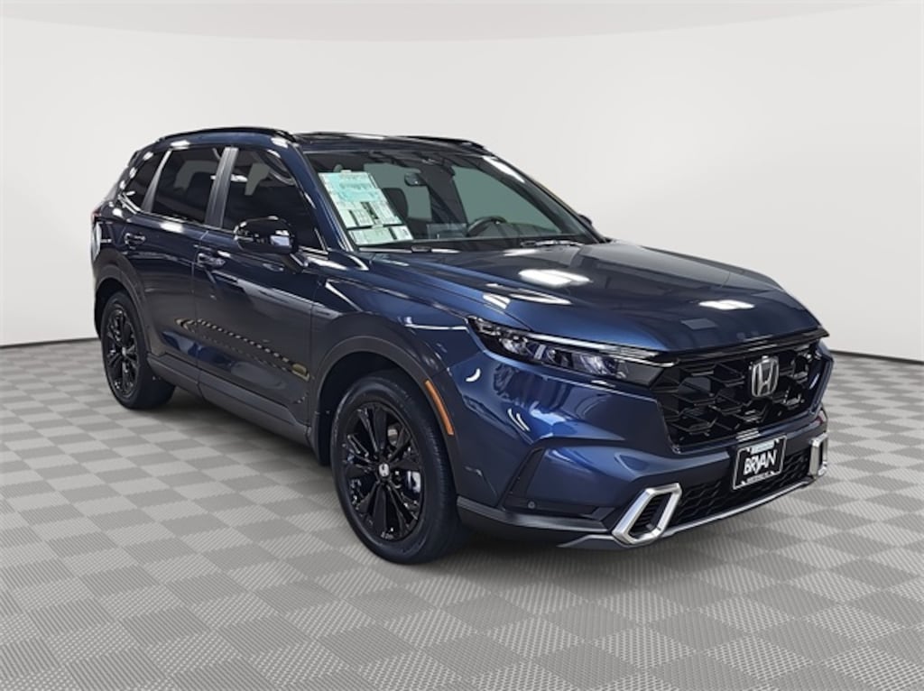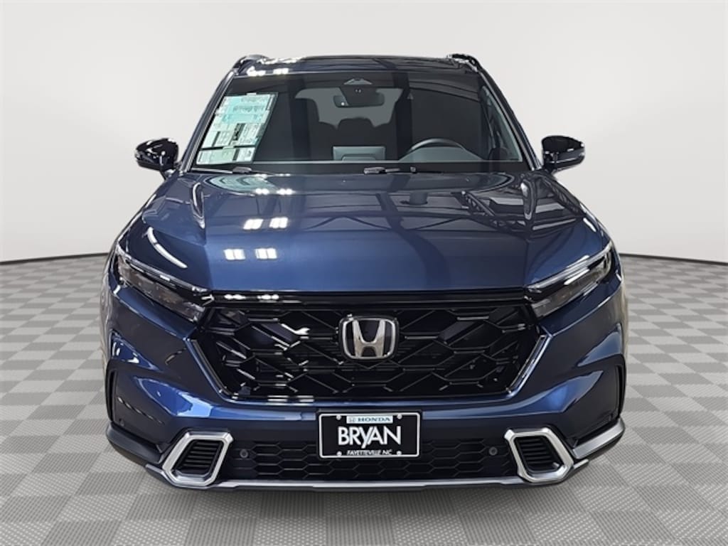 This 2026 Honda CR-V Hybrid Sport Touring in Canyon River Blue Metallic features: 2.0L I4 DOHC 16V, 2.0L I4 DOHC 16V, 12 Speakers, 4-Wheel Disc Brakes, ABS brakes, Adaptive Cruise Control: Adaptive Cruise Control (ACC) with Low-Speed Follow, Air Conditioning, Alloy wheels, Apple CarPlay/Android Auto, Auto High-beam Headlights, Auto-dimming Rear-View mirror, Automatic temperature control, Blind Spot Information (BSI) System warning, Bose Premium Sound System, Brake assist, Bumpers: body-color, Compass, Delay-off headlights, Driver door bin, Driver vanity mirror, Dual front impact airbags, Dual front side impact airbags, Electronic Stability Control, Exterior Parking Camera Rear, Four wheel independent suspension, Front anti-roll bar, Front Bucket Seats, Front Center Armrest, Front dual zone A/C, Front reading lights, Fully automatic headlights, Heated door mirrors, Heated Front Bucket Seats, Heated front seats, Heated steering wheel, Illuminated entry, Knee airbag, Leather Seat Trim, Leather Shift Knob, Leather steering wheel, Low tire pressure warning, Memory seat, Navigation system: Google Maps, Occupant sensing airbag, Outside temperature display, Overhead airbag, Overhead console, Panic alarm, Passenger door bin, Passenger vanity mirror, Power door mirrors, Power driver seat, Power Liftgate, Power moonroof, Power passenger seat, Power steering, Power windows, Radio data system, Rain sensing wipers, Rear anti-roll bar, Rear reading lights, Rear seat center armrest, Rear side impact airbag, Rear window defroster, Rear window wiper, Remote keyless entry, Security system, Speed control, Speed-sensing steering, Speed-Sensitive Wipers, Split folding rear seat, Spoiler, Steering wheel mounted audio controls, Telescoping steering wheel, Tilt steering wheel, Traction control, Trip computer, Turn signal indicator mirrors, Variably intermittent wipers, Wheels: 19" Berlina Black.