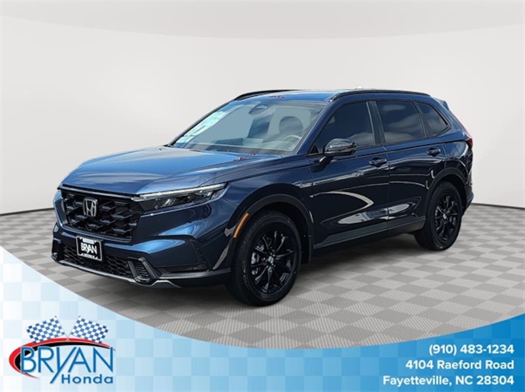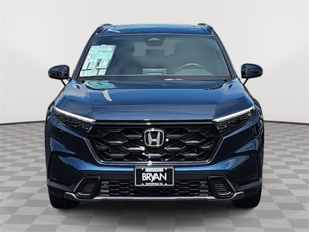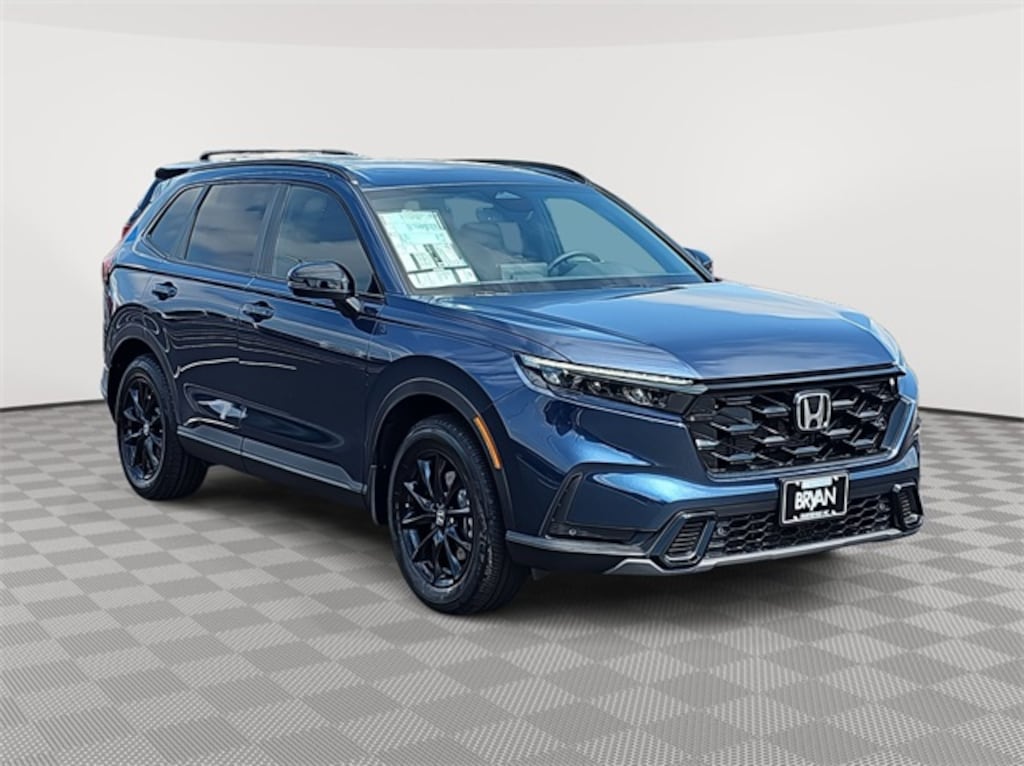 This 2026 Honda CR-V Hybrid Sport-L in Canyon River Blue Metallic features: 2.0L I4 DOHC 16V, 2.0L I4 DOHC 16V, 4-Wheel Disc Brakes, 8 Speakers, ABS brakes, Adaptive Cruise Control: Adaptive Cruise Control (ACC) with Low-Speed Follow, Air Conditioning, Alloy wheels, Apple CarPlay/Android Auto, Auto High-beam Headlights, Auto-dimming Rear-View mirror, Automatic temperature control, Blind Spot Information (BSI) System warning, Brake assist, Bumpers: body-color, Compass, Delay-off headlights, Driver door bin, Driver vanity mirror, Dual front impact airbags, Dual front side impact airbags, Electronic Stability Control, Exterior Parking Camera Rear, Four wheel independent suspension, Front anti-roll bar, Front Bucket Seats, Front Center Armrest, Front dual zone A/C, Front reading lights, Fully automatic headlights, Heated door mirrors, Heated Front Bucket Seats, Heated front seats, Illuminated entry, Knee airbag, Leather Seat Trim, Leather Shift Knob, Leather steering wheel, Low tire pressure warning, Memory seat, Occupant sensing airbag, Outside temperature display, Overhead airbag, Overhead console, Panic alarm, Passenger door bin, Passenger vanity mirror, Power door mirrors, Power driver seat, Power Liftgate, Power moonroof, Power passenger seat, Power steering, Power windows, Radio data system, Radio: 320-Watt AM/FM Audio System, Rear anti-roll bar, Rear reading lights, Rear seat center armrest, Rear side impact airbag, Rear window defroster, Rear window wiper, Remote keyless entry, Security system, Speed control, Speed-sensing steering, Speed-Sensitive Wipers, Split folding rear seat, Spoiler, Steering wheel mounted audio controls, Telescoping steering wheel, Tilt steering wheel, Traction control, Trip computer, Turn signal indicator mirrors, Variably intermittent wipers, Wheels: 18" Berlina Black.