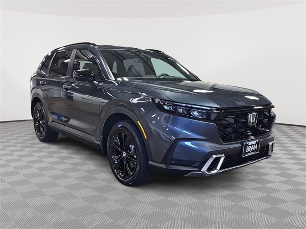 This 2026 Honda CR-V Hybrid Sport Touring in Meteorite Gray Metallic features: 2.0L I4 DOHC 16V, 2.0L I4 DOHC 16V, 12 Speakers, 4-Wheel Disc Brakes, ABS brakes, Adaptive Cruise Control: Adaptive Cruise Control (ACC) with Low-Speed Follow, Air Conditioning, Alloy wheels, Apple CarPlay/Android Auto, Auto High-beam Headlights, Auto-dimming Rear-View mirror, Automatic temperature control, Blind Spot Information (BSI) System warning, Bose Premium Sound System, Brake assist, Bumpers: body-color, Compass, Delay-off headlights, Driver door bin, Driver vanity mirror, Dual front impact airbags, Dual front side impact airbags, Electronic Stability Control, Exterior Parking Camera Rear, Four wheel independent suspension, Front anti-roll bar, Front Bucket Seats, Front Center Armrest, Front dual zone A/C, Front reading lights, Fully automatic headlights, Heated door mirrors, Heated Front Bucket Seats, Heated front seats, Heated steering wheel, Illuminated entry, Knee airbag, Leather Seat Trim, Leather Shift Knob, Leather steering wheel, Low tire pressure warning, Memory seat, Navigation system: Google Maps, Occupant sensing airbag, Outside temperature display, Overhead airbag, Overhead console, Panic alarm, Passenger door bin, Passenger vanity mirror, Power door mirrors, Power driver seat, Power Liftgate, Power moonroof, Power passenger seat, Power steering, Power windows, Radio data system, Rain sensing wipers, Rear anti-roll bar, Rear reading lights, Rear seat center armrest, Rear side impact airbag, Rear window defroster, Rear window wiper, Remote keyless entry, Security system, Speed control, Speed-sensing steering, Speed-Sensitive Wipers, Split folding rear seat, Spoiler, Steering wheel mounted audio controls, Telescoping steering wheel, Tilt steering wheel, Traction control, Trip computer, Turn signal indicator mirrors, Variably intermittent wipers, Wheels: 19" Berlina Black.