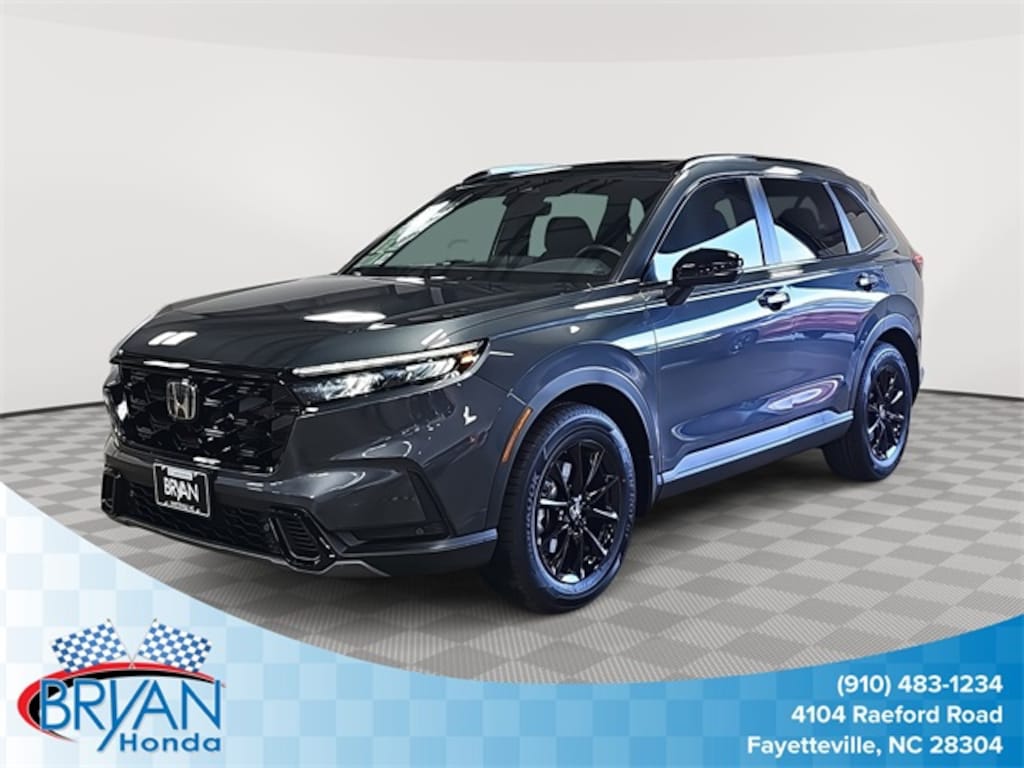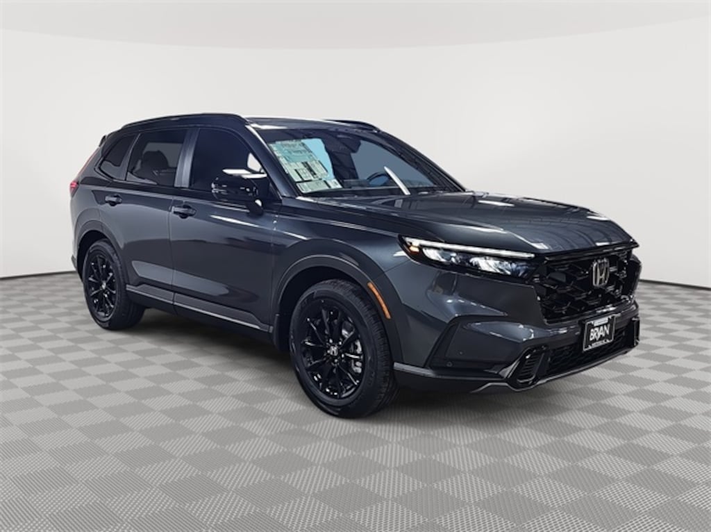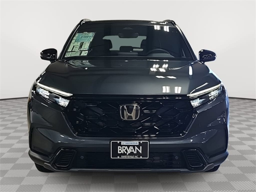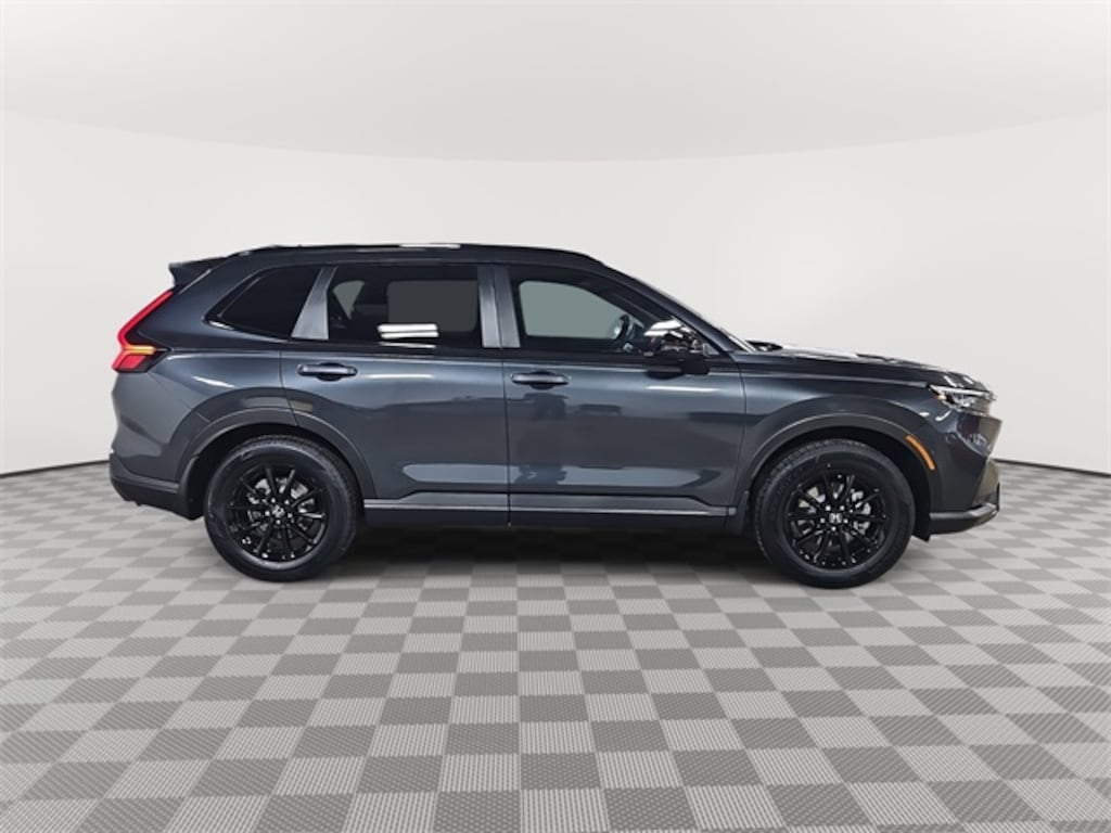 This 2026 Honda CR-V Hybrid Sport-L in Meteorite Gray Metallic features: 2.0L I4 DOHC 16V, 2.0L I4 DOHC 16V, 4-Wheel Disc Brakes, 8 Speakers, ABS brakes, Adaptive Cruise Control: Adaptive Cruise Control (ACC) with Low-Speed Follow, Air Conditioning, Alloy wheels, Apple CarPlay/Android Auto, Auto High-beam Headlights, Auto-dimming Rear-View mirror, Automatic temperature control, Blind Spot Information (BSI) System warning, Brake assist, Bumpers: body-color, Compass, Delay-off headlights, Driver door bin, Driver vanity mirror, Dual front impact airbags, Dual front side impact airbags, Electronic Stability Control, Exterior Parking Camera Rear, Four wheel independent suspension, Front anti-roll bar, Front Bucket Seats, Front Center Armrest, Front dual zone A/C, Front reading lights, Fully automatic headlights, Heated door mirrors, Heated Front Bucket Seats, Heated front seats, Illuminated entry, Knee airbag, Leather Seat Trim, Leather Shift Knob, Leather steering wheel, Low tire pressure warning, Memory seat, Occupant sensing airbag, Outside temperature display, Overhead airbag, Overhead console, Panic alarm, Passenger door bin, Passenger vanity mirror, Power door mirrors, Power driver seat, Power Liftgate, Power moonroof, Power passenger seat, Power steering, Power windows, Radio data system, Radio: 320-Watt AM/FM Audio System, Rear anti-roll bar, Rear reading lights, Rear seat center armrest, Rear side impact airbag, Rear window defroster, Rear window wiper, Remote keyless entry, Security system, Speed control, Speed-sensing steering, Speed-Sensitive Wipers, Split folding rear seat, Spoiler, Steering wheel mounted audio controls, Telescoping steering wheel, Tilt steering wheel, Traction control, Trip computer, Turn signal indicator mirrors, Variably intermittent wipers, Wheels: 18" Berlina Black.