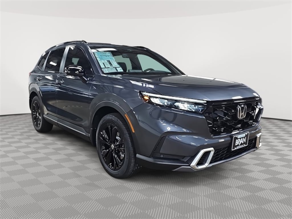 This 2026 Honda CR-V Hybrid Sport Touring in Meteorite Gray Metallic features: 2.0L I4 DOHC 16V, 2.0L I4 DOHC 16V, 12 Speakers, 4-Wheel Disc Brakes, ABS brakes, Adaptive Cruise Control: Adaptive Cruise Control (ACC) with Low-Speed Follow, Air Conditioning, Alloy wheels, Apple CarPlay/Android Auto, Auto High-beam Headlights, Auto-dimming Rear-View mirror, Automatic temperature control, Blind Spot Information (BSI) System warning, Bose Premium Sound System, Brake assist, Bumpers: body-color, Compass, Delay-off headlights, Driver door bin, Driver vanity mirror, Dual front impact airbags, Dual front side impact airbags, Electronic Stability Control, Exterior Parking Camera Rear, Four wheel independent suspension, Front anti-roll bar, Front Bucket Seats, Front Center Armrest, Front dual zone A/C, Front reading lights, Fully automatic headlights, Heated door mirrors, Heated Front Bucket Seats, Heated front seats, Heated steering wheel, Illuminated entry, Knee airbag, Leather Seat Trim, Leather Shift Knob, Leather steering wheel, Low tire pressure warning, Memory seat, Navigation system: Google Maps, Occupant sensing airbag, Outside temperature display, Overhead airbag, Overhead console, Panic alarm, Passenger door bin, Passenger vanity mirror, Power door mirrors, Power driver seat, Power Liftgate, Power moonroof, Power passenger seat, Power steering, Power windows, Radio data system, Rain sensing wipers, Rear anti-roll bar, Rear reading lights, Rear seat center armrest, Rear side impact airbag, Rear window defroster, Rear window wiper, Remote keyless entry, Security system, Speed control, Speed-sensing steering, Speed-Sensitive Wipers, Split folding rear seat, Spoiler, Steering wheel mounted audio controls, Telescoping steering wheel, Tilt steering wheel, Traction control, Trip computer, Turn signal indicator mirrors, Variably intermittent wipers, Wheels: 19" Berlina Black.
