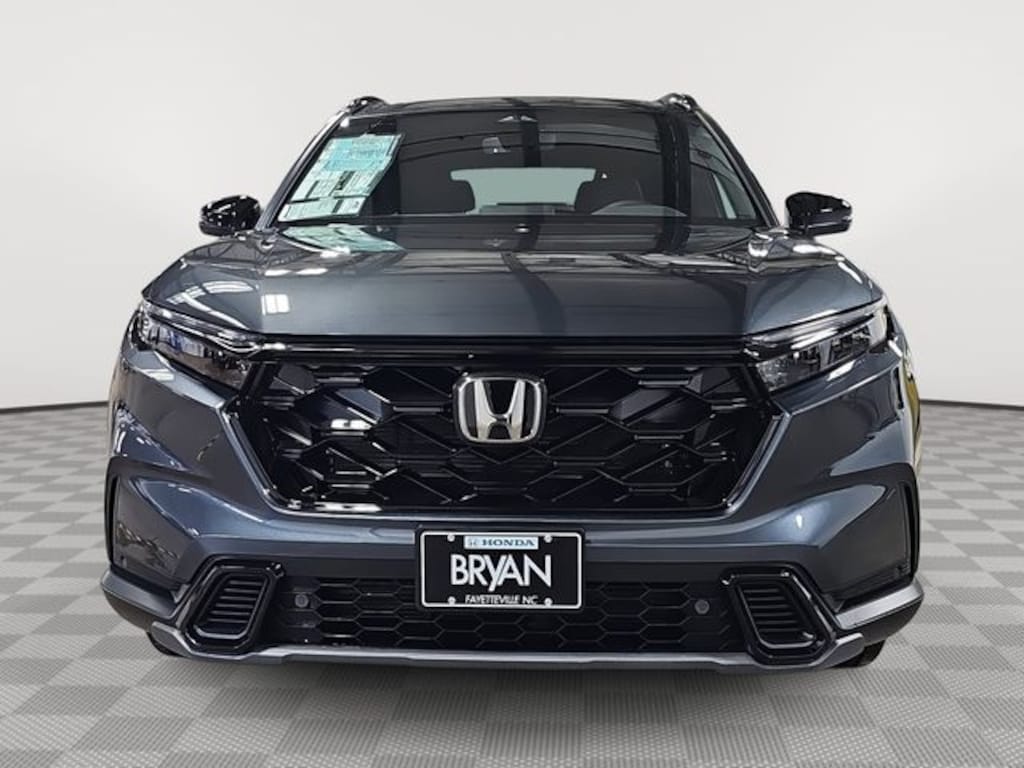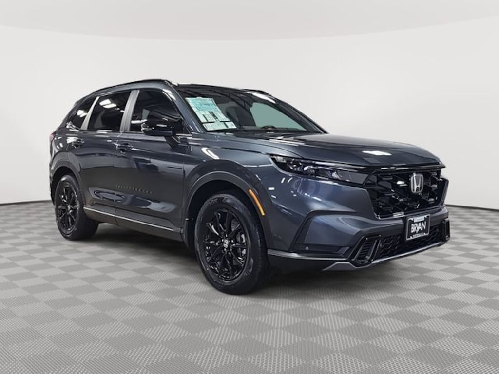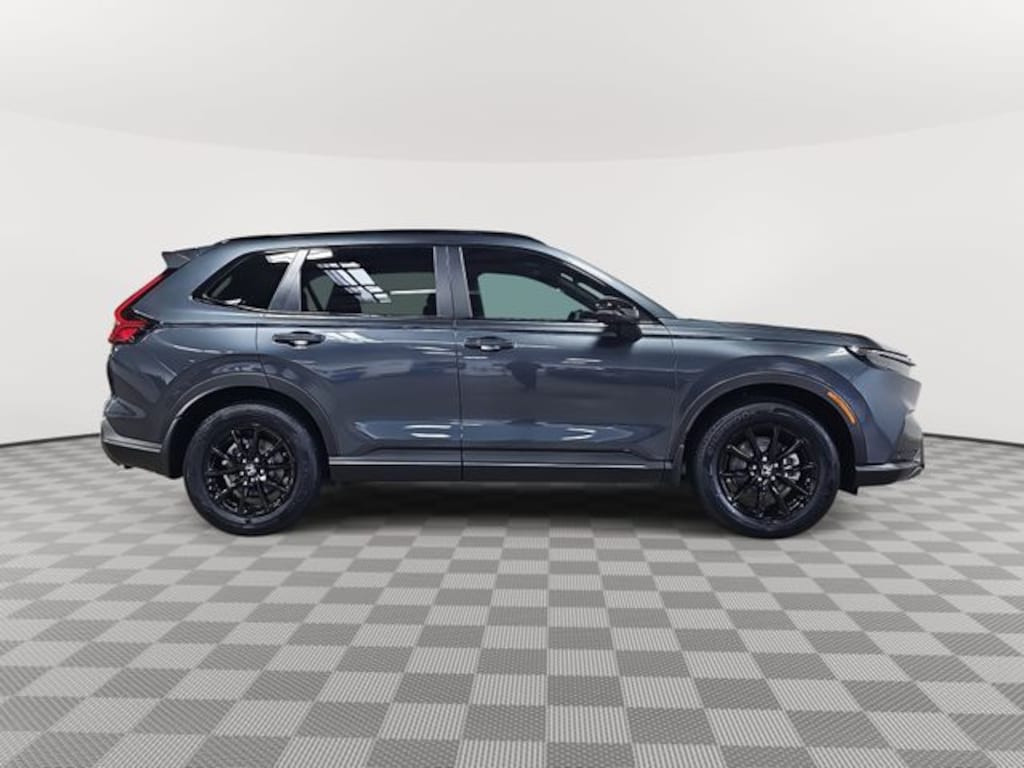 This 2026 Honda CR-V Hybrid Sport-L in Meteorite Gray Metallic features: 2.0L I4 DOHC 16V, 2.0L I4 DOHC 16V, 4-Wheel Disc Brakes, 8 Speakers, ABS brakes, Adaptive Cruise Control: Adaptive Cruise Control (ACC) with Low-Speed Follow, Air Conditioning, Alloy wheels, AM/FM radio, Apple CarPlay/Android Auto, Auto High-beam Headlights, Auto-dimming Rear-View mirror, Automatic temperature control, Blind Spot Information (BSI) System warning, Brake assist, Bumpers: body-color, Compass, Delay-off headlights, Driver door bin, Driver vanity mirror, Dual front impact airbags, Dual front side impact airbags, Electronic Stability Control, Exterior Parking Camera Rear, Four wheel independent suspension, Front anti-roll bar, Front Bucket Seats, Front Center Armrest, Front dual zone A/C, Front reading lights, Fully automatic headlights, Heated door mirrors, Heated Front Bucket Seats, Heated front seats, Illuminated entry, Knee airbag, Leather Seat Trim, Leather Shift Knob, Leather steering wheel, Low tire pressure warning, Memory seat, Occupant sensing airbag, Outside temperature display, Overhead airbag, Overhead console, Panic alarm, Passenger door bin, Passenger vanity mirror, Power door mirrors, Power driver seat, Power Liftgate, Power moonroof, Power passenger seat, Power steering, Power windows, Radio data system, Radio: 320-Watt AM/FM Audio System, Rear anti-roll bar, Rear reading lights, Rear seat center armrest, Rear side impact airbag, Rear window defroster, Rear window wiper, Remote keyless entry, Security system, Speed control, Speed-sensing steering, Speed-Sensitive Wipers, Split folding rear seat, Spoiler, Steering wheel mounted audio controls, Telescoping steering wheel, Tilt steering wheel, Traction control, Trip computer, Turn signal indicator mirrors, Variably intermittent wipers, Wheels: 18" Berlina Black.