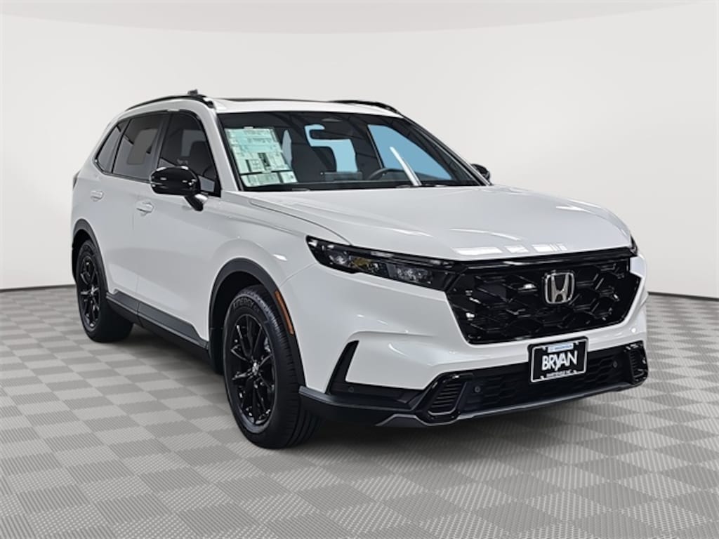 This 2026 Honda CR-V Hybrid Sport-L in Platinum White Pearl features: 2.0L I4 DOHC 16V, 2.0L I4 DOHC 16V, 4-Wheel Disc Brakes, 8 Speakers, ABS brakes, Adaptive Cruise Control: Adaptive Cruise Control (ACC) with Low-Speed Follow, Air Conditioning, Alloy wheels, Apple CarPlay/Android Auto, Auto High-beam Headlights, Auto-dimming Rear-View mirror, Automatic temperature control, Blind Spot Information (BSI) System warning, Brake assist, Bumpers: body-color, Compass, Delay-off headlights, Driver door bin, Driver vanity mirror, Dual front impact airbags, Dual front side impact airbags, Electronic Stability Control, Exterior Parking Camera Rear, Four wheel independent suspension, Front anti-roll bar, Front Bucket Seats, Front Center Armrest, Front dual zone A/C, Front reading lights, Fully automatic headlights, Heated door mirrors, Heated Front Bucket Seats, Heated front seats, Illuminated entry, Knee airbag, Leather Seat Trim, Leather Shift Knob, Leather steering wheel, Low tire pressure warning, Memory seat, Occupant sensing airbag, Outside temperature display, Overhead airbag, Overhead console, Panic alarm, Passenger door bin, Passenger vanity mirror, Power door mirrors, Power driver seat, Power Liftgate, Power moonroof, Power passenger seat, Power steering, Power windows, Radio data system, Radio: 320-Watt AM/FM Audio System, Rear anti-roll bar, Rear reading lights, Rear seat center armrest, Rear side impact airbag, Rear window defroster, Rear window wiper, Remote keyless entry, Security system, Speed control, Speed-sensing steering, Speed-Sensitive Wipers, Split folding rear seat, Spoiler, Steering wheel mounted audio controls, Telescoping steering wheel, Tilt steering wheel, Traction control, Trip computer, Turn signal indicator mirrors, Variably intermittent wipers, Wheels: 18" Berlina Black.