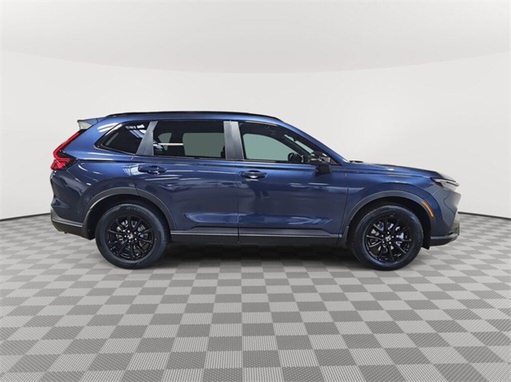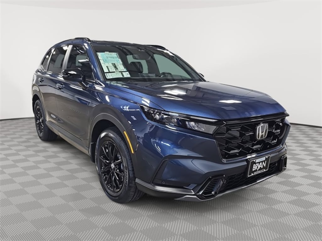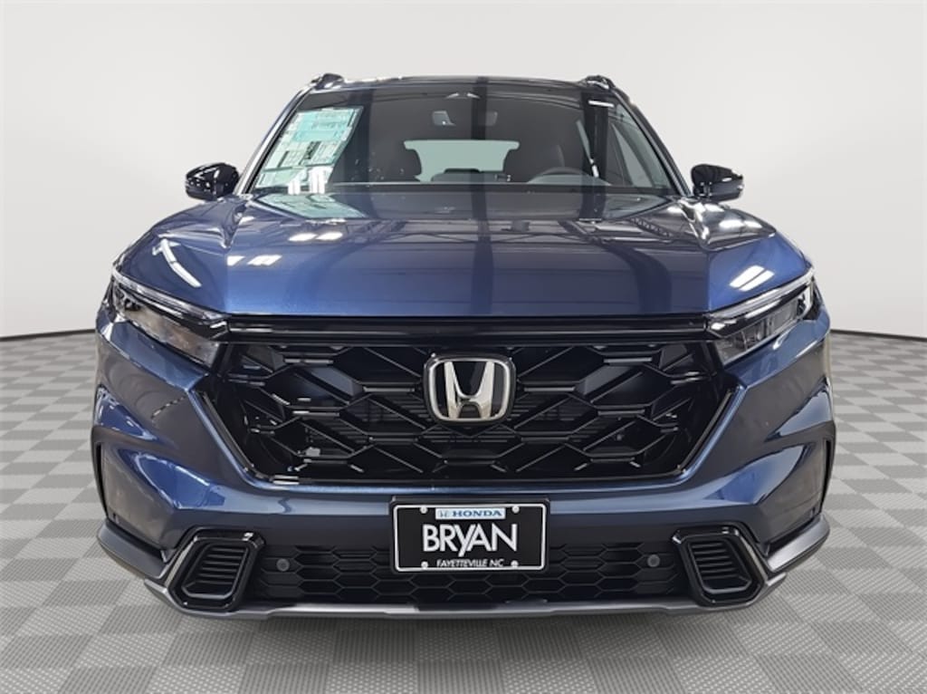This 2026 Honda CR-V Hybrid Sport-L in Canyon River Blue Metallic features: 2.0L I4 DOHC 16V, 2.0L I4 DOHC 16V, 4-Wheel Disc Brakes, 8 Speakers, ABS brakes, Adaptive Cruise Control: Adaptive Cruise Control (ACC) with Low-Speed Follow, Air Conditioning, Alloy wheels, AM/FM radio, Apple CarPlay/Android Auto, Auto High-beam Headlights, Auto-dimming Rear-View mirror, Automatic temperature control, Blind Spot Information (BSI) System warning, Brake assist, Bumpers: body-color, Compass, Delay-off headlights, Driver door bin, Driver vanity mirror, Dual front impact airbags, Dual front side impact airbags, Electronic Stability Control, Exterior Parking Camera Rear, Four wheel independent suspension, Front anti-roll bar, Front Bucket Seats, Front Center Armrest, Front dual zone A/C, Front reading lights, Fully automatic headlights, Heated door mirrors, Heated Front Bucket Seats, Heated front seats, Illuminated entry, Knee airbag, Leather Seat Trim, Leather Shift Knob, Leather steering wheel, Low tire pressure warning, Memory seat, Occupant sensing airbag, Outside temperature display, Overhead airbag, Overhead console, Panic alarm, Passenger door bin, Passenger vanity mirror, Power door mirrors, Power driver seat, Power Liftgate, Power moonroof, Power passenger seat, Power steering, Power windows, Radio data system, Radio: 320-Watt AM/FM Audio System, Rear anti-roll bar, Rear reading lights, Rear seat center armrest, Rear side impact airbag, Rear window defroster, Rear window wiper, Remote keyless entry, Security system, Speed control, Speed-sensing steering, Speed-Sensitive Wipers, Split folding rear seat, Spoiler, Steering wheel mounted audio controls, Telescoping steering wheel, Tilt steering wheel, Traction control, Trip computer, Turn signal indicator mirrors, Variably intermittent wipers, Wheels: 18" Berlina Black.