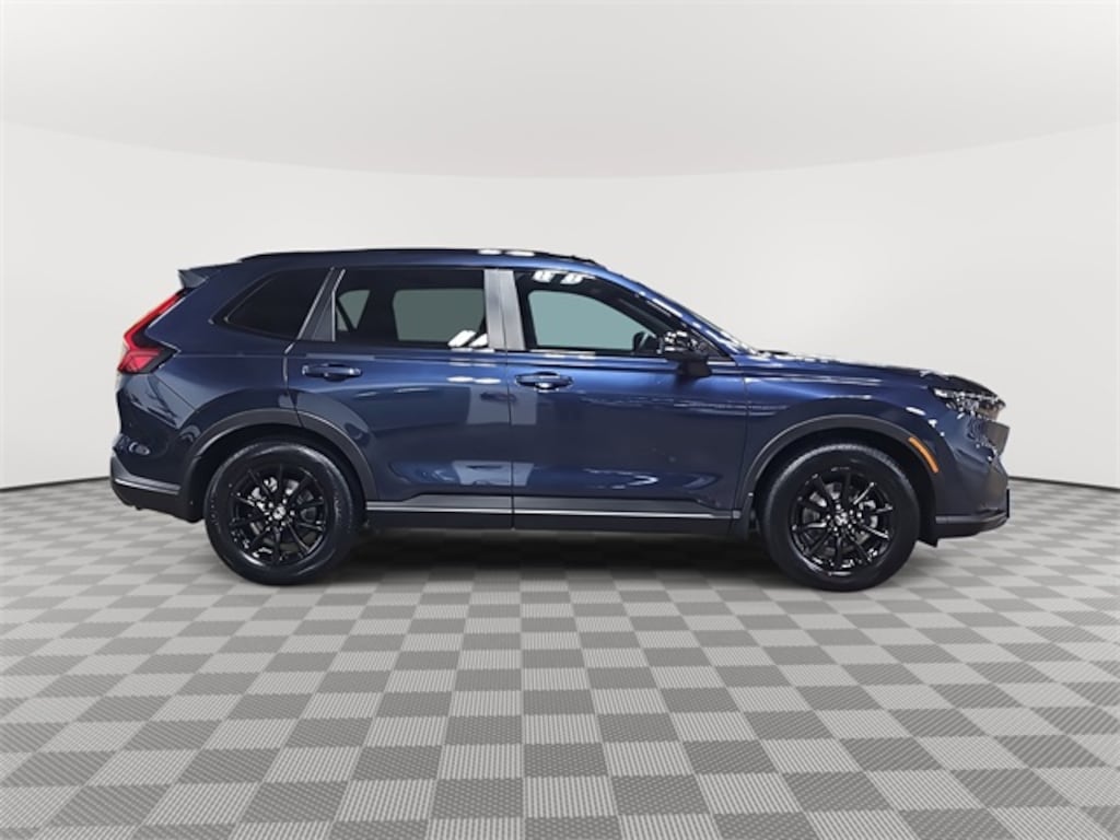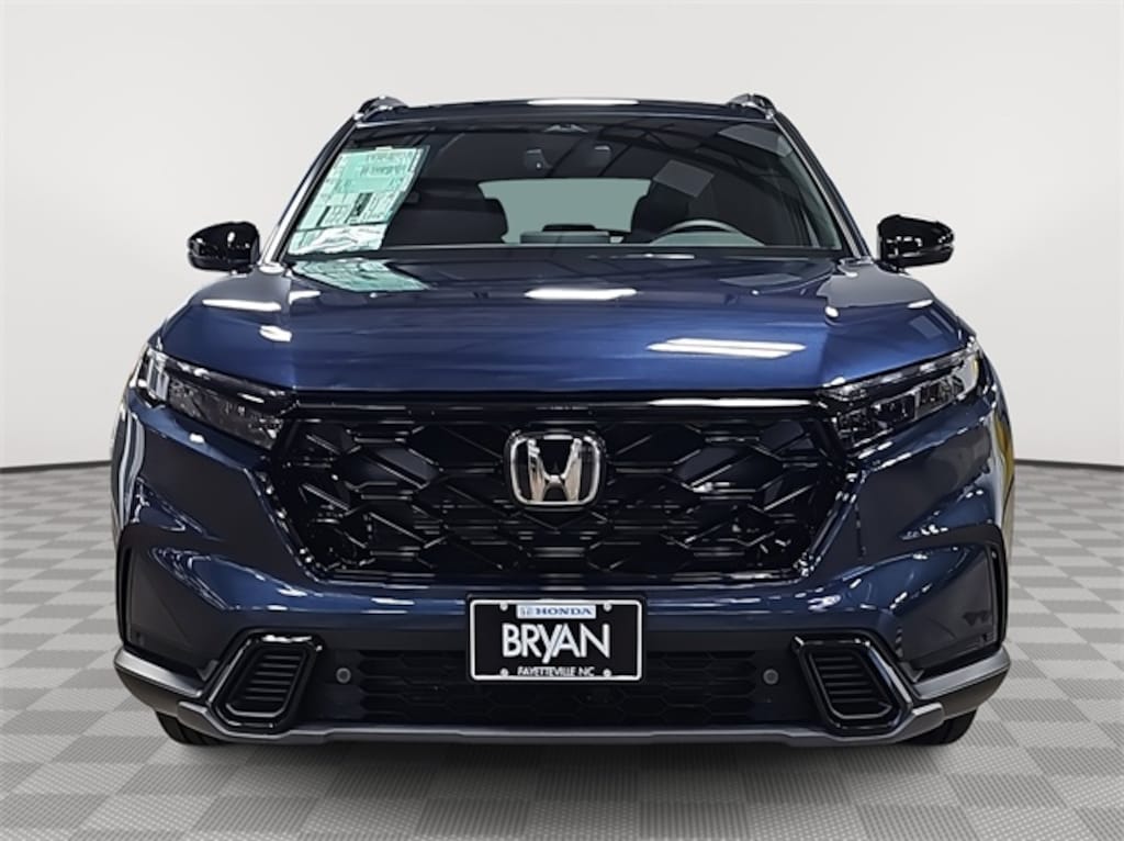 This 2026 Honda CR-V Hybrid Sport-L in Canyon River Blue Metallic features: 2.0L I4 DOHC 16V, 2.0L I4 DOHC 16V, 4-Wheel Disc Brakes, 8 Speakers, ABS brakes, Adaptive Cruise Control: Adaptive Cruise Control (ACC) with Low-Speed Follow, Air Conditioning, Alloy wheels, Apple CarPlay/Android Auto, Auto High-beam Headlights, Auto-dimming Rear-View mirror, Automatic temperature control, Blind Spot Information (BSI) System warning, Brake assist, Bumpers: body-color, Compass, Delay-off headlights, Driver door bin, Driver vanity mirror, Dual front impact airbags, Dual front side impact airbags, Electronic Stability Control, Exterior Parking Camera Rear, Four wheel independent suspension, Front anti-roll bar, Front Bucket Seats, Front Center Armrest, Front dual zone A/C, Front reading lights, Fully automatic headlights, Heated door mirrors, Heated Front Bucket Seats, Heated front seats, Illuminated entry, Knee airbag, Leather Seat Trim, Leather Shift Knob, Leather steering wheel, Low tire pressure warning, Memory seat, Occupant sensing airbag, Outside temperature display, Overhead airbag, Overhead console, Panic alarm, Passenger door bin, Passenger vanity mirror, Power door mirrors, Power driver seat, Power Liftgate, Power moonroof, Power passenger seat, Power steering, Power windows, Radio data system, Radio: 320-Watt AM/FM Audio System, Rear anti-roll bar, Rear reading lights, Rear seat center armrest, Rear side impact airbag, Rear window defroster, Rear window wiper, Remote keyless entry, Security system, Speed control, Speed-sensing steering, Speed-Sensitive Wipers, Split folding rear seat, Spoiler, Steering wheel mounted audio controls, Telescoping steering wheel, Tilt steering wheel, Traction control, Trip computer, Turn signal indicator mirrors, Variably intermittent wipers, Wheels: 18" Berlina Black.