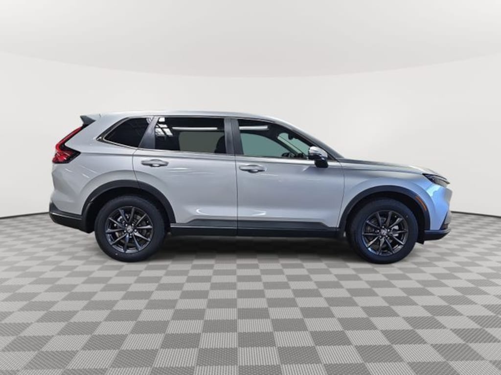 This 2026 Honda CR-V EX-L in Solar Silver Metallic features: AWD, AWD, 4-Wheel Disc Brakes, 8 Speakers, ABS brakes, Adaptive Cruise Control: Adaptive Cruise Control (ACC) with Low-Speed Follow, Air Conditioning, Alloy wheels, AM/FM radio, Apple CarPlay/Android Auto, Auto High-beam Headlights, Auto-dimming Rear-View mirror, Automatic temperature control, Blind Spot Information (BSI) System warning, Brake assist, Bumpers: body-color, Compass, Delay-off headlights, Driver door bin, Driver vanity mirror, Dual front impact airbags, Dual front side impact airbags, Electronic Stability Control, Exterior Parking Camera Rear, Four wheel independent suspension, Front anti-roll bar, Front Bucket Seats, Front Center Armrest, Front dual zone A/C, Front reading lights, Fully automatic headlights, Heated door mirrors, Heated Front Bucket Seats, Heated front seats, Illuminated entry, Knee airbag, Leather Seat Trim, Leather Shift Knob, Leather steering wheel, Low tire pressure warning, Memory seat, Occupant sensing airbag, Outside temperature display, Overhead airbag, Overhead console, Panic alarm, Passenger door bin, Passenger vanity mirror, Power door mirrors, Power driver seat, Power Liftgate, Power moonroof, Power passenger seat, Power steering, Power windows, Radio data system, Radio: 320-Watt AM/FM Audio System, Rear anti-roll bar, Rear reading lights, Rear seat center armrest, Rear side impact airbag, Rear window defroster, Rear window wiper, Remote keyless entry, Security system, Speed control, Speed-sensing steering, Speed-Sensitive Wipers, Split folding rear seat, Spoiler, Steering wheel mounted audio controls, Tachometer, Telescoping steering wheel, Tilt steering wheel, Traction control, Trip computer, Turn signal indicator mirrors, Variably intermittent wipers, Wheels: 18" Shark Grey.