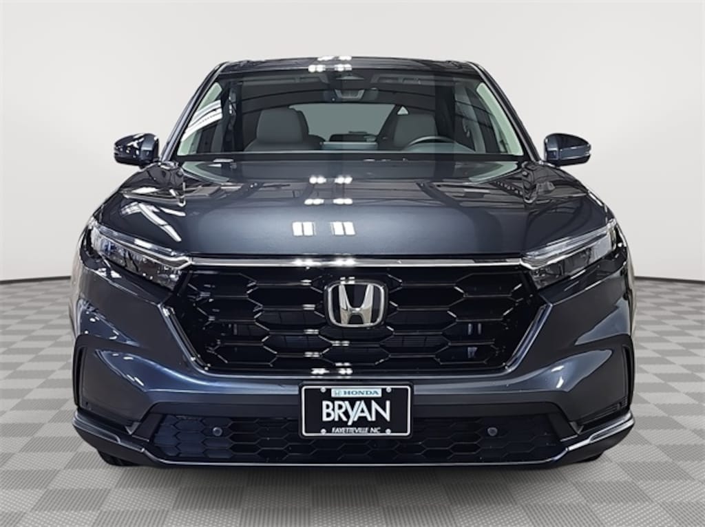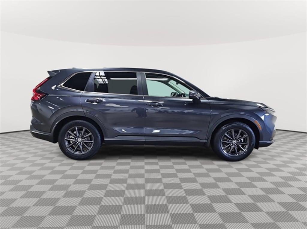 This 2026 Honda CR-V EX-L in Meteorite Gray Metallic features: 4-Wheel Disc Brakes, 8 Speakers, ABS brakes, Adaptive Cruise Control: Adaptive Cruise Control (ACC) with Low-Speed Follow, Air Conditioning, Alloy wheels, AM/FM radio, Apple CarPlay/Android Auto, Auto High-beam Headlights, Auto-dimming Rear-View mirror, Automatic temperature control, Blind Spot Information (BSI) System warning, Brake assist, Bumpers: body-color, Compass, Delay-off headlights, Driver door bin, Driver vanity mirror, Dual front impact airbags, Dual front side impact airbags, Electronic Stability Control, Exterior Parking Camera Rear, Four wheel independent suspension, Front anti-roll bar, Front Bucket Seats, Front Center Armrest, Front dual zone A/C, Front reading lights, Fully automatic headlights, Heated door mirrors, Heated Front Bucket Seats, Heated front seats, Illuminated entry, Knee airbag, Leather Seat Trim, Leather Shift Knob, Leather steering wheel, Low tire pressure warning, Memory seat, Occupant sensing airbag, Outside temperature display, Overhead airbag, Overhead console, Panic alarm, Passenger door bin, Passenger vanity mirror, Power door mirrors, Power driver seat, Power Liftgate, Power moonroof, Power passenger seat, Power steering, Power windows, Radio data system, Radio: 320-Watt AM/FM Audio System, Rear anti-roll bar, Rear reading lights, Rear seat center armrest, Rear side impact airbag, Rear window defroster, Rear window wiper, Remote keyless entry, Security system, Speed control, Speed-sensing steering, Speed-Sensitive Wipers, Split folding rear seat, Spoiler, Steering wheel mounted audio controls, Tachometer, Telescoping steering wheel, Tilt steering wheel, Traction control, Trip computer, Turn signal indicator mirrors, Variably intermittent wipers.