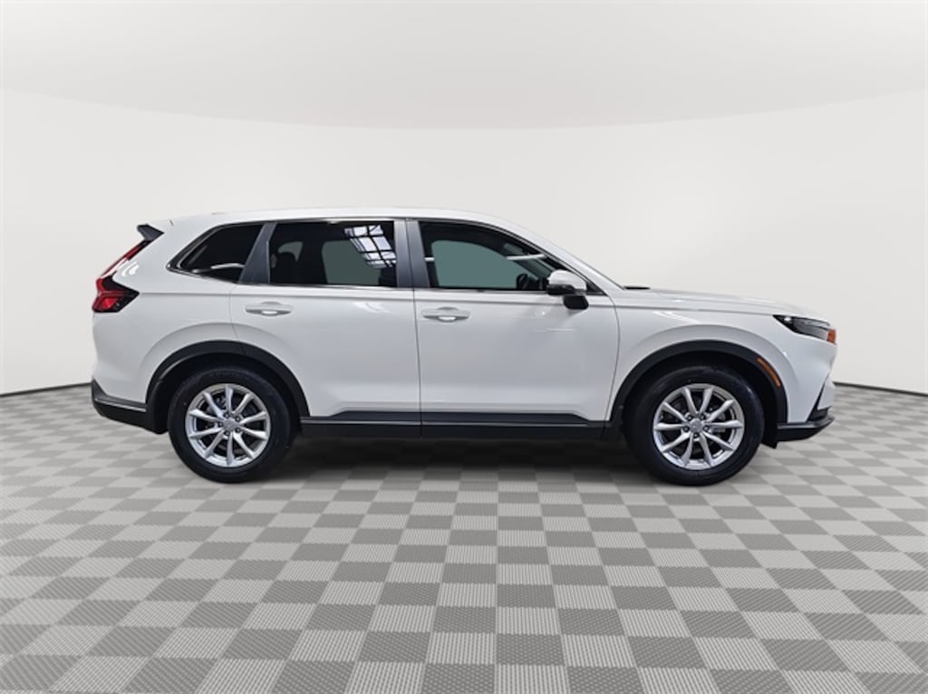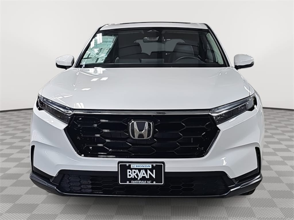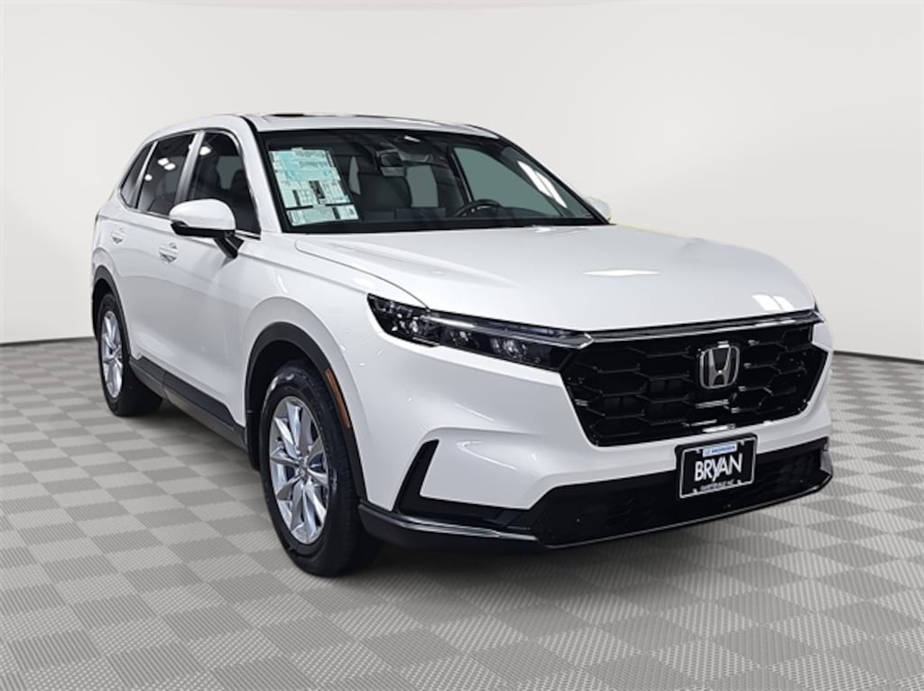 This 2026 Honda CR-V EX in Platinum White Pearl features: 4-Wheel Disc Brakes, 6 Speakers, ABS brakes, Adaptive Cruise Control: Adaptive Cruise Control (ACC) with Low-Speed Follow, Air Conditioning, Alloy wheels, AM/FM radio, Apple CarPlay/Android Auto, Auto High-beam Headlights, Automatic temperature control, Blind Spot Information (BSI) System warning, Brake assist, Bumpers: body-color, Cloth Seat Trim, Compass, Delay-off headlights, Driver door bin, Driver vanity mirror, Dual front impact airbags, Dual front side impact airbags, Electronic Stability Control, Exterior Parking Camera Rear, Four wheel independent suspension, Front anti-roll bar, Front Bucket Seats, Front Center Armrest, Front dual zone A/C, Front reading lights, Fully automatic headlights, Heated door mirrors, Heated Front Bucket Seats, Heated front seats, Illuminated entry, Knee airbag, Low tire pressure warning, Occupant sensing airbag, Outside temperature display, Overhead airbag, Overhead console, Panic alarm, Passenger door bin, Passenger vanity mirror, Power door mirrors, Power driver seat, Power moonroof, Power steering, Power windows, Radio data system, Radio: 240-Watt AM/FM Audio System, Rear anti-roll bar, Rear reading lights, Rear seat center armrest, Rear side impact airbag, Rear window defroster, Rear window wiper, Remote keyless entry, Security system, Speed control, Speed-sensing steering, Speed-Sensitive Wipers, Split folding rear seat, Spoiler, Steering wheel mounted audio controls, Tachometer, Telescoping steering wheel, Tilt steering wheel, Traction control, Trip computer, Turn signal indicator mirrors, Variably intermittent wipers, Wheels: 18" Sparkle Silver.