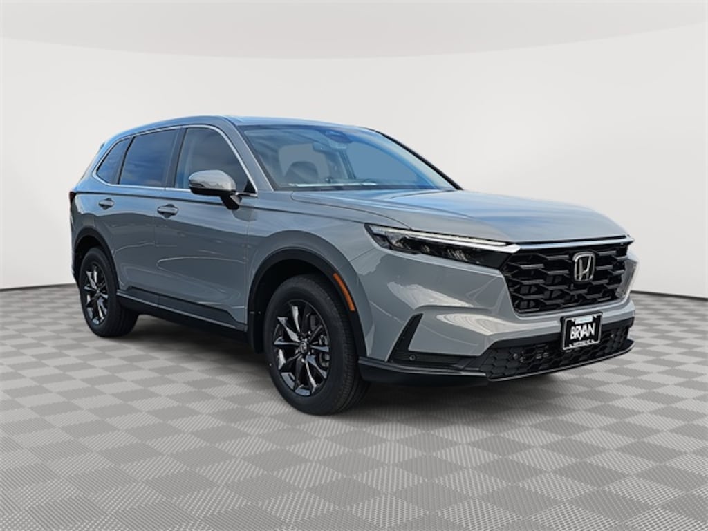 This 2026 Honda CR-V EX-L in Urban Gray Pearl features: AWD, AWD, 4-Wheel Disc Brakes, 8 Speakers, ABS brakes, Adaptive Cruise Control: Adaptive Cruise Control (ACC) with Low-Speed Follow, Air Conditioning, Alloy wheels, Apple CarPlay/Android Auto, Auto High-beam Headlights, Auto-dimming Rear-View mirror, Automatic temperature control, Blind Spot Information (BSI) System warning, Brake assist, Bumpers: body-color, Compass, Delay-off headlights, Driver door bin, Driver vanity mirror, Dual front impact airbags, Dual front side impact airbags, Electronic Stability Control, Exterior Parking Camera Rear, Four wheel independent suspension, Front anti-roll bar, Front Bucket Seats, Front Center Armrest, Front dual zone A/C, Front reading lights, Fully automatic headlights, Heated door mirrors, Heated Front Bucket Seats, Heated front seats, Illuminated entry, Knee airbag, Leather Seat Trim, Leather Shift Knob, Leather steering wheel, Low tire pressure warning, Memory seat, Occupant sensing airbag, Outside temperature display, Overhead airbag, Overhead console, Panic alarm, Passenger door bin, Passenger vanity mirror, Power door mirrors, Power driver seat, Power Liftgate, Power moonroof, Power passenger seat, Power steering, Power windows, Radio data system, Radio: 320-Watt AM/FM Audio System, Rear anti-roll bar, Rear reading lights, Rear seat center armrest, Rear side impact airbag, Rear window defroster, Rear window wiper, Remote keyless entry, Security system, Speed control, Speed-sensing steering, Speed-Sensitive Wipers, Split folding rear seat, Spoiler, Steering wheel mounted audio controls, Tachometer, Telescoping steering wheel, Tilt steering wheel, Traction control, Trip computer, Turn signal indicator mirrors, Variably intermittent wipers, Wheels: 18" Shark Gray.