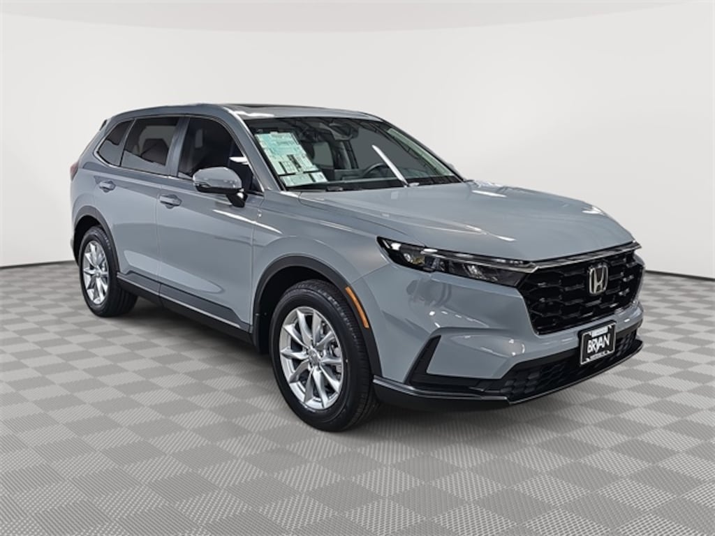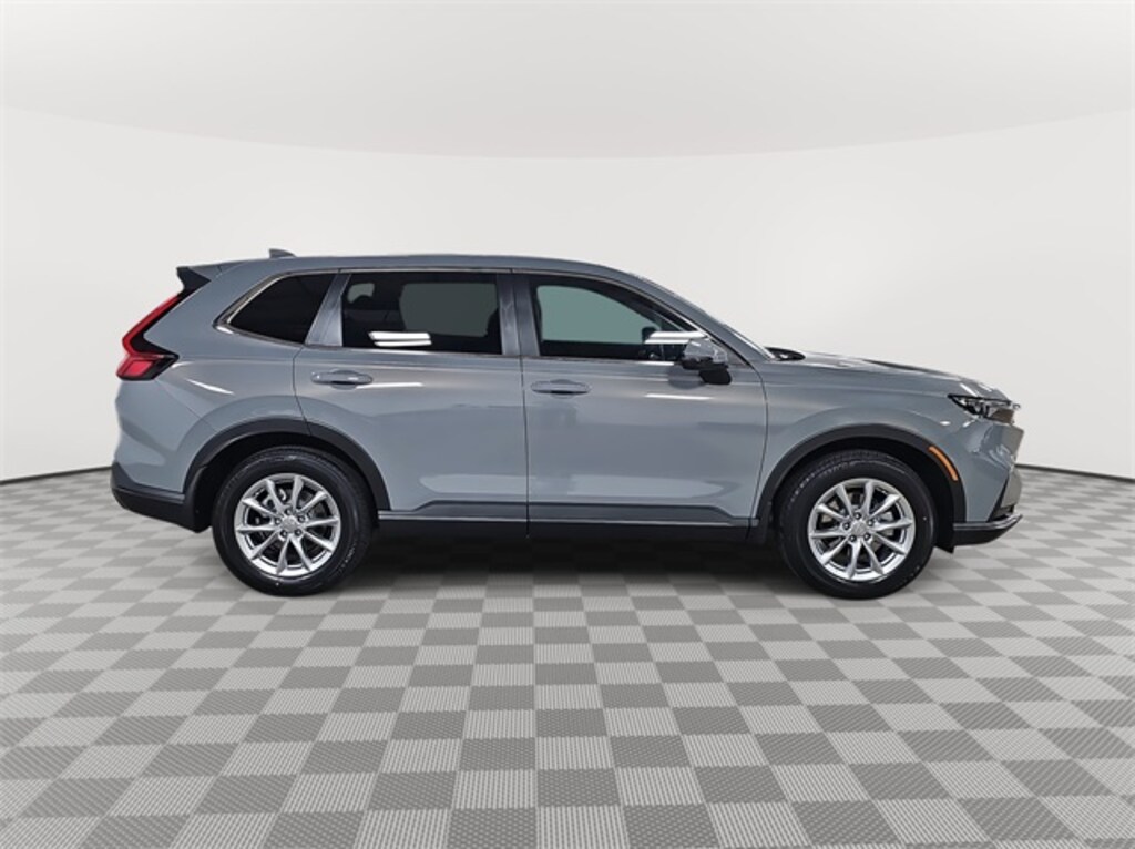 This 2026 Honda CR-V EX in Urban Gray Pearl features: AWD, AWD, 4-Wheel Disc Brakes, 6 Speakers, ABS brakes, Adaptive Cruise Control: Adaptive Cruise Control (ACC) with Low-Speed Follow, Air Conditioning, Alloy wheels, Apple CarPlay/Android Auto, Auto High-beam Headlights, Automatic temperature control, Blind Spot Information (BSI) System warning, Brake assist, Bumpers: body-color, Cloth Seat Trim, Compass, Delay-off headlights, Driver door bin, Driver vanity mirror, Dual front impact airbags, Dual front side impact airbags, Electronic Stability Control, Exterior Parking Camera Rear, Four wheel independent suspension, Front anti-roll bar, Front Bucket Seats, Front Center Armrest, Front dual zone A/C, Front reading lights, Fully automatic headlights, Heated door mirrors, Heated Front Bucket Seats, Heated front seats, Illuminated entry, Knee airbag, Low tire pressure warning, Occupant sensing airbag, Outside temperature display, Overhead airbag, Overhead console, Panic alarm, Passenger door bin, Passenger vanity mirror, Power door mirrors, Power driver seat, Power moonroof, Power steering, Power windows, Radio data system, Radio: 240-Watt AM/FM Audio System, Rear anti-roll bar, Rear reading lights, Rear seat center armrest, Rear side impact airbag, Rear window defroster, Rear window wiper, Remote keyless entry, Security system, Speed control, Speed-sensing steering, Speed-Sensitive Wipers, Split folding rear seat, Spoiler, Steering wheel mounted audio controls, Tachometer, Telescoping steering wheel, Tilt steering wheel, Traction control, Trip computer, Turn signal indicator mirrors, Variably intermittent wipers, Wheels: 18" Sparkle Silver.