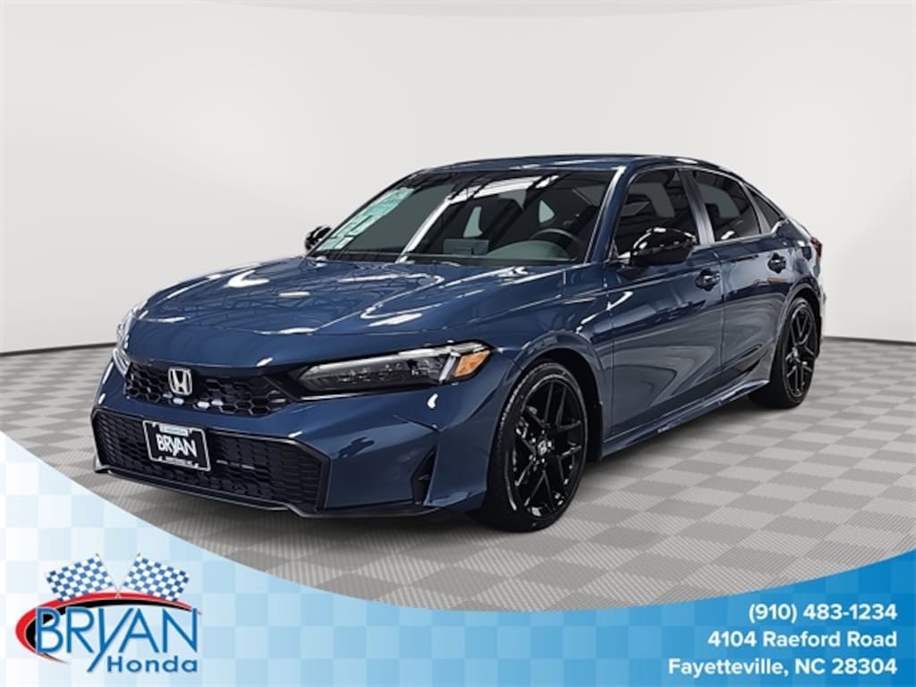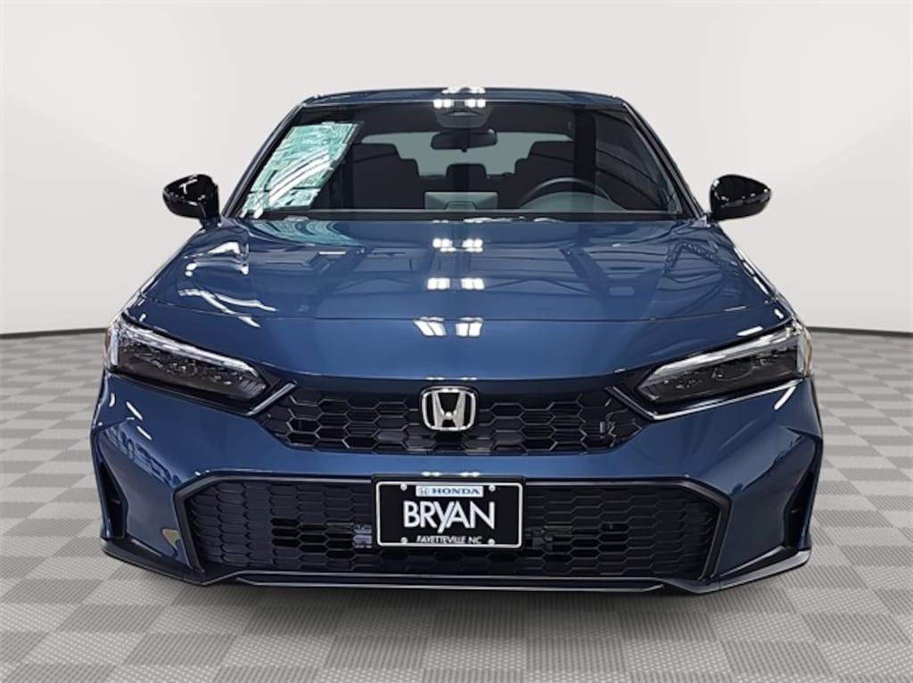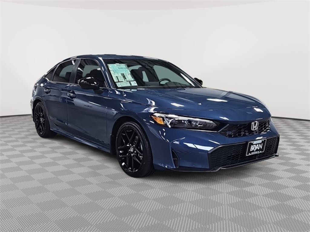 This 2026 Honda Civic Sport in Blue Lagoon Pearl features: Black w/Cloth/Leatherette Seating Surfaces, Black w/Cloth/Leatherette Seating Surfaces, 4-Wheel Disc Brakes, 8 Speakers, ABS brakes, Adaptive Cruise Control: Adaptive Cruise Control (ACC) with Low-Speed Follow, Air Conditioning, Alloy wheels, AM/FM radio, Apple CarPlay/Android Auto, Auto High-beam Headlights, Automatic temperature control, Blind Spot Information (BSI) System warning, Brake assist, Bumpers: body-color, Cloth/Leatherette Seating Surfaces, Delay-off headlights, Driver door bin, Driver vanity mirror, Dual front impact airbags, Dual front side impact airbags, Electronic Stability Control, Emergency communication system: HondaLink, Exterior Parking Camera Rear, Four wheel independent suspension, Front anti-roll bar, Front Bucket Seats, Front Center Armrest, Front reading lights, Fully automatic headlights, Heated door mirrors, Illuminated entry, Knee airbag, Leather Shift Knob, Leather steering wheel, Low tire pressure warning, Occupant sensing airbag, Outside temperature display, Overhead airbag, Panic alarm, Passenger door bin, Passenger vanity mirror, Power door mirrors, Power steering, Power windows, Radio data system, Radio: 180-Watt Audio System, Rear anti-roll bar, Rear seat center armrest, Rear side impact airbag, Rear window defroster, Remote keyless entry, Security system, Speed control, Speed-sensing steering, Split folding rear seat, Steering wheel mounted audio controls, Tachometer, Telescoping steering wheel, Tilt steering wheel, Traction control, Trip computer, Wheels: 18" Gloss Black Alloy.