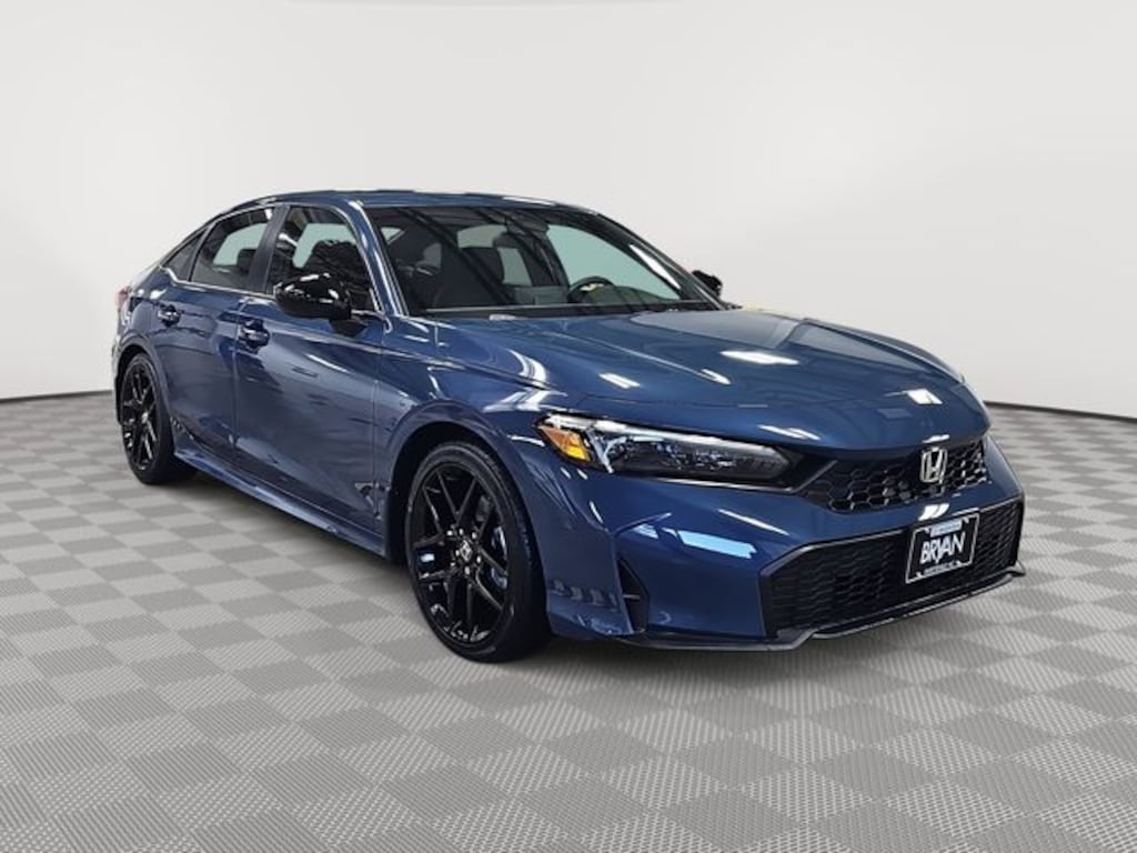This 2026 Honda Civic Sport in Blue Lagoon Pearl features: Blk Clth/Lthette Artificial Leather, Blk Clth/Lthette Artificial Leather, 4-Wheel Disc Brakes, 8 Speakers, ABS brakes, Adaptive Cruise Control: Adaptive Cruise Control (ACC) with Low-Speed Follow, Air Conditioning, Alloy wheels, AM/FM radio, Apple CarPlay/Android Auto, Auto High-beam Headlights, Automatic temperature control, Blind Spot Information (BSI) System warning, Brake assist, Bumpers: body-color, Cloth/Leatherette Seating Surfaces, Delay-off headlights, Driver door bin, Driver vanity mirror, Dual front impact airbags, Dual front side impact airbags, Electronic Stability Control, Emergency communication system: HondaLink, Exterior Parking Camera Rear, Four wheel independent suspension, Front anti-roll bar, Front Bucket Seats, Front Center Armrest, Front reading lights, Fully automatic headlights, Heated door mirrors, Illuminated entry, Knee airbag, Leather Shift Knob, Leather steering wheel, Low tire pressure warning, Occupant sensing airbag, Outside temperature display, Overhead airbag, Panic alarm, Passenger door bin, Passenger vanity mirror, Power door mirrors, Power steering, Power windows, Radio data system, Radio: 180-Watt Audio System, Rear anti-roll bar, Rear seat center armrest, Rear side impact airbag, Rear window defroster, Remote keyless entry, Security system, Speed control, Speed-sensing steering, Split folding rear seat, Steering wheel mounted audio controls, Tachometer, Telescoping steering wheel, Tilt steering wheel, Traction control, Trip computer, Wheels: 18" Gloss Black Alloy.