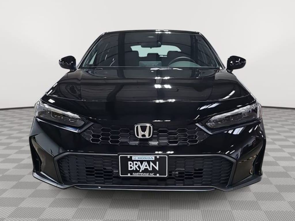 This 2026 Honda Civic Sport in Crystal Black Pearl features: Blk Clth/Lthette Artificial Leather, Blk Clth/Lthette Artificial Leather, 4-Wheel Disc Brakes, 8 Speakers, ABS brakes, Adaptive Cruise Control: Adaptive Cruise Control (ACC) with Low-Speed Follow, Air Conditioning, Alloy wheels, AM/FM radio, Apple CarPlay/Android Auto, Auto High-beam Headlights, Automatic temperature control, Blind Spot Information (BSI) System warning, Brake assist, Bumpers: body-color, Cloth/Leatherette Seating Surfaces, Delay-off headlights, Driver door bin, Driver vanity mirror, Dual front impact airbags, Dual front side impact airbags, Electronic Stability Control, Emergency communication system: HondaLink, Exterior Parking Camera Rear, Four wheel independent suspension, Front anti-roll bar, Front Bucket Seats, Front Center Armrest, Front reading lights, Fully automatic headlights, Heated door mirrors, HondaLink, Illuminated entry, Knee airbag, Lane departure: Lane Keeping Assist System (LKAS) active, Leather Shift Knob, Low tire pressure warning, Occupant sensing airbag, Outside temperature display, Overhead airbag, Panic alarm, Passenger door bin, Passenger vanity mirror, Power door mirrors, Power steering, Power windows, Radio data system, Radio: 180-Watt Audio System, Rear anti-roll bar, Rear side impact airbag, Rear window defroster, Rear window wiper, Remote keyless entry, Security system, Speed control, Speed-sensing steering, Split folding rear seat, Steering wheel mounted audio controls, Tachometer, Telescoping steering wheel, Tilt steering wheel, Traction control, Trip computer, Wheels: 18" Gloss Black Alloy.