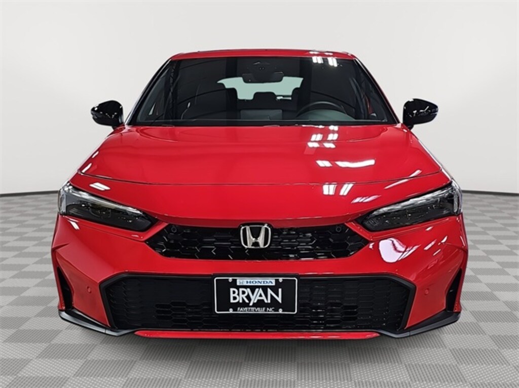 This 2026 Honda Civic Hybrid Sport Touring in Rallye Red features: 2.0L I4 DOHC 16V, 2.0L I4 DOHC 16V, 12 Speakers, 4-Wheel Disc Brakes, ABS brakes, Adaptive Cruise Control: Adaptive Cruise Control (ACC) with Low-Speed Follow, Air Conditioning, Alloy wheels, AM/FM radio, Apple CarPlay/Android Auto, Auto High-beam Headlights, Auto-dimming Rear-View mirror, Automatic temperature control, Blind Spot Information (BSI) System warning, Bose Premium Sound System, Brake assist, Bumpers: body-color, Compass, Delay-off headlights, Driver door bin, Driver vanity mirror, Dual front impact airbags, Dual front side impact airbags, Electronic Stability Control, Emergency communication system: HondaLink, Exterior Parking Camera Rear, Four wheel independent suspension, Front anti-roll bar, Front Bucket Seats, Front Center Armrest, Front dual zone A/C, Front reading lights, Fully automatic headlights, Heated door mirrors, Heated Front Bucket Seats, Heated front seats, Illuminated entry, Knee airbag, Lane departure: Lane Keeping Assist System (LKAS) active, Leather Shift Knob, Leather steering wheel, Leather-Trimmed Seat Trim, Low tire pressure warning, Navigation system: Google Maps, Occupant sensing airbag, Outside temperature display, Overhead airbag, Overhead console, Panic alarm, Passenger door bin, Passenger vanity mirror, Power door mirrors, Power driver seat, Power moonroof, Power passenger seat, Power steering, Power windows, Radio data system, Rain sensing wipers, Rear anti-roll bar, Rear seat center armrest, Rear side impact airbag, Rear window defroster, Rear window wiper, Remote keyless entry, Security system, Speed control, Speed-sensing steering, Split folding rear seat, Steering wheel mounted audio controls, Tachometer, Telescoping steering wheel, Tilt steering wheel, Traction control, Trip computer, Turn signal indicator mirrors, Variably intermittent wipers, Wheels: 18" Alloy w/Matte Shark Gray Inserts.