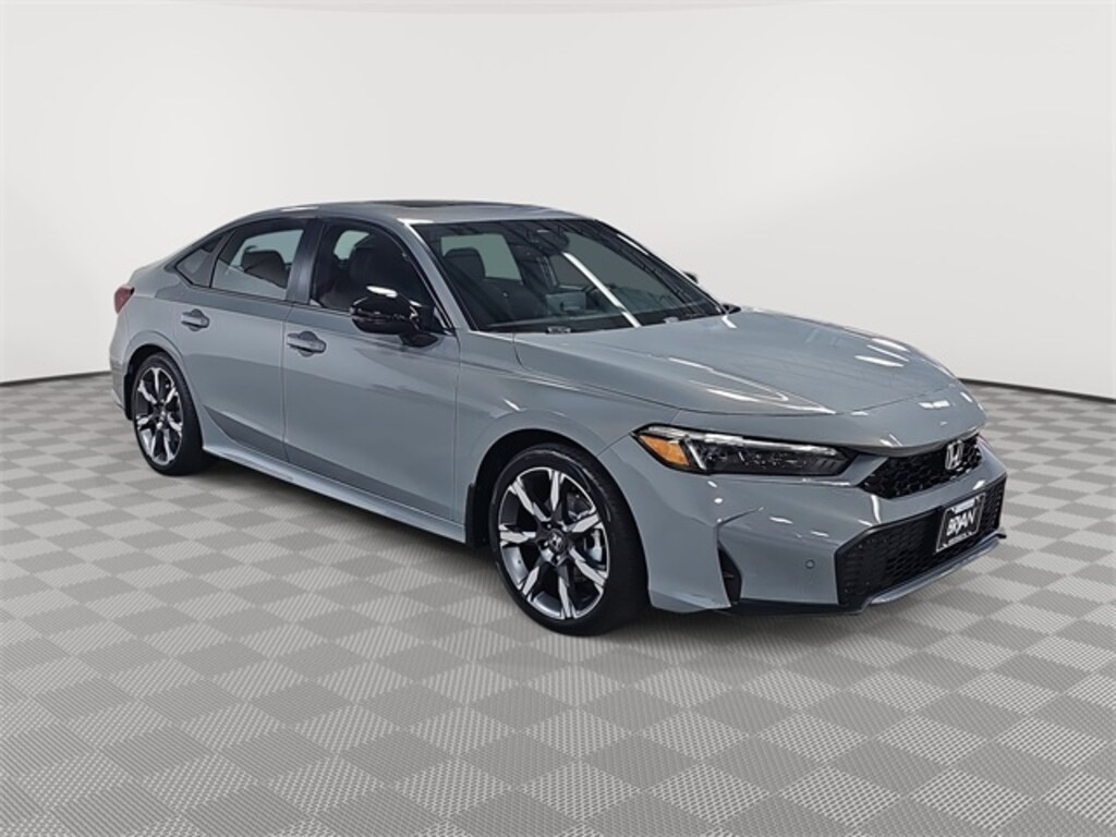 This 2026 Honda Civic Hybrid Sport Touring in Urban Gray Pearl features: 2.0L 16V DOHC, 2.0L 16V DOHC, 12 Speakers, 4-Wheel Disc Brakes, ABS brakes, Adaptive Cruise Control: Adaptive Cruise Control (ACC) with Low-Speed Follow, Air Conditioning, Alloy wheels, AM/FM radio, Apple CarPlay/Android Auto, Auto High-beam Headlights, Auto-dimming Rear-View mirror, Automatic temperature control, Blind Spot Information (BSI) System warning, Bose Premium Sound System, Brake assist, Bumpers: body-color, Compass, Delay-off headlights, Driver door bin, Driver vanity mirror, Dual front impact airbags, Dual front side impact airbags, Electronic Stability Control, Emergency communication system: HondaLink, Exterior Parking Camera Rear, Four wheel independent suspension, Front anti-roll bar, Front Bucket Seats, Front Center Armrest, Front dual zone A/C, Front reading lights, Fully automatic headlights, Heated door mirrors, Heated Front Bucket Seats, Heated front seats, Illuminated entry, Knee airbag, Leather Shift Knob, Leather steering wheel, Leather-Trimmed Seat Trim, Low tire pressure warning, Navigation system: Google Maps, Occupant sensing airbag, Outside temperature display, Overhead airbag, Overhead console, Panic alarm, Passenger door bin, Passenger vanity mirror, Power door mirrors, Power driver seat, Power moonroof, Power passenger seat, Power steering, Power windows, Radio data system, Rain sensing wipers, Rear anti-roll bar, Rear seat center armrest, Rear side impact airbag, Rear window defroster, Remote keyless entry, Security system, Speed control, Speed-sensing steering, Split folding rear seat, Steering wheel mounted audio controls, Tachometer, Telescoping steering wheel, Tilt steering wheel, Traction control, Trip computer, Turn signal indicator mirrors, Variably intermittent wipers.