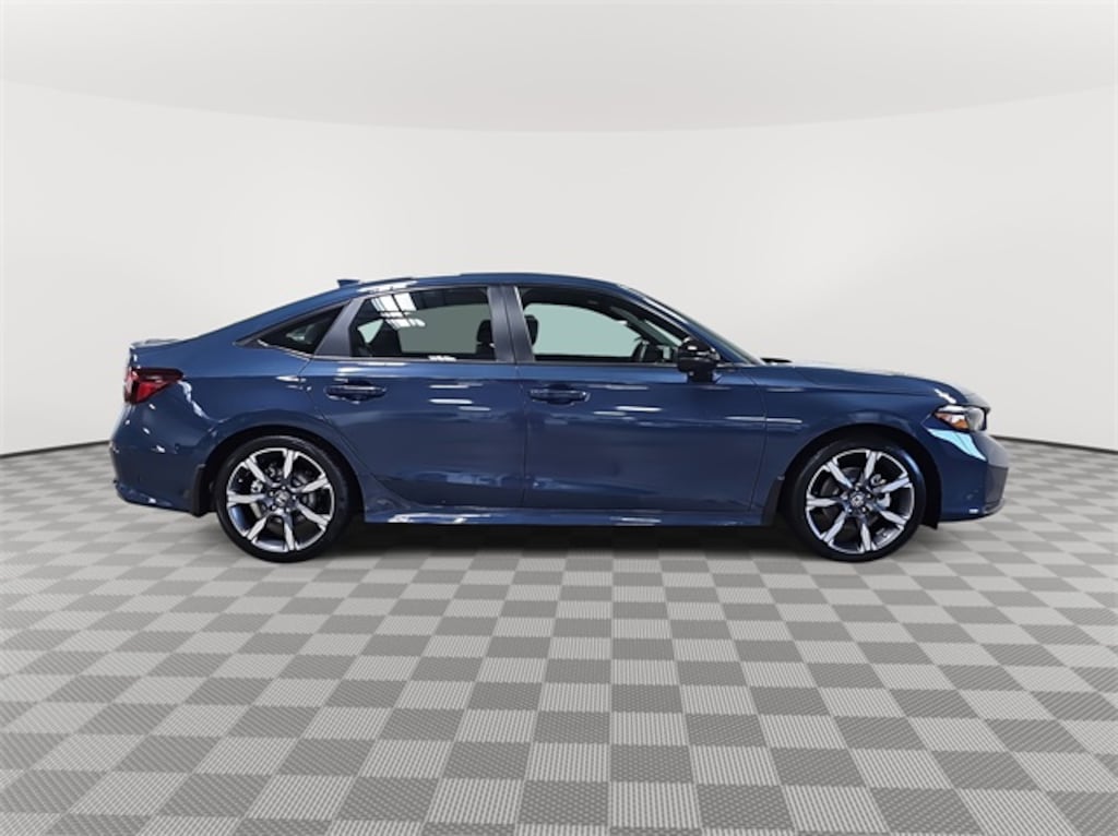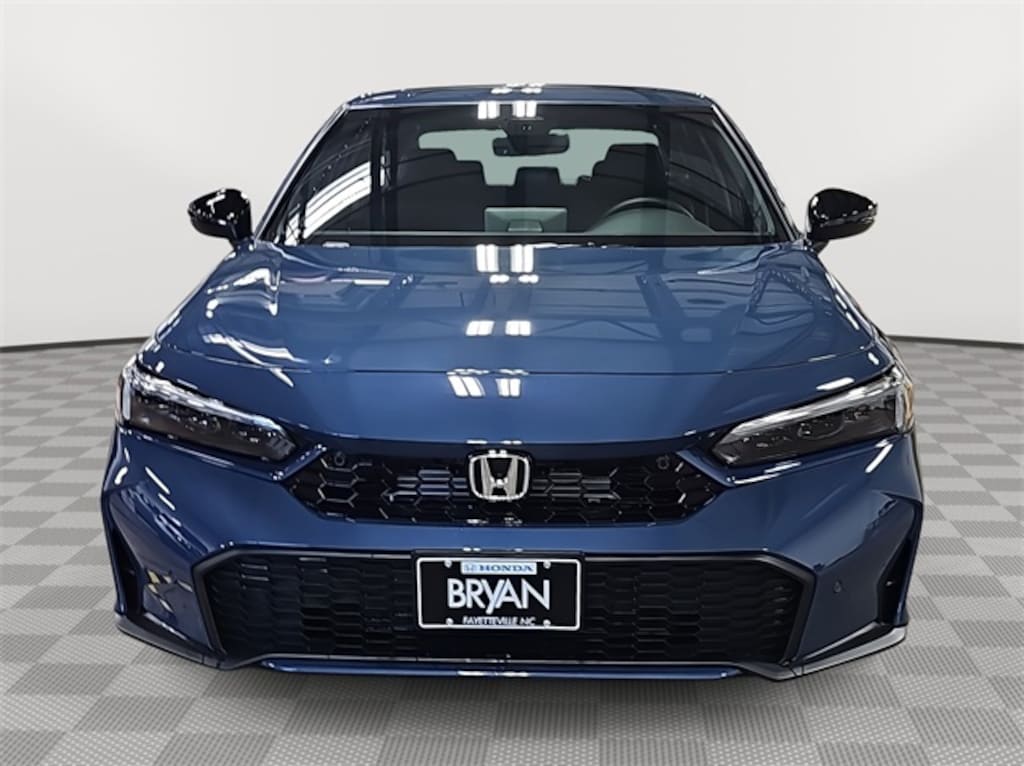 This 2026 Honda Civic Hybrid Sport Touring in Blue Lagoon Pearl features: 2.0L 16V DOHC, 2.0L 16V DOHC, 12 Speakers, 4-Wheel Disc Brakes, ABS brakes, Adaptive Cruise Control: Adaptive Cruise Control (ACC) with Low-Speed Follow, Air Conditioning, Alloy wheels, AM/FM radio, Apple CarPlay/Android Auto, Auto High-beam Headlights, Auto-dimming Rear-View mirror, Automatic temperature control, Blind Spot Information (BSI) System warning, Bose Premium Sound System, Brake assist, Bumpers: body-color, Compass, Delay-off headlights, Driver door bin, Driver vanity mirror, Dual front impact airbags, Dual front side impact airbags, Electronic Stability Control, Emergency communication system: HondaLink, Exterior Parking Camera Rear, Four wheel independent suspension, Front anti-roll bar, Front Bucket Seats, Front Center Armrest, Front dual zone A/C, Front reading lights, Fully automatic headlights, Heated door mirrors, Heated Front Bucket Seats, Heated front seats, Illuminated entry, Knee airbag, Leather Shift Knob, Leather steering wheel, Leather-Trimmed Seat Trim, Low tire pressure warning, Navigation system: Google Maps, Occupant sensing airbag, Outside temperature display, Overhead airbag, Overhead console, Panic alarm, Passenger door bin, Passenger vanity mirror, Power door mirrors, Power driver seat, Power moonroof, Power passenger seat, Power steering, Power windows, Radio data system, Rain sensing wipers, Rear anti-roll bar, Rear seat center armrest, Rear side impact airbag, Rear window defroster, Remote keyless entry, Security system, Speed control, Speed-sensing steering, Split folding rear seat, Steering wheel mounted audio controls, Tachometer, Telescoping steering wheel, Tilt steering wheel, Traction control, Trip computer, Turn signal indicator mirrors, Variably intermittent wipers, Wheels: 18" Alloy w/Matte Shark Gray Inserts.