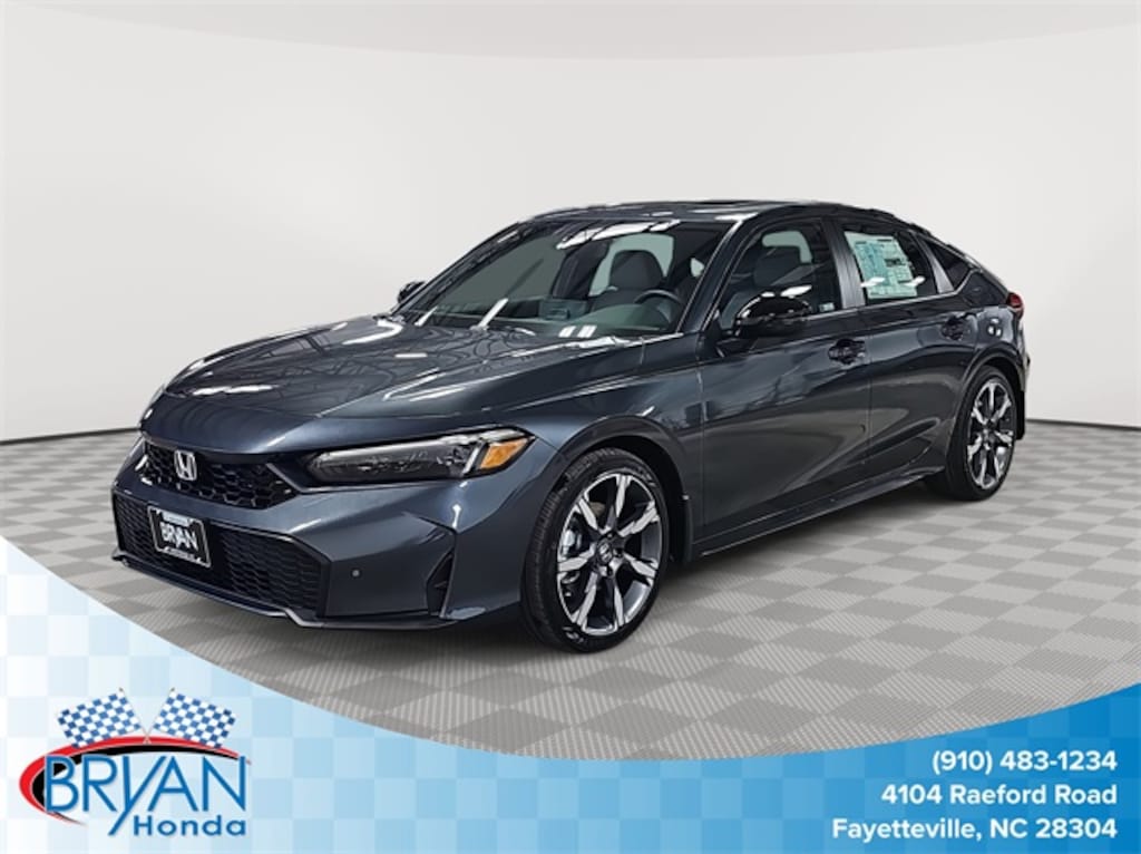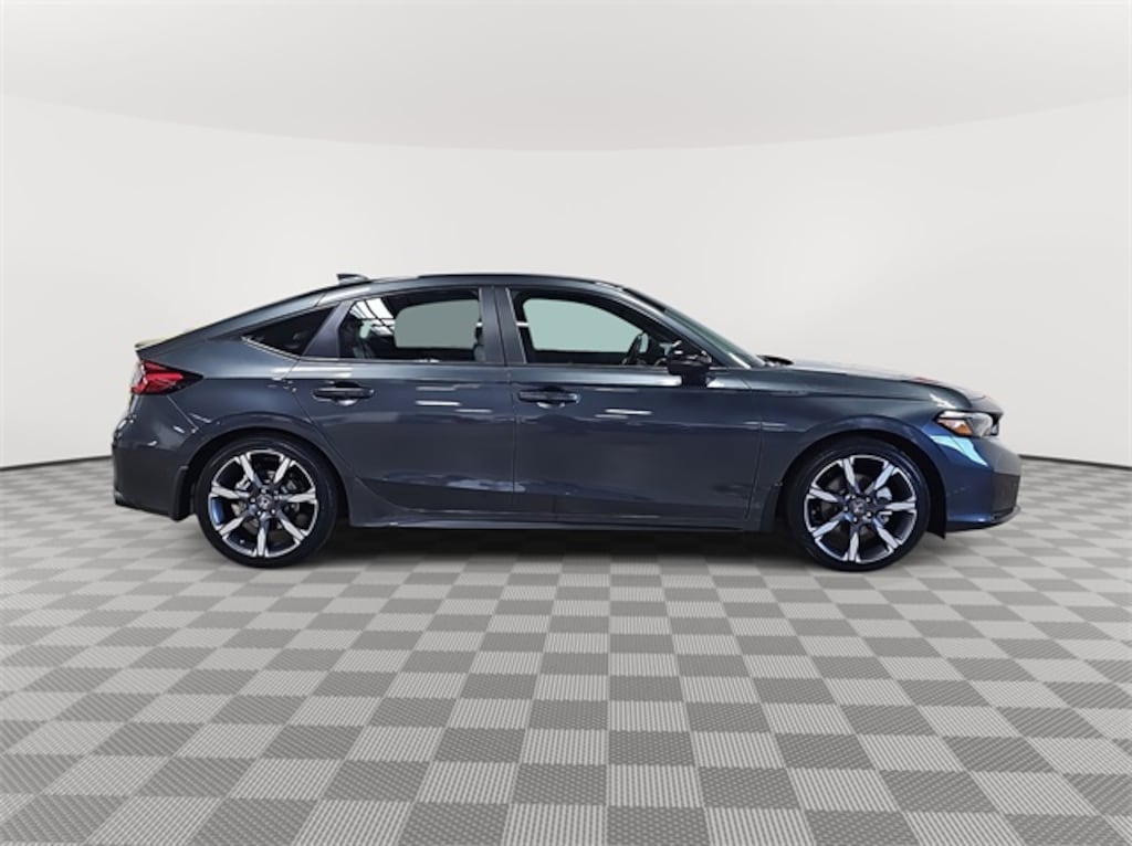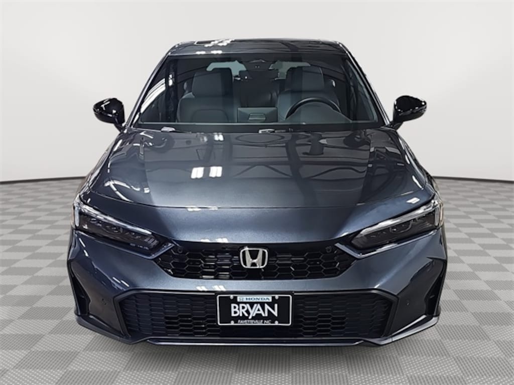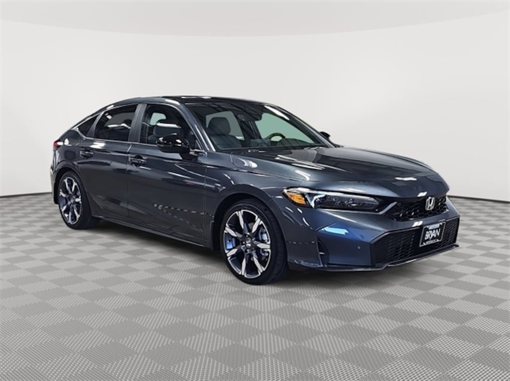 This 2026 Honda Civic Hybrid Sport Touring in Meteorite Gray Metallic features: 2.0L I4 DOHC 16V, 2.0L I4 DOHC 16V, 12 Speakers, 4-Wheel Disc Brakes, ABS brakes, Adaptive Cruise Control: Adaptive Cruise Control (ACC) with Low-Speed Follow, Air Conditioning, Alloy wheels, AM/FM radio, Apple CarPlay/Android Auto, Auto High-beam Headlights, Auto-dimming Rear-View mirror, Automatic temperature control, Blind Spot Information (BSI) System warning, Bose Premium Sound System, Brake assist, Bumpers: body-color, Compass, Delay-off headlights, Driver door bin, Driver vanity mirror, Dual front impact airbags, Dual front side impact airbags, Electronic Stability Control, Emergency communication system: HondaLink, Exterior Parking Camera Rear, Four wheel independent suspension, Front anti-roll bar, Front Bucket Seats, Front Center Armrest, Front dual zone A/C, Front reading lights, Fully automatic headlights, Heated door mirrors, Heated Front Bucket Seats, Heated front seats, Illuminated entry, Knee airbag, Lane departure: Lane Keeping Assist System (LKAS) active, Leather Shift Knob, Leather steering wheel, Leather-Trimmed Seat Trim, Low tire pressure warning, Navigation system: Google Maps, Occupant sensing airbag, Outside temperature display, Overhead airbag, Overhead console, Panic alarm, Passenger door bin, Passenger vanity mirror, Power door mirrors, Power driver seat, Power moonroof, Power passenger seat, Power steering, Power windows, Radio data system, Rain sensing wipers, Rear anti-roll bar, Rear seat center armrest, Rear side impact airbag, Rear window defroster, Rear window wiper, Remote keyless entry, Security system, Speed control, Speed-sensing steering, Split folding rear seat, Steering wheel mounted audio controls, Tachometer, Telescoping steering wheel, Tilt steering wheel, Traction control, Trip computer, Turn signal indicator mirrors, Variably intermittent wipers.