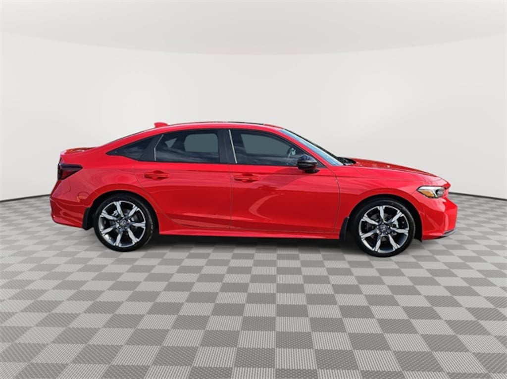 This 2026 Honda Civic Hybrid Sport Touring in Rallye Red features: 2.0L 16V DOHC, 2.0L 16V DOHC, 12 Speakers, 4-Wheel Disc Brakes, ABS brakes, Adaptive Cruise Control: Adaptive Cruise Control (ACC) with Low-Speed Follow, Air Conditioning, Alloy wheels, AM/FM radio, Apple CarPlay/Android Auto, Auto High-beam Headlights, Auto-dimming Rear-View mirror, Automatic temperature control, Blind Spot Information (BSI) System warning, Bose Premium Sound System, Brake assist, Bumpers: body-color, Compass, Delay-off headlights, Driver door bin, Driver vanity mirror, Dual front impact airbags, Dual front side impact airbags, Electronic Stability Control, Emergency communication system: HondaLink, Exterior Parking Camera Rear, Four wheel independent suspension, Front anti-roll bar, Front Bucket Seats, Front Center Armrest, Front dual zone A/C, Front reading lights, Fully automatic headlights, Heated door mirrors, Heated Front Bucket Seats, Heated front seats, Illuminated entry, Knee airbag, Leather Shift Knob, Leather steering wheel, Leather-Trimmed Seat Trim, Low tire pressure warning, Navigation system: Google Maps, Occupant sensing airbag, Outside temperature display, Overhead airbag, Overhead console, Panic alarm, Passenger door bin, Passenger vanity mirror, Power door mirrors, Power driver seat, Power moonroof, Power passenger seat, Power steering, Power windows, Radio data system, Rain sensing wipers, Rear anti-roll bar, Rear seat center armrest, Rear side impact airbag, Rear window defroster, Remote keyless entry, Security system, Speed control, Speed-sensing steering, Split folding rear seat, Steering wheel mounted audio controls, Tachometer, Telescoping steering wheel, Tilt steering wheel, Traction control, Trip computer, Turn signal indicator mirrors, Variably intermittent wipers, Wheels: 18" Alloy w/Matte Shark Gray Inserts.