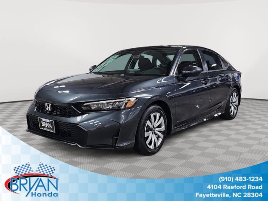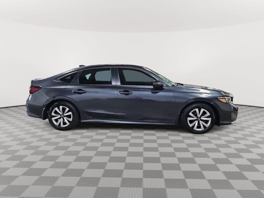 This 2026 Honda Civic LX in Meteorite Gray Metallic features: Blk Clth Cloth, Blk Clth Cloth, 4 Speakers, 4-Wheel Disc Brakes, ABS brakes, Adaptive Cruise Control: Adaptive Cruise Control (ACC) with Low-Speed Follow, Air Conditioning, AM/FM radio, Apple CarPlay/Android Auto, Auto High-beam Headlights, Automatic temperature control, Brake assist, Bumpers: body-color, Cloth Seating Surfaces, Delay-off headlights, Driver door bin, Driver vanity mirror, Dual front impact airbags, Dual front side impact airbags, Electronic Stability Control, Emergency communication system: HondaLink, Exterior Parking Camera Rear, Four wheel independent suspension, Front anti-roll bar, Front Bucket Seats, Front Center Armrest, Front reading lights, Fully automatic headlights, Illuminated entry, Knee airbag, Low tire pressure warning, Occupant sensing airbag, Outside temperature display, Overhead airbag, Panic alarm, Passenger door bin, Passenger vanity mirror, Power door mirrors, Power steering, Power windows, Radio data system, Radio: 160-Watt Audio System, Rear anti-roll bar, Rear side impact airbag, Rear window defroster, Remote keyless entry, Security system, Speed control, Speed-sensing steering, Steering wheel mounted audio controls, Tachometer, Telescoping steering wheel, Tilt steering wheel, Traction control, Trip computer, Wheels: 16" with Full Covers.