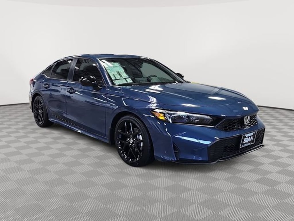 This 2026 Honda Civic Sport in Blue Lagoon Pearl features: Black w/Cloth/Leatherette Seating Surfaces, Black w/Cloth/Leatherette Seating Surfaces, 4-Wheel Disc Brakes, 8 Speakers, ABS brakes, Adaptive Cruise Control: Adaptive Cruise Control (ACC) with Low-Speed Follow, Air Conditioning, Alloy wheels, AM/FM radio, Apple CarPlay/Android Auto, Auto High-beam Headlights, Automatic temperature control, Blind Spot Information (BSI) System warning, Brake assist, Bumpers: body-color, Cloth/Leatherette Seating Surfaces, Delay-off headlights, Driver door bin, Driver vanity mirror, Dual front impact airbags, Dual front side impact airbags, Electronic Stability Control, Emergency communication system: HondaLink, Exterior Parking Camera Rear, Four wheel independent suspension, Front anti-roll bar, Front Bucket Seats, Front Center Armrest, Front reading lights, Fully automatic headlights, Heated door mirrors, Illuminated entry, Knee airbag, Leather Shift Knob, Leather steering wheel, Low tire pressure warning, Occupant sensing airbag, Outside temperature display, Overhead airbag, Panic alarm, Passenger door bin, Passenger vanity mirror, Power door mirrors, Power steering, Power windows, Radio data system, Radio: 180-Watt Audio System, Rear anti-roll bar, Rear seat center armrest, Rear side impact airbag, Rear window defroster, Remote keyless entry, Security system, Speed control, Speed-sensing steering, Split folding rear seat, Steering wheel mounted audio controls, Tachometer, Telescoping steering wheel, Tilt steering wheel, Traction control, Trip computer, Wheels: 18" Gloss Black Alloy.