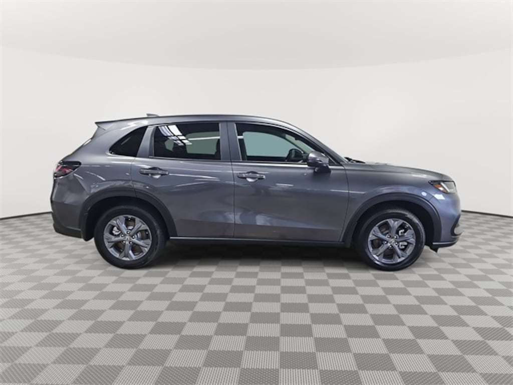 This 2026 Honda HR-V LX in Modern Steel Metallic features: 4 Speakers, 4-Wheel Disc Brakes, ABS brakes, Adaptive Cruise Control: Adaptive Cruise Control (ACC) with Low-Speed Follow, Air Conditioning, Alloy wheels, AM/FM radio, Apple CarPlay/Android Auto, Auto High-beam Headlights, Automatic temperature control, Brake assist, Bumpers: body-color, Cloth Seat Trim, Compass, Delay-off headlights, Driver door bin, Driver vanity mirror, Dual front impact airbags, Dual front side impact airbags, Electronic Stability Control, Exterior Parking Camera Rear, Four wheel independent suspension, Front anti-roll bar, Front Bucket Seats, Front Center Armrest, Front reading lights, Fully automatic headlights, Illuminated entry, Knee airbag, Low tire pressure warning, Occupant sensing airbag, Outside temperature display, Overhead airbag, Panic alarm, Passenger door bin, Passenger vanity mirror, Power door mirrors, Power steering, Power windows, Radio data system, Radio: 180-Watt Audio System w/4 Speakers, Rear anti-roll bar, Rear reading lights, Rear side impact airbag, Rear window defroster, Rear window wiper, Remote keyless entry, Security system, Speed control, Speed-sensing steering, Split folding rear seat, Spoiler, Steering wheel mounted audio controls, Tachometer, Telescoping steering wheel, Tilt steering wheel, Traction control, Trip computer, Variably intermittent wipers, Wheels: 17" Pewter Gray Alloy.