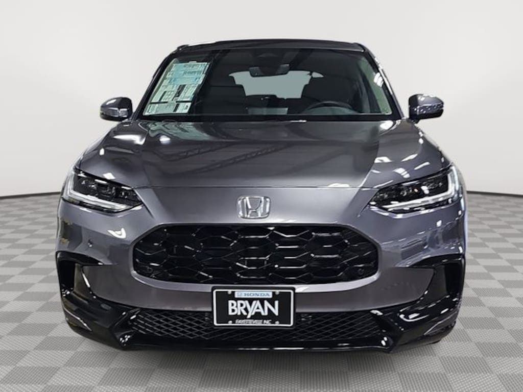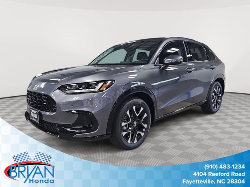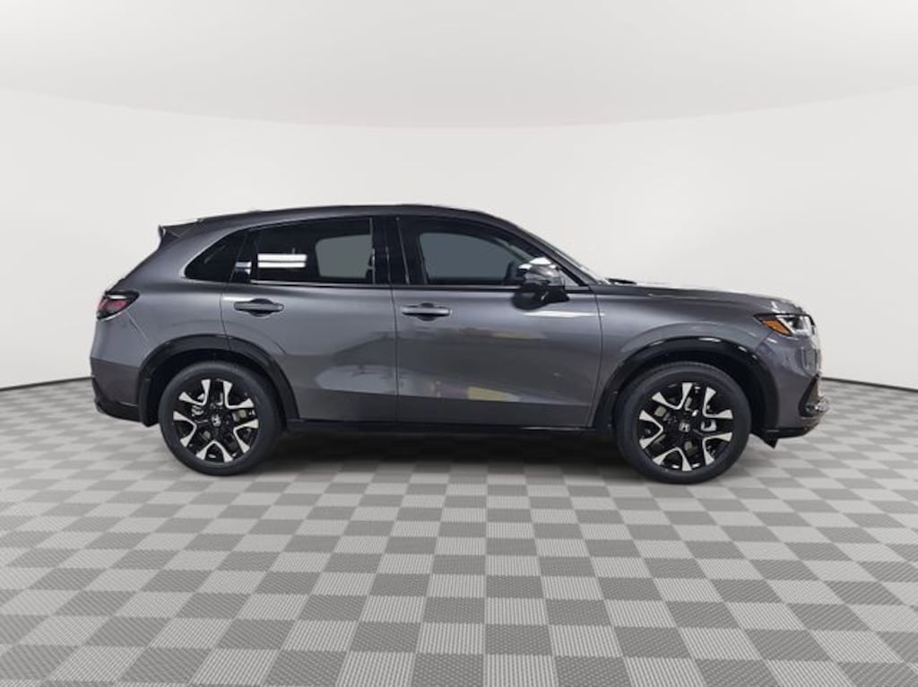 This 2026 Honda HR-V EX-L in Modern Steel Metallic features: 18" Machine-Finished Alloy Wheels, 4-Wheel Disc Brakes, 8 Speakers, ABS brakes, Adaptive Cruise Control: Adaptive Cruise Control (ACC) with Low-Speed Follow, Air Conditioning, Alloy wheels, AM/FM radio, Apple CarPlay/Android Auto, Auto High-beam Headlights, Auto-dimming Rear-View mirror, Automatic temperature control, Blind Spot Information (BSI) System warning, Brake assist, Bumpers: body-color, Compass, Delay-off headlights, Driver door bin, Driver vanity mirror, Dual front impact airbags, Dual front side impact airbags, Electronic Stability Control, Exterior Parking Camera Rear, Four wheel independent suspension, Front anti-roll bar, Front Bucket Seats, Front Center Armrest, Front dual zone A/C, Front reading lights, Fully automatic headlights, Heated door mirrors, Heated Front Bucket Seats, Heated front seats, Illuminated entry, Knee airbag, Leather Shift Knob, Leather steering wheel, Leather-Trimmed Seats, Low tire pressure warning, Occupant sensing airbag, Outside temperature display, Overhead airbag, Panic alarm, Passenger door bin, Passenger vanity mirror, Power door mirrors, Power driver seat, Power moonroof, Power steering, Power windows, Radio data system, Radio: 180-Watt Audio System with 8 Speakers, Rear anti-roll bar, Rear reading lights, Rear side impact airbag, Rear window defroster, Rear window wiper, Remote keyless entry, Security system, Speed control, Speed-sensing steering, Split folding rear seat, Spoiler, Steering wheel mounted audio controls, Tachometer, Telescoping steering wheel, Tilt steering wheel, Traction control, Trip computer, Turn signal indicator mirrors, Variably intermittent wipers.