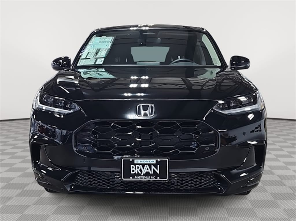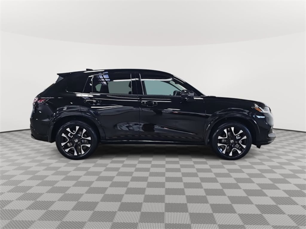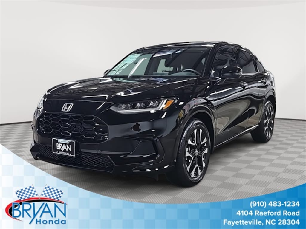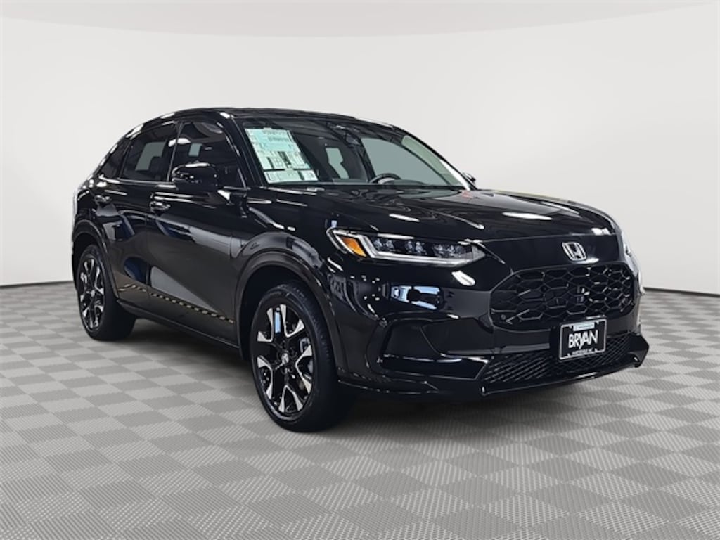 This 2026 Honda HR-V EX-L in Crystal Black Pearl features: 18" Machine-Finished Alloy Wheels, 4-Wheel Disc Brakes, 8 Speakers, ABS brakes, Adaptive Cruise Control: Adaptive Cruise Control (ACC) with Low-Speed Follow, Air Conditioning, Alloy wheels, AM/FM radio, Apple CarPlay/Android Auto, Auto High-beam Headlights, Auto-dimming Rear-View mirror, Automatic temperature control, Blind Spot Information (BSI) System warning, Brake assist, Bumpers: body-color, Compass, Delay-off headlights, Driver door bin, Driver vanity mirror, Dual front impact airbags, Dual front side impact airbags, Electronic Stability Control, Exterior Parking Camera Rear, Four wheel independent suspension, Front anti-roll bar, Front Bucket Seats, Front Center Armrest, Front dual zone A/C, Front reading lights, Fully automatic headlights, Heated door mirrors, Heated Front Bucket Seats, Heated front seats, Illuminated entry, Knee airbag, Leather Shift Knob, Leather steering wheel, Leather-Trimmed Seats, Low tire pressure warning, Occupant sensing airbag, Outside temperature display, Overhead airbag, Panic alarm, Passenger door bin, Passenger vanity mirror, Power door mirrors, Power driver seat, Power moonroof, Power steering, Power windows, Radio data system, Rear anti-roll bar, Rear reading lights, Rear side impact airbag, Rear window defroster, Rear window wiper, Remote keyless entry, Security system, Speed control, Speed-sensing steering, Split folding rear seat, Spoiler, Steering wheel mounted audio controls, Tachometer, Telescoping steering wheel, Tilt steering wheel, Traction control, Trip computer, Turn signal indicator mirrors, Variably intermittent wipers.