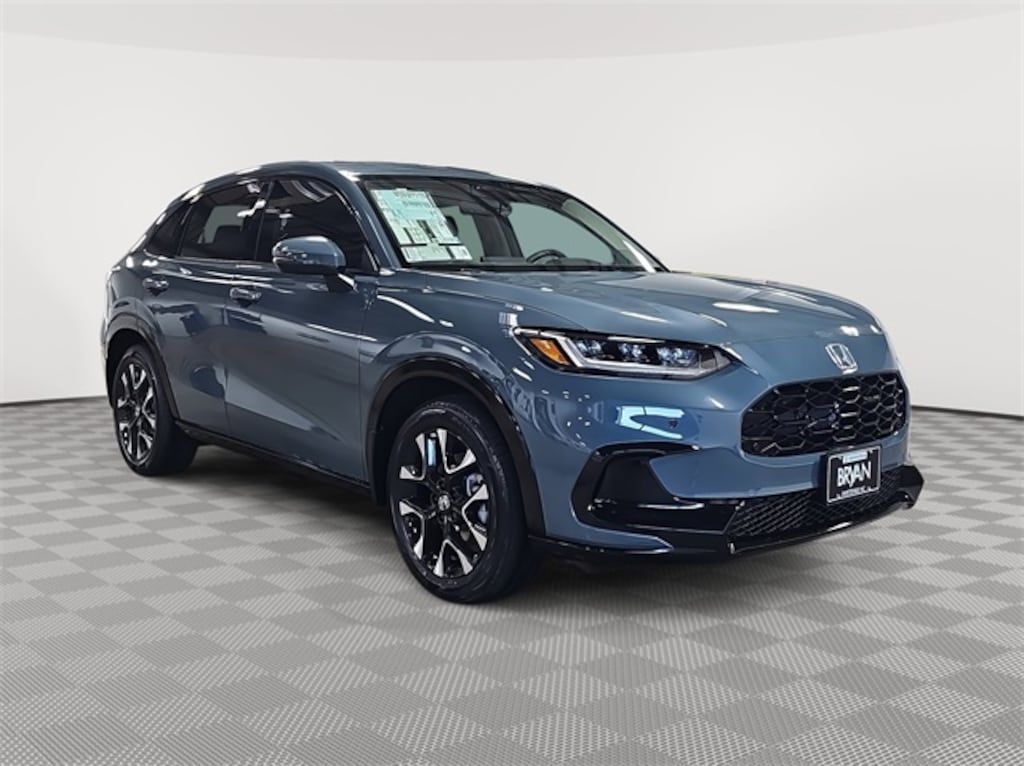 This 2026 Honda HR-V EX-L in Nordic Forest Pearl features: 18" Machine-Finished Alloy Wheels, 4-Wheel Disc Brakes, 8 Speakers, ABS brakes, Adaptive Cruise Control: Adaptive Cruise Control (ACC) with Low-Speed Follow, Air Conditioning, Alloy wheels, AM/FM radio, Apple CarPlay/Android Auto, Auto High-beam Headlights, Auto-dimming Rear-View mirror, Automatic temperature control, Blind Spot Information (BSI) System warning, Brake assist, Bumpers: body-color, Compass, Delay-off headlights, Driver door bin, Driver vanity mirror, Dual front impact airbags, Dual front side impact airbags, Electronic Stability Control, Exterior Parking Camera Rear, Four wheel independent suspension, Front anti-roll bar, Front Bucket Seats, Front Center Armrest, Front dual zone A/C, Front reading lights, Fully automatic headlights, Heated door mirrors, Heated Front Bucket Seats, Heated front seats, Illuminated entry, Knee airbag, Leather Shift Knob, Leather steering wheel, Leather-Trimmed Seats, Low tire pressure warning, Occupant sensing airbag, Outside temperature display, Overhead airbag, Panic alarm, Passenger door bin, Passenger vanity mirror, Power door mirrors, Power driver seat, Power moonroof, Power steering, Power windows, Radio data system, Rear anti-roll bar, Rear reading lights, Rear side impact airbag, Rear window defroster, Rear window wiper, Remote keyless entry, Security system, Speed control, Speed-sensing steering, Split folding rear seat, Spoiler, Steering wheel mounted audio controls, Tachometer, Telescoping steering wheel, Tilt steering wheel, Traction control, Trip computer, Turn signal indicator mirrors, Variably intermittent wipers.