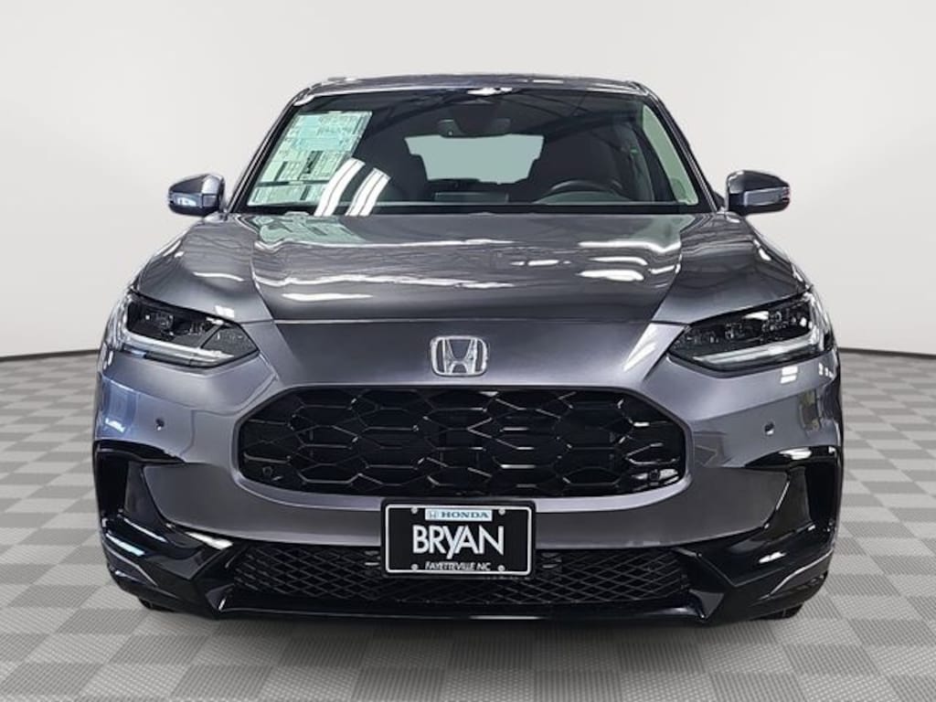 This 2026 Honda HR-V EX-L in Modern Steel Metallic features: 18" Machine-Finished Alloy Wheels, 4-Wheel Disc Brakes, 8 Speakers, ABS brakes, Adaptive Cruise Control: Adaptive Cruise Control (ACC) with Low-Speed Follow, Air Conditioning, Alloy wheels, AM/FM radio, Apple CarPlay/Android Auto, Auto High-beam Headlights, Auto-dimming Rear-View mirror, Automatic temperature control, Blind Spot Information (BSI) System warning, Brake assist, Bumpers: body-color, Compass, Delay-off headlights, Driver door bin, Driver vanity mirror, Dual front impact airbags, Dual front side impact airbags, Electronic Stability Control, Exterior Parking Camera Rear, Four wheel independent suspension, Front anti-roll bar, Front Bucket Seats, Front Center Armrest, Front dual zone A/C, Front reading lights, Fully automatic headlights, Heated door mirrors, Heated Front Bucket Seats, Heated front seats, Illuminated entry, Knee airbag, Leather Shift Knob, Leather steering wheel, Leather-Trimmed Seats, Low tire pressure warning, Occupant sensing airbag, Outside temperature display, Overhead airbag, Panic alarm, Passenger door bin, Passenger vanity mirror, Power door mirrors, Power driver seat, Power moonroof, Power steering, Power windows, Radio data system, Radio: 180-Watt Audio System with 8 Speakers, Rear anti-roll bar, Rear reading lights, Rear side impact airbag, Rear window defroster, Rear window wiper, Remote keyless entry, Security system, Speed control, Speed-sensing steering, Split folding rear seat, Spoiler, Steering wheel mounted audio controls, Tachometer, Telescoping steering wheel, Tilt steering wheel, Traction control, Trip computer, Turn signal indicator mirrors, Variably intermittent wipers.