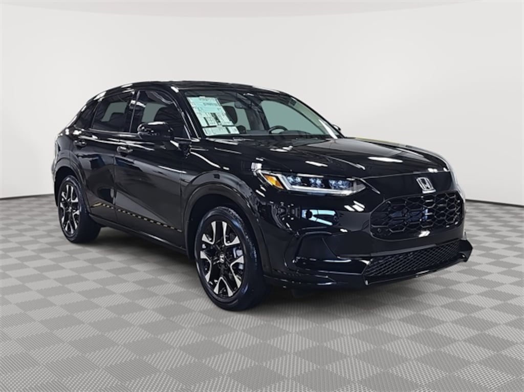 This 2026 Honda HR-V EX-L in Crystal Black Pearl features: 18" Machine-Finished Alloy Wheels, 4-Wheel Disc Brakes, 8 Speakers, ABS brakes, Adaptive Cruise Control: Adaptive Cruise Control (ACC) with Low-Speed Follow, Air Conditioning, Alloy wheels, AM/FM radio, Apple CarPlay/Android Auto, Auto High-beam Headlights, Auto-dimming Rear-View mirror, Automatic temperature control, Blind Spot Information (BSI) System warning, Brake assist, Bumpers: body-color, Compass, Delay-off headlights, Driver door bin, Driver vanity mirror, Dual front impact airbags, Dual front side impact airbags, Electronic Stability Control, Exterior Parking Camera Rear, Four wheel independent suspension, Front anti-roll bar, Front Bucket Seats, Front Center Armrest, Front dual zone A/C, Front reading lights, Fully automatic headlights, Heated door mirrors, Heated Front Bucket Seats, Heated front seats, Illuminated entry, Knee airbag, Leather Shift Knob, Leather steering wheel, Leather-Trimmed Seats, Low tire pressure warning, Occupant sensing airbag, Outside temperature display, Overhead airbag, Panic alarm, Passenger door bin, Passenger vanity mirror, Power door mirrors, Power driver seat, Power moonroof, Power steering, Power windows, Radio data system, Radio: 180-Watt Audio System with 8 Speakers, Rear anti-roll bar, Rear reading lights, Rear side impact airbag, Rear window defroster, Rear window wiper, Remote keyless entry, Security system, Speed control, Speed-sensing steering, Split folding rear seat, Spoiler, Steering wheel mounted audio controls, Tachometer, Telescoping steering wheel, Tilt steering wheel, Traction control, Trip computer, Turn signal indicator mirrors, Variably intermittent wipers.