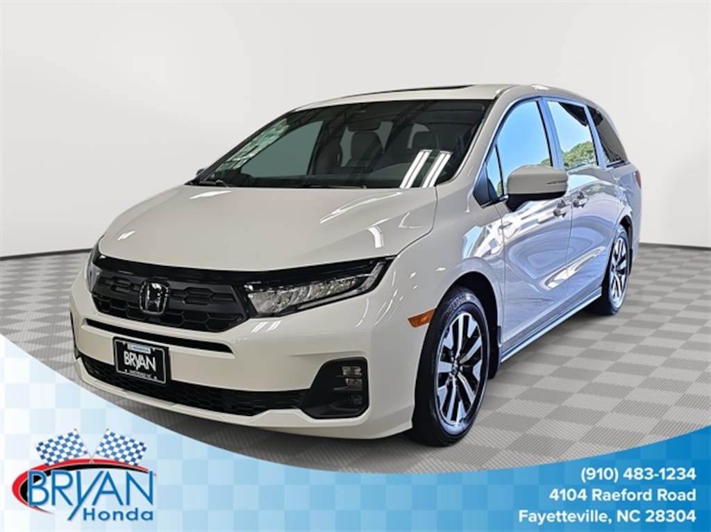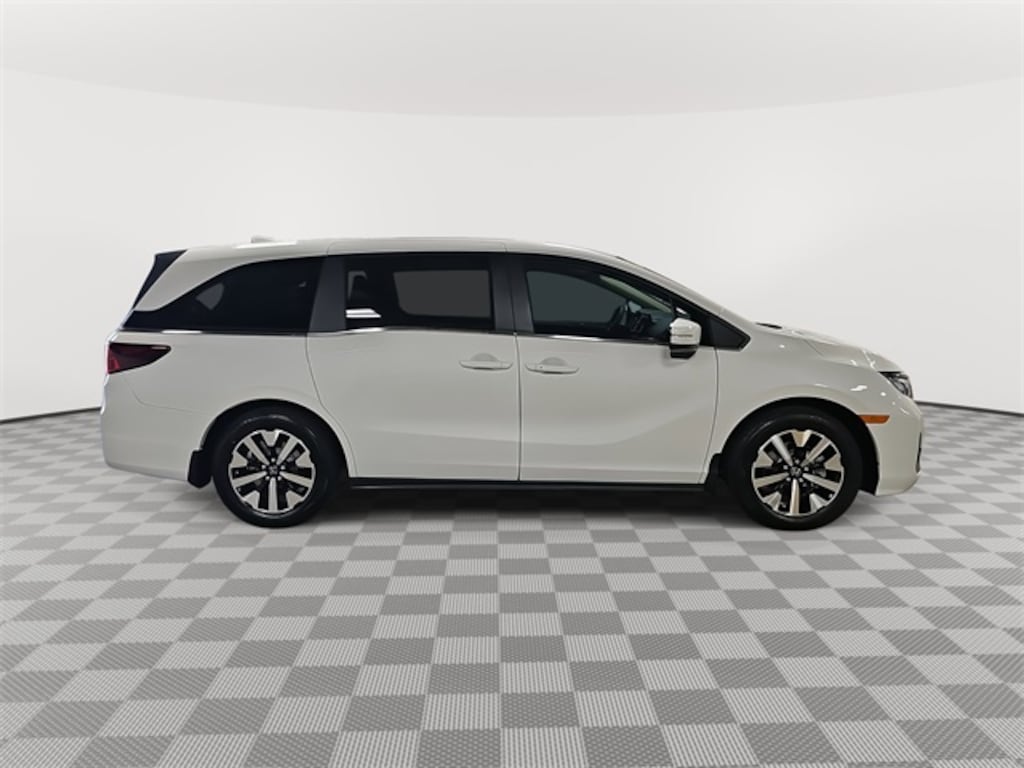 This 2026 Honda Odyssey EX-L in features: 18" Machine-Finished Alloy Wheels, 3rd row seats: split-bench, 4-Wheel Disc Brakes, 7 Speakers, ABS brakes, Adaptive Cruise Control: Adaptive Cruise Control (ACC) with Low-Speed Follow, Air Conditioning, Alloy wheels, AM/FM radio: SiriusXM, Anti-whiplash front head restraints, Apple CarPlay/Android Auto, Auto High-beam Headlights, Auto-dimming Rear-View mirror, Automatic temperature control, Blind Spot Information (BSI) System warning, Brake assist, Bumpers: body-color, Delay-off headlights, Driver door bin, Driver vanity mirror, Driver's Seat Mounted Armrest, Dual front impact airbags, Dual front side impact airbags, Electronic Stability Control, Exterior Parking Camera Rear, Four wheel independent suspension, Front anti-roll bar, Front Bucket Seats, Front dual zone A/C, Front fog lights, Front reading lights, Fully automatic headlights, Garage door transmitter: HomeLink, Heated door mirrors, Heated Front Bucket Seats, Heated front seats, Illuminated entry, Knee airbag, Lane departure: Lane Keeping Assist System (LKAS) active, Leather steering wheel, Leather-Trimmed Seats, Low tire pressure warning, Memory seat, Occupant sensing airbag, Outside temperature display, Overhead airbag, Overhead console, Panic alarm, Passenger door bin, Passenger seat mounted armrest, Passenger vanity mirror, Power door mirrors, Power driver seat, Power Liftgate, Power moonroof, Power passenger seat, Power steering, Power windows, Radio data system, Radio: 160-Watt AM/FM/HD/SiriusXM Audio System, Rear air conditioning, Rear anti-roll bar, Rear reading lights, Rear seat center armrest, Rear window defroster, Rear window wiper, Reclining 3rd row seat, Remote keyless entry, Security system, Speed control, Speed-sensing steering, Speed-Sensitive Wipers, Split folding rear seat, Spoiler, Steering wheel mounted audio controls, Tachometer, Telescoping steering wheel, Tilt steering wheel, Traction control, Trip computer, Turn signal indicator mirrors, Variably intermittent wipers.