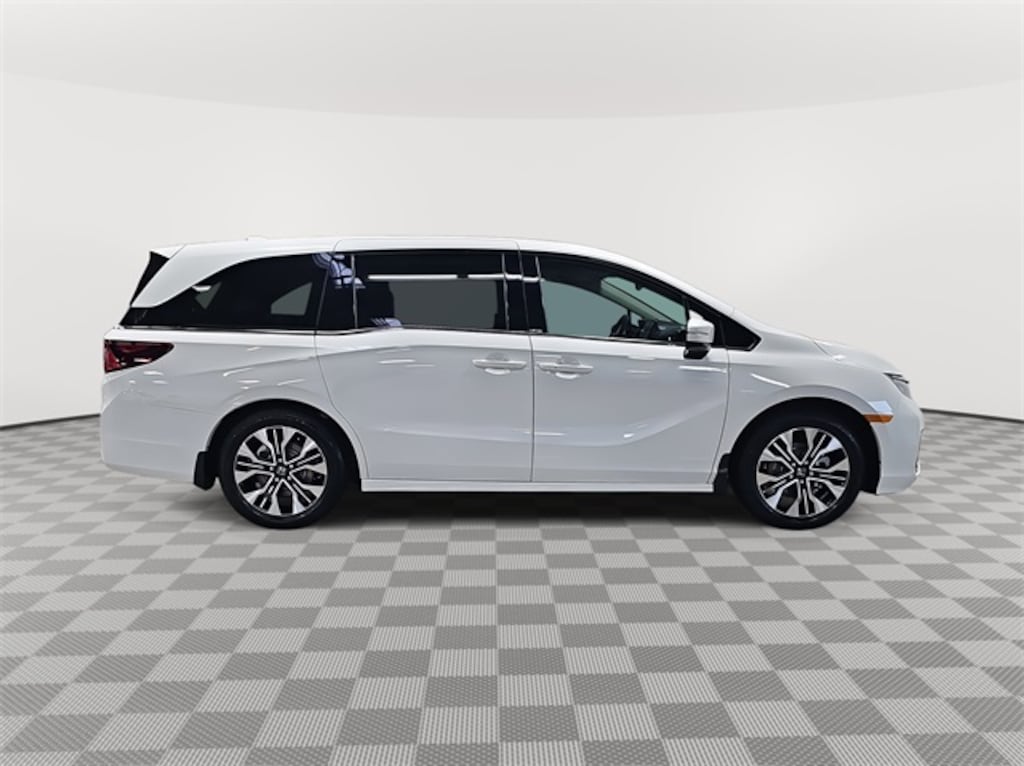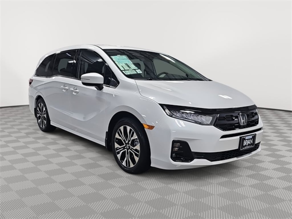 This 2026 Honda Odyssey Elite in Platinum White Pearl features: 11 Speakers, 3rd row seats: split-bench, 4-Wheel Disc Brakes, ABS brakes, Adaptive Cruise Control: Adaptive Cruise Control (ACC) with Low-Speed Follow, Air Conditioning, Alloy wheels, AM/FM radio: SiriusXM, Anti-whiplash front head restraints, Apple CarPlay/Android Auto, Auto High-beam Headlights, Auto-dimming door mirrors, Auto-dimming Rear-View mirror, Automatic temperature control, Blind Spot Information (BSI) System warning, Brake assist, Bumpers: body-color, Compass, Delay-off headlights, Driver door bin, Driver vanity mirror, Driver's Seat Mounted Armrest, Dual front impact airbags, Dual front side impact airbags, Electronic Stability Control, Emergency communication system: HondaLink, Exterior Parking Camera Rear, Four wheel independent suspension, Front anti-roll bar, Front Bucket Seats, Front dual zone A/C, Front fog lights, Front reading lights, Fully automatic headlights, Garage door transmitter: HomeLink, Heated & Ventilated Front Bucket Seats, Heated door mirrors, Heated front seats, Heated steering wheel, Illuminated entry, Knee airbag, Lane departure: Lane Keeping Assist System (LKAS) active, Leather steering wheel, Low tire pressure warning, Memory seat, Navigation system: Honda Satellite-Linked Navigation System, Occupant sensing airbag, Outside temperature display, Overhead airbag, Overhead console, Panic alarm, Passenger door bin, Passenger seat mounted armrest, Passenger vanity mirror, Perforated Leather-Trimmed Seats w/Piping, Power door mirrors, Power driver seat, Power Liftgate, Power moonroof, Power passenger seat, Power steering, Power windows, Radio data system, Radio: 500-Watt AM/FM/HD Premium Audio System, Rain sensing wipers, Rear air conditioning, Rear anti-roll bar, Rear audio controls, Rear reading lights, Rear seat center armrest, Rear window defroster, Rear window wiper, Reclining 3rd row seat, Remote keyless entry, Security system, Speed control, Speed-sensing steering, Speed-Sensitive Wipers, Split folding rear seat, Spoiler, Steering wheel mounted audio controls, Tachometer, Telescoping steering wheel, Tilt steering wheel, Traction control, Trip computer, Turn signal indicator mirrors, Variably intermittent wipers, Ventilated front seats, Wheels: 19" Machine-Finished Alloy.