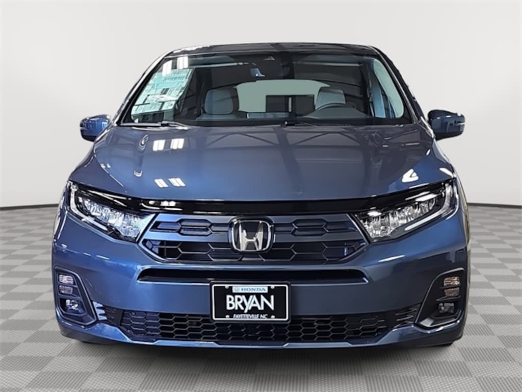 This 2026 Honda Odyssey EX-L in Smoke Blue Pearl features: 18" Machine-Finished Alloy Wheels, 3rd row seats: split-bench, 4-Wheel Disc Brakes, 7 Speakers, ABS brakes, Adaptive Cruise Control: Adaptive Cruise Control (ACC) with Low-Speed Follow, Air Conditioning, Alloy wheels, AM/FM radio: SiriusXM, Anti-whiplash front head restraints, Apple CarPlay/Android Auto, Auto High-beam Headlights, Auto-dimming Rear-View mirror, Automatic temperature control, Blind Spot Information (BSI) System warning, Brake assist, Bumpers: body-color, Delay-off headlights, Driver door bin, Driver vanity mirror, Driver's Seat Mounted Armrest, Dual front impact airbags, Dual front side impact airbags, Electronic Stability Control, Exterior Parking Camera Rear, Four wheel independent suspension, Front anti-roll bar, Front Bucket Seats, Front dual zone A/C, Front fog lights, Front reading lights, Fully automatic headlights, Garage door transmitter: HomeLink, Heated door mirrors, Heated Front Bucket Seats, Heated front seats, Illuminated entry, Knee airbag, Lane departure: Lane Keeping Assist System (LKAS) active, Leather steering wheel, Leather-Trimmed Seats, Low tire pressure warning, Memory seat, Occupant sensing airbag, Outside temperature display, Overhead airbag, Overhead console, Panic alarm, Passenger door bin, Passenger seat mounted armrest, Passenger vanity mirror, Power door mirrors, Power driver seat, Power Liftgate, Power moonroof, Power passenger seat, Power steering, Power windows, Radio data system, Radio: 160-Watt AM/FM/HD/SiriusXM Audio System, Rear air conditioning, Rear anti-roll bar, Rear reading lights, Rear seat center armrest, Rear window defroster, Rear window wiper, Reclining 3rd row seat, Remote keyless entry, Security system, Speed control, Speed-sensing steering, Speed-Sensitive Wipers, Split folding rear seat, Spoiler, Steering wheel mounted audio controls, Tachometer, Telescoping steering wheel, Tilt steering wheel, Traction control, Trip computer, Turn signal indicator mirrors, Variably intermittent wipers.