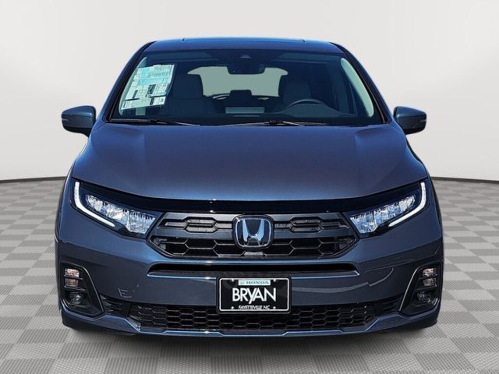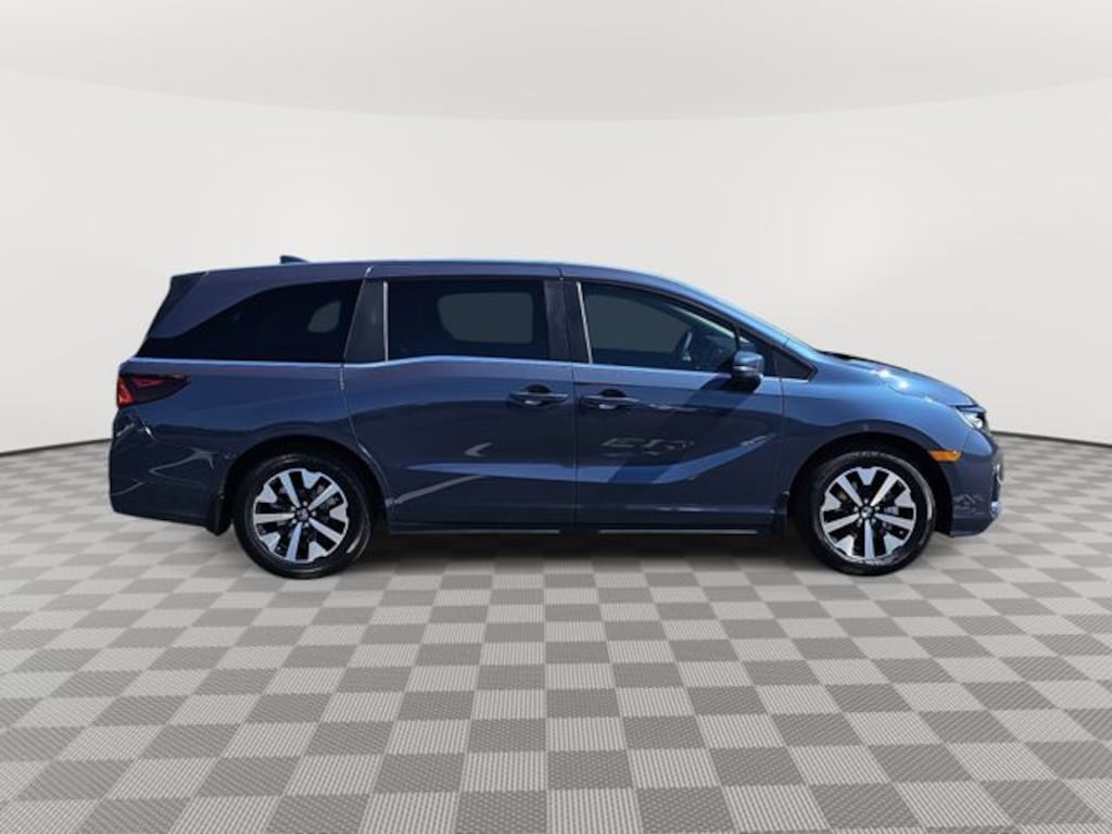 This 2026 Honda Odyssey EX-L in Smoke Blue Pearl features: 18" Machine-Finished Alloy Wheels, 3rd row seats: split-bench, 4-Wheel Disc Brakes, 7 Speakers, ABS brakes, Adaptive Cruise Control: Adaptive Cruise Control (ACC) with Low-Speed Follow, Air Conditioning, Alloy wheels, AM/FM radio: SiriusXM, Anti-whiplash front head restraints, Apple CarPlay/Android Auto, Auto High-beam Headlights, Auto-dimming Rear-View mirror, Automatic temperature control, Blind Spot Information (BSI) System warning, Brake assist, Bumpers: body-color, Delay-off headlights, Driver door bin, Driver vanity mirror, Driver's Seat Mounted Armrest, Dual front impact airbags, Dual front side impact airbags, Electronic Stability Control, Exterior Parking Camera Rear, Four wheel independent suspension, Front anti-roll bar, Front Bucket Seats, Front dual zone A/C, Front fog lights, Front reading lights, Fully automatic headlights, Garage door transmitter: HomeLink, Heated door mirrors, Heated Front Bucket Seats, Heated front seats, Illuminated entry, Knee airbag, Lane departure: Lane Keeping Assist System (LKAS) active, Leather steering wheel, Leather-Trimmed Seats, Low tire pressure warning, Memory seat, Occupant sensing airbag, Outside temperature display, Overhead airbag, Overhead console, Panic alarm, Passenger door bin, Passenger seat mounted armrest, Passenger vanity mirror, Power door mirrors, Power driver seat, Power Liftgate, Power moonroof, Power passenger seat, Power steering, Power windows, Radio data system, Radio: 160-Watt AM/FM/HD/SiriusXM Audio System, Rear air conditioning, Rear anti-roll bar, Rear reading lights, Rear seat center armrest, Rear window defroster, Rear window wiper, Reclining 3rd row seat, Remote keyless entry, Security system, Speed control, Speed-sensing steering, Speed-Sensitive Wipers, Split folding rear seat, Spoiler, Steering wheel mounted audio controls, Tachometer, Telescoping steering wheel, Tilt steering wheel, Traction control, Trip computer, Turn signal indicator mirrors, Variably intermittent wipers.