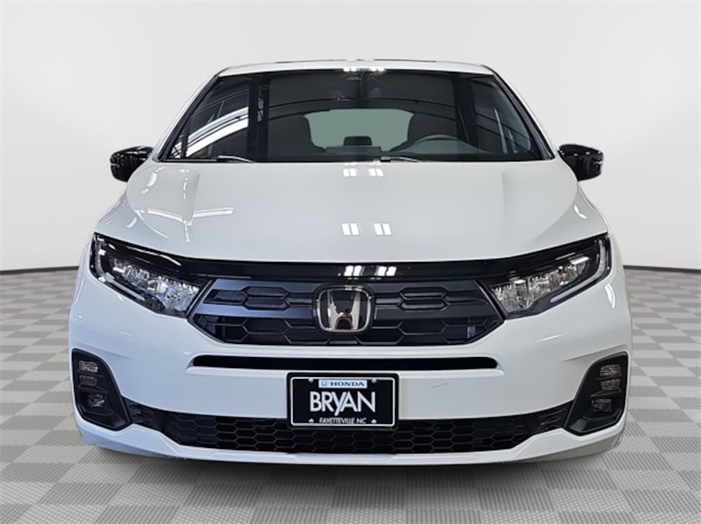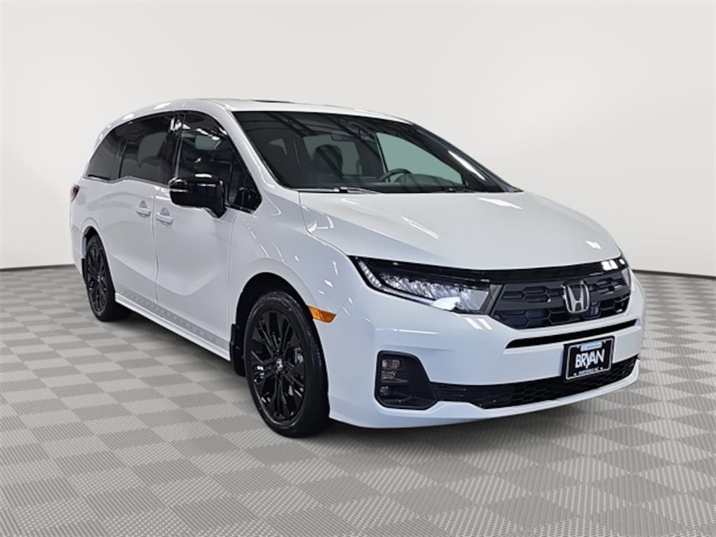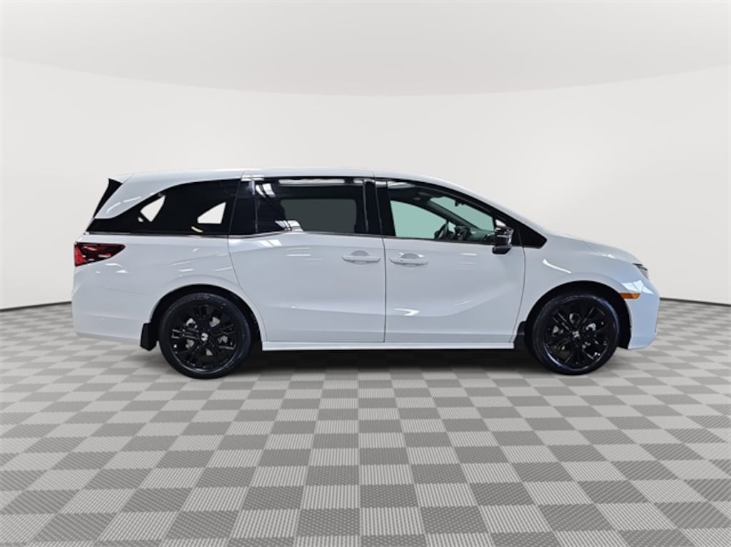 This 2026 Honda Odyssey Sport-L in Platinum White Pearl features: 3rd row seats: split-bench, 4-Wheel Disc Brakes, 7 Speakers, ABS brakes, Adaptive Cruise Control: Adaptive Cruise Control (ACC) with Low-Speed Follow, Air Conditioning, Alloy wheels, AM/FM radio: SiriusXM, Anti-whiplash front head restraints, Apple CarPlay/Android Auto, Auto High-beam Headlights, Auto-dimming Rear-View mirror, Automatic temperature control, Blind Spot Information (BSI) System warning, Brake assist, Bumpers: body-color, Delay-off headlights, Driver door bin, Driver vanity mirror, Driver's Seat Mounted Armrest, Dual front impact airbags, Dual front side impact airbags, Electronic Stability Control, Exterior Parking Camera Rear, Four wheel independent suspension, Front anti-roll bar, Front Bucket Seats, Front dual zone A/C, Front fog lights, Front reading lights, Fully automatic headlights, Garage door transmitter: HomeLink, Heated door mirrors, Heated Front Bucket Seats, Heated front seats, Illuminated entry, Knee airbag, Lane departure: Lane Keeping Assist System (LKAS) active, Leather steering wheel, Leather-Trimmed Seats, Low tire pressure warning, Memory seat, Occupant sensing airbag, Outside temperature display, Overhead airbag, Overhead console, Panic alarm, Passenger door bin, Passenger seat mounted armrest, Passenger vanity mirror, Power door mirrors, Power driver seat, Power Liftgate, Power moonroof, Power passenger seat, Power steering, Power windows, Radio data system, Radio: 160-Watt AM/FM/HD/SiriusXM Audio System, Rear air conditioning, Rear anti-roll bar, Rear reading lights, Rear seat center armrest, Rear window defroster, Rear window wiper, Reclining 3rd row seat, Remote keyless entry, Security system, Speed control, Speed-sensing steering, Speed-Sensitive Wipers, Split folding rear seat, Spoiler, Steering wheel mounted audio controls, Tachometer, Telescoping steering wheel, Tilt steering wheel, Traction control, Trip computer, Turn signal indicator mirrors, Variably intermittent wipers, Wheels: 19" Gloss Black Alloy.