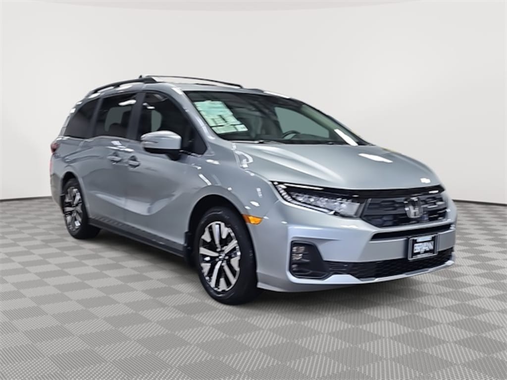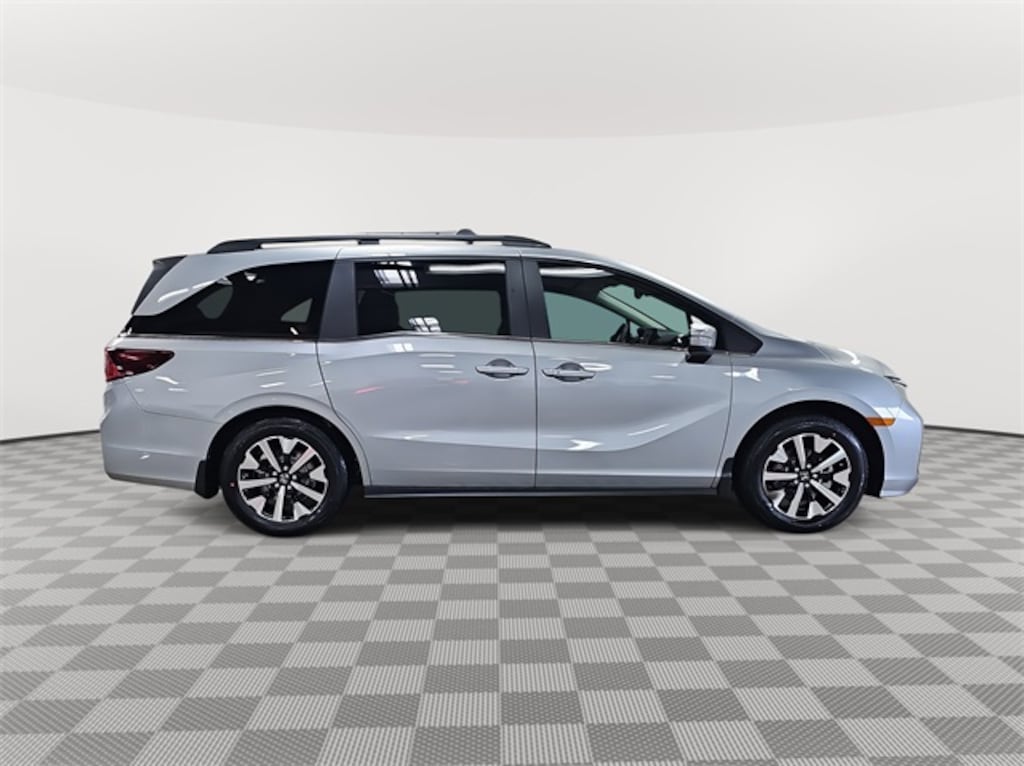 This 2026 Honda Odyssey EX-L in Solar Silver Metallic features: 18" Machine-Finished Alloy Wheels, 3rd row seats: split-bench, 4-Wheel Disc Brakes, 7 Speakers, ABS brakes, Adaptive Cruise Control: Adaptive Cruise Control (ACC) with Low-Speed Follow, Air Conditioning, Alloy wheels, AM/FM radio: SiriusXM, Anti-whiplash front head restraints, Apple CarPlay/Android Auto, Auto High-beam Headlights, Auto-dimming Rear-View mirror, Automatic temperature control, Blind Spot Information (BSI) System warning, Brake assist, Bumpers: body-color, Delay-off headlights, Driver door bin, Driver vanity mirror, Driver's Seat Mounted Armrest, Dual front impact airbags, Dual front side impact airbags, Electronic Stability Control, Exterior Parking Camera Rear, Four wheel independent suspension, Front anti-roll bar, Front Bucket Seats, Front dual zone A/C, Front fog lights, Front reading lights, Fully automatic headlights, Garage door transmitter: HomeLink, Heated door mirrors, Heated Front Bucket Seats, Heated front seats, Illuminated entry, Knee airbag, Lane departure: Lane Keeping Assist System (LKAS) active, Leather steering wheel, Leather-Trimmed Seats, Low tire pressure warning, Memory seat, Occupant sensing airbag, Outside temperature display, Overhead airbag, Overhead console, Panic alarm, Passenger door bin, Passenger seat mounted armrest, Passenger vanity mirror, Power door mirrors, Power driver seat, Power Liftgate, Power moonroof, Power passenger seat, Power steering, Power windows, Radio data system, Radio: 160-Watt AM/FM/HD/SiriusXM Audio System, Rear air conditioning, Rear anti-roll bar, Rear reading lights, Rear seat center armrest, Rear window defroster, Rear window wiper, Reclining 3rd row seat, Remote keyless entry, Security system, Speed control, Speed-sensing steering, Speed-Sensitive Wipers, Split folding rear seat, Spoiler, Steering wheel mounted audio controls, Tachometer, Telescoping steering wheel, Tilt steering wheel, Traction control, Trip computer, Turn signal indicator mirrors, Variably intermittent wipers.