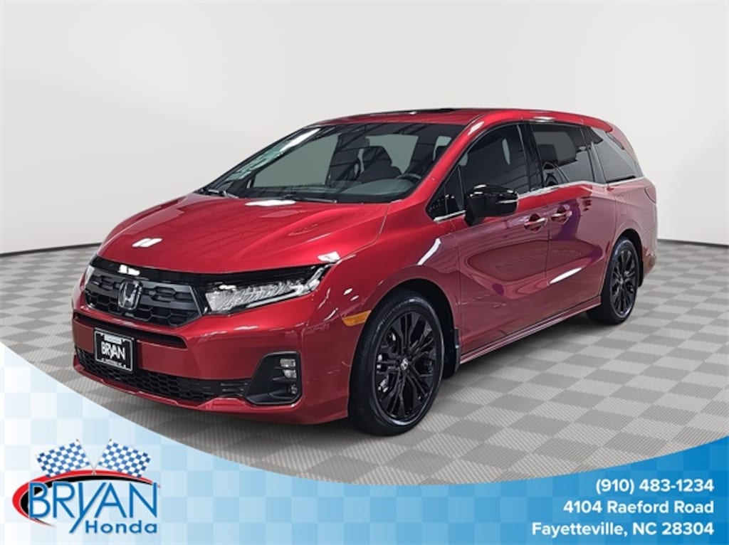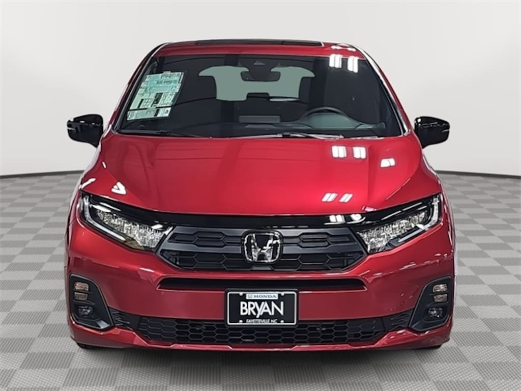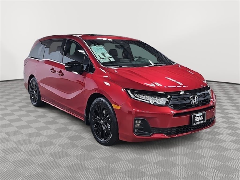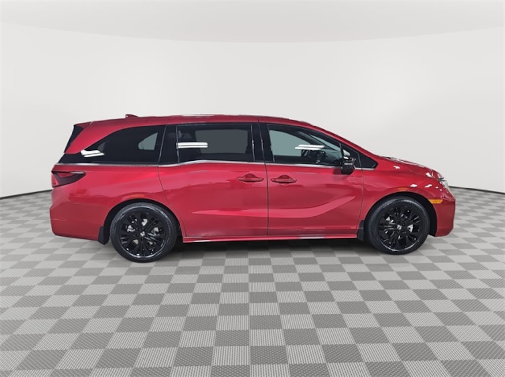 This 2026 Honda Odyssey Sport-L in Radiant Red Metallic II features: 3rd row seats: split-bench, 4-Wheel Disc Brakes, 7 Speakers, ABS brakes, Adaptive Cruise Control: Adaptive Cruise Control (ACC) with Low-Speed Follow, Air Conditioning, Alloy wheels, AM/FM radio: SiriusXM, Anti-whiplash front head restraints, Apple CarPlay/Android Auto, Auto High-beam Headlights, Auto-dimming Rear-View mirror, Automatic temperature control, Blind Spot Information (BSI) System warning, Brake assist, Bumpers: body-color, Delay-off headlights, Driver door bin, Driver vanity mirror, Driver's Seat Mounted Armrest, Dual front impact airbags, Dual front side impact airbags, Electronic Stability Control, Exterior Parking Camera Rear, Four wheel independent suspension, Front anti-roll bar, Front Bucket Seats, Front dual zone A/C, Front fog lights, Front reading lights, Fully automatic headlights, Garage door transmitter: HomeLink, Heated door mirrors, Heated Front Bucket Seats, Heated front seats, Illuminated entry, Knee airbag, Lane departure: Lane Keeping Assist System (LKAS) active, Leather steering wheel, Leather-Trimmed Seats, Low tire pressure warning, Memory seat, Occupant sensing airbag, Outside temperature display, Overhead airbag, Overhead console, Panic alarm, Passenger door bin, Passenger seat mounted armrest, Passenger vanity mirror, Power door mirrors, Power driver seat, Power Liftgate, Power moonroof, Power passenger seat, Power steering, Power windows, Radio data system, Radio: 160-Watt AM/FM/HD/SiriusXM Audio System, Rear air conditioning, Rear anti-roll bar, Rear reading lights, Rear seat center armrest, Rear window defroster, Rear window wiper, Reclining 3rd row seat, Remote keyless entry, Security system, Speed control, Speed-sensing steering, Speed-Sensitive Wipers, Split folding rear seat, Spoiler, Steering wheel mounted audio controls, Tachometer, Telescoping steering wheel, Tilt steering wheel, Traction control, Trip computer, Turn signal indicator mirrors, Variably intermittent wipers, Wheels: 19" Gloss Black Alloy.