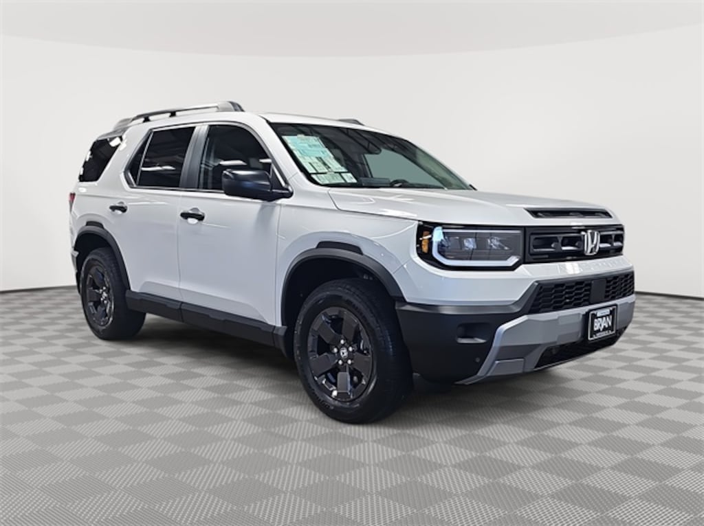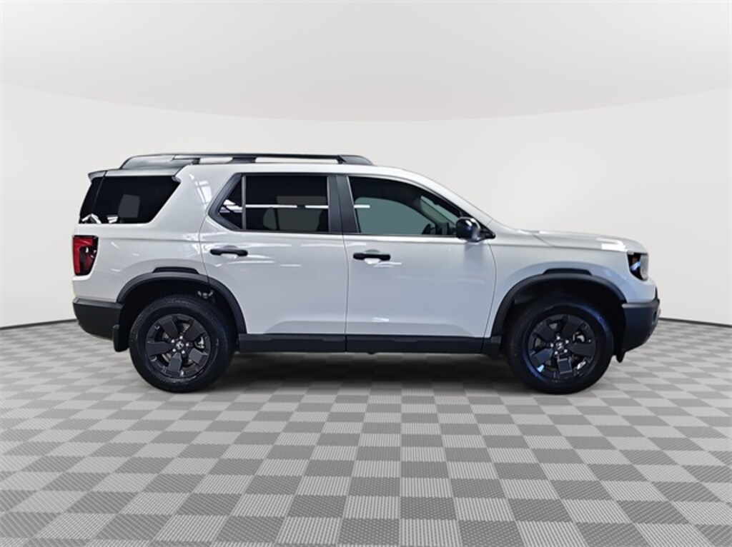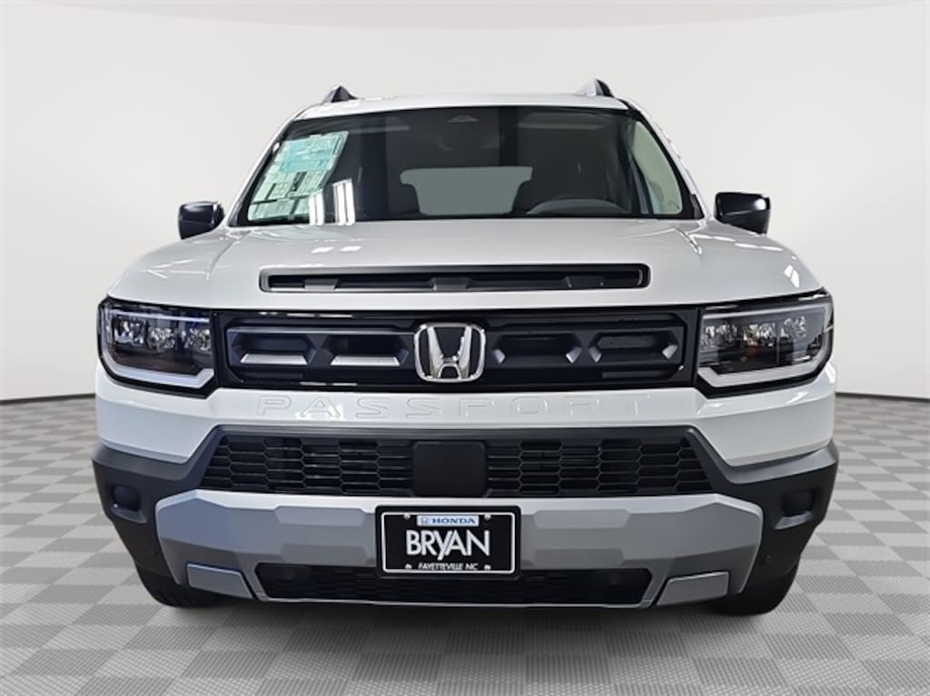 This 2026 Honda Passport RTL in Platinum White Pearl features: 4-Wheel Disc Brakes, 9 Speakers, ABS brakes, Adaptive Cruise Control: Adaptive Cruise Control (ACC) with Low-Speed Follow, Air Conditioning, Alloy wheels, Apple CarPlay/Android Auto, Auto High-beam Headlights, Auto-dimming Rear-View mirror, Automatic temperature control, Blind Spot Information (BSI) System warning, Brake assist, Compass, Delay-off headlights, Driver door bin, Driver vanity mirror, Driver's Seat Mounted Armrest, Dual front impact airbags, Dual front side impact airbags, Electronic Stability Control, Emergency communication system: HondaLink, Exterior Parking Camera Rear, Four wheel independent suspension, Front anti-roll bar, Front Bucket Seats, Front Center Armrest, Front dual zone A/C, Front reading lights, Fully automatic headlights, Heated door mirrors, Heated Front Bucket Seats, Heated front seats, HVAC memory, Illuminated entry, Knee airbag, Lane departure: Lane Keeping Assist System (LKAS) active, Leather & Cloth Seat Trim, Leather steering wheel, Low tire pressure warning, Memory seat, Navigation system: Google Maps, Occupant sensing airbag, Outside temperature display, Overhead airbag, Overhead console, Panic alarm, Passenger door bin, Passenger seat mounted armrest, Passenger vanity mirror, Power door mirrors, Power driver seat, Power Liftgate, Power passenger seat, Power steering, Power windows, Radio data system, Radio: Audio System w/9 Speakers, Rear air conditioning, Rear anti-roll bar, Rear reading lights, Rear seat center armrest, Rear window defroster, Rear window wiper, Remote keyless entry, Security system, Speed control, Speed-sensing steering, Split folding rear seat, Spoiler, Steering wheel mounted audio controls, Tachometer, Telescoping steering wheel, Tilt steering wheel, Traction control, Trip computer, Variably intermittent wipers, Wheels: 18" Shark Gray Alloy.