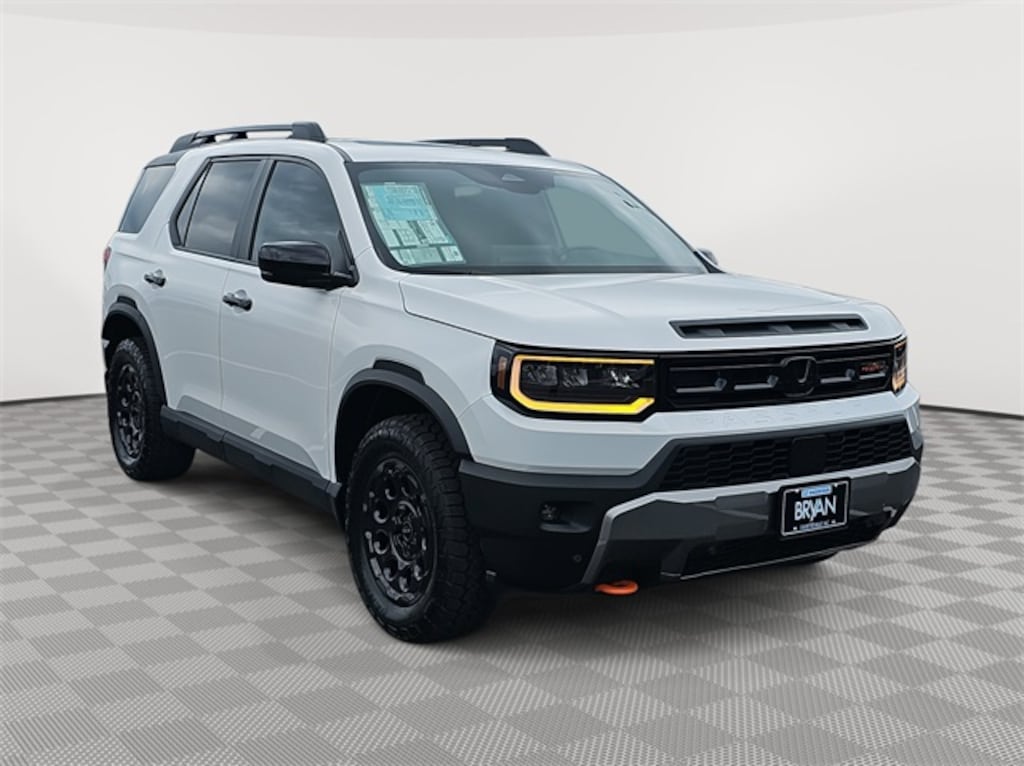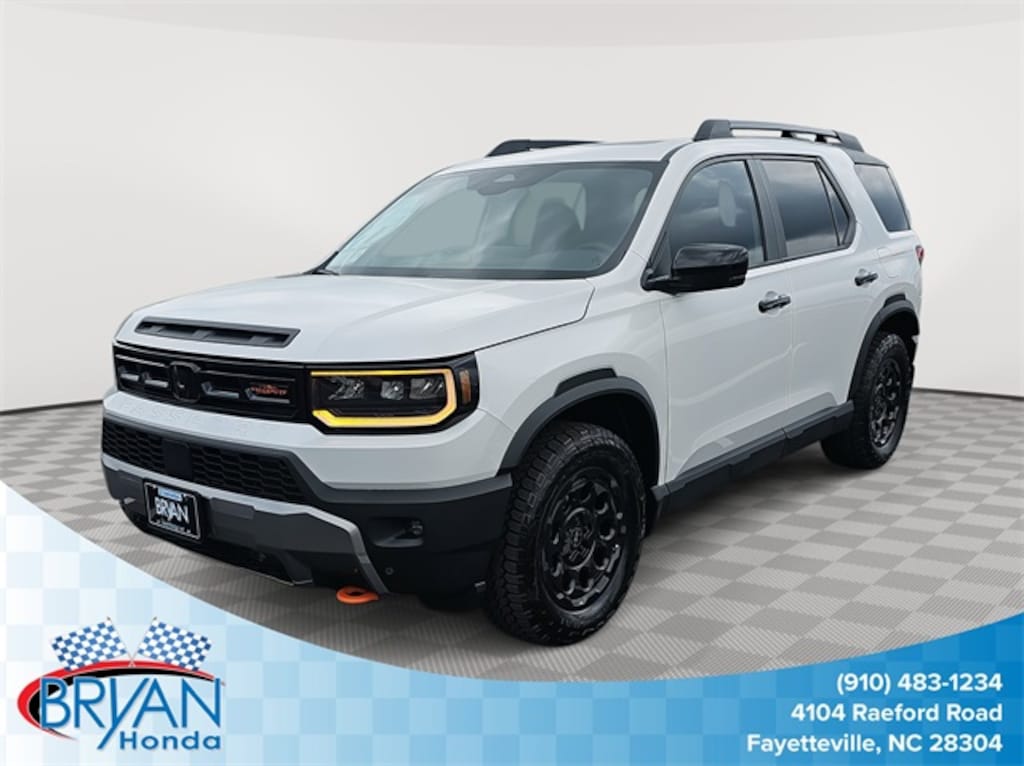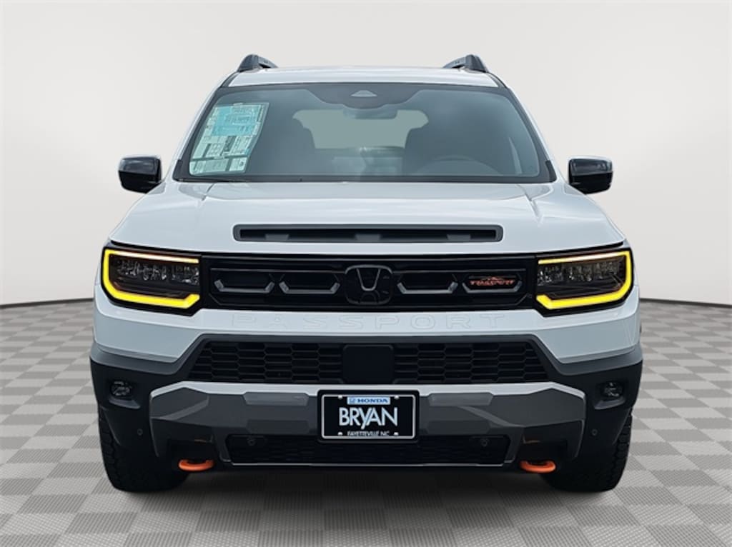 This 2026 Honda Passport TrailSport Blackout in Platinum White Pearl features: 4-Wheel Disc Brakes, 9 Speakers, ABS brakes, Adaptive Cruise Control: Adaptive Cruise Control (ACC) with Low-Speed Follow, Air Conditioning, Alloy wheels, Apple CarPlay/Android Auto, Auto High-beam Headlights, Auto-dimming Rear-View mirror, Automatic temperature control, Blind Spot Information (BSI) System warning, Brake assist, Compass, Delay-off headlights, Driver door bin, Driver vanity mirror, Driver's Seat Mounted Armrest, Dual front impact airbags, Dual front side impact airbags, Durable Leatherette & Cloth Seat Trim, Electronic Stability Control, Emergency communication system: HondaLink, Exterior Parking Camera Rear, Four wheel independent suspension, Front anti-roll bar, Front Bucket Seats, Front Center Armrest, Front dual zone A/C, Front fog lights, Front reading lights, Fully automatic headlights, Heated door mirrors, Heated Front Bucket Seats, Heated front seats, HVAC memory, Illuminated entry, Knee airbag, Lane departure: Lane Keeping Assist System (LKAS) active, Leather steering wheel, Low tire pressure warning, Memory seat, Navigation system: Google Maps, Occupant sensing airbag, Outside temperature display, Overhead airbag, Overhead console, Panic alarm, Passenger door bin, Passenger seat mounted armrest, Passenger vanity mirror, Power door mirrors, Power driver seat, Power Liftgate, Power moonroof, Power passenger seat, Power steering, Power windows, Radio data system, Radio: Audio System w/9 Speakers, Rear air conditioning, Rear anti-roll bar, Rear reading lights, Rear seat center armrest, Rear window defroster, Rear window wiper, Remote keyless entry, Security system, Speed control, Speed-sensing steering, Split folding rear seat, Spoiler, Steering wheel mounted audio controls, Tachometer, Telescoping steering wheel, Tilt steering wheel, Traction control, Trip computer, Turn signal indicator mirrors, Variably intermittent wipers, Wheels: 18" HPD Black Alloy.