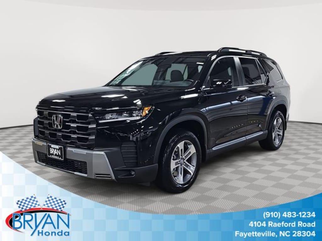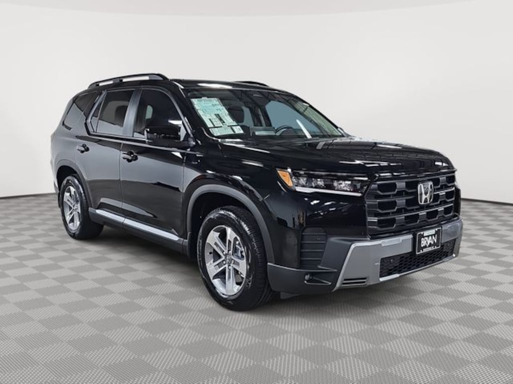 This 2026 Honda Pilot EX-L in Crystal Black Pearl features: 3rd row seats: split-bench, 4-Wheel Disc Brakes, 9 Speakers, ABS brakes, Adaptive Cruise Control: Adaptive Cruise Control (ACC) with Low-Speed Follow, Air Conditioning, Alloy wheels, Apple CarPlay/Android Auto, Auto High-beam Headlights, Auto-dimming Rear-View mirror, Automatic temperature control, Blind Spot Information (BSI) System warning, Brake assist, Bumpers: body-color, Compass, Delay-off headlights, Driver door bin, Driver vanity mirror, Dual front impact airbags, Dual front side impact airbags, Electronic Stability Control, Emergency communication system: HondaLink, Exterior Parking Camera Rear, Four wheel independent suspension, Front anti-roll bar, Front Bucket Seats, Front Center Armrest, Front dual zone A/C, Front fog lights, Front reading lights, Fully automatic headlights, Heated door mirrors, Heated Front Bucket Seats, Heated front seats, HondaLink, HondaLink Subscription Services, Illuminated entry, Knee airbag, Lane departure: Lane Keeping Assist System (LKAS) active, Leather-Trimmed Seat Trim with Fabric Accent, Low tire pressure warning, Memory seat, Navigation system: Google Maps, Occupant sensing airbag, Outside temperature display, Overhead airbag, Overhead console, Panic alarm, Passenger door bin, Passenger vanity mirror, Power door mirrors, Power driver seat, Power Liftgate, Power passenger seat, Power steering, Power windows, Radio data system, Radio: 245-Watt Audio System, Rear air conditioning, Rear anti-roll bar, Rear reading lights, Rear seat center armrest, Rear window defroster, Rear window wiper, Reclining 3rd row seat, Remote keyless entry, Security system, Speed control, Speed-sensing steering, Speed-Sensitive Wipers, Split folding rear seat, Spoiler, Steering wheel mounted audio controls, Tachometer, Telescoping steering wheel, Tilt steering wheel, Traction control, Trip computer, Turn signal indicator mirrors, Variably intermittent wipers, Wheels: 18" Pewter Gray Machined Face.
