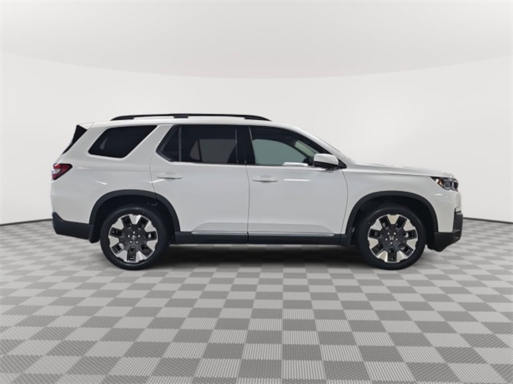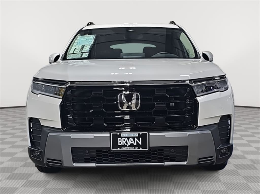 This 2026 Honda Pilot Touring in Platinum White Pearl features: AWD, AWD, 12 Speakers, 3rd row seats: split-bench, 4-Wheel Disc Brakes, ABS brakes, Adaptive Cruise Control: Adaptive Cruise Control (ACC) with Low-Speed Follow, Air Conditioning, Alloy wheels, Apple CarPlay/Android Auto, Auto High-beam Headlights, Auto-dimming Rear-View mirror, Automatic temperature control, Blind Spot Information (BSI) System warning, Bose Premium Sound System, Brake assist, Bumpers: body-color, Compass, Delay-off headlights, Driver door bin, Driver vanity mirror, Dual front impact airbags, Dual front side impact airbags, Electronic Stability Control, Emergency communication system: HondaLink, Exterior Parking Camera Rear, Four wheel independent suspension, Front anti-roll bar, Front Bucket Seats, Front Center Armrest, Front dual zone A/C, Front fog lights, Front reading lights, Fully automatic headlights, Garage door transmitter: HomeLink, Heated door mirrors, Heated Front Bucket Seats, Heated front seats, HondaLink, HondaLink Subscription Services, Illuminated entry, Knee airbag, Lane departure: Lane Keeping Assist System (LKAS) active, Leather-Trimmed Seat Trim, Low tire pressure warning, Memory seat, Navigation system: Google Maps, Occupant sensing airbag, Outside temperature display, Overhead airbag, Overhead console, Panic alarm, Passenger door bin, Passenger vanity mirror, Power door mirrors, Power driver seat, Power Liftgate, Power moonroof, Power passenger seat, Power steering, Power windows, Radio data system, Rear air conditioning, Rear anti-roll bar, Rear reading lights, Rear seat center armrest, Rear window defroster, Rear window wiper, Reclining 3rd row seat, Remote keyless entry, Security system, Speed control, Speed-sensing steering, Speed-Sensitive Wipers, Split folding rear seat, Spoiler, Steering wheel mounted audio controls, Tachometer, Telescoping steering wheel, Tilt steering wheel, Traction control, Trip computer, Turn signal indicator mirrors, Variably intermittent wipers, Wheels: 20" Shark Gray Machined Face.