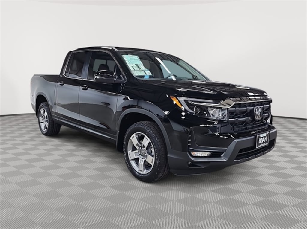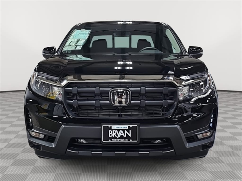 This 2026 Honda Ridgeline RTL in Crystal Black Pearl features: Black w/Leather Seat Trim, Black w/Leather Seat Trim, 4-Wheel Disc Brakes, 4.33 Axle Ratio, 7 Speakers, ABS brakes, Air Conditioning, Alloy wheels, AM/FM radio: SiriusXM, Auto-dimming Rear-View mirror, Automatic temperature control, Blind Spot Information (BSI) System warning, Bluetooth® Hands-Free Link, Brake assist, Bumpers: body-color, Compass, Delay-off headlights, Driver door bin, Driver vanity mirror, Driver's Seat Mounted Armrest, Dual front impact airbags, Dual front side impact airbags, Electronic Stability Control, Emergency communication system: HondaLink Assist, Exterior Parking Camera Rear, Four wheel independent suspension, Front anti-roll bar, Front Bucket Seats, Front dual zone A/C, Front fog lights, Front reading lights, Fully automatic headlights, Garage door transmitter: HomeLink, Heated door mirrors, Heated Front Bucket Seats, Heated front seats, Illuminated entry, Leather Seat Trim, Leather steering wheel, Low tire pressure warning, Memory seat, Occupant sensing airbag, Outside temperature display, Overhead airbag, Overhead console, Panic alarm, Passenger door bin, Passenger seat mounted armrest, Passenger vanity mirror, Power door mirrors, Power driver seat, Power moonroof, Power passenger seat, Power steering, Power windows, Radio data system, Radio: 215-Watt Audio System with 7 Speakers, Rear air conditioning, Rear anti-roll bar, Rear reading lights, Rear seat center armrest, Rear step bumper, Rear window defroster, Remote keyless entry, Security system, SiriusXM, Speed control, Speed-sensing steering, Split folding rear seat, Steering wheel mounted audio controls, Tachometer, Telescoping steering wheel, Tilt steering wheel, Traction control, Trip computer, Turn signal indicator mirrors, Variably intermittent wipers, Wheels: 18" Pewter Gray Machine-Finished Alloy.