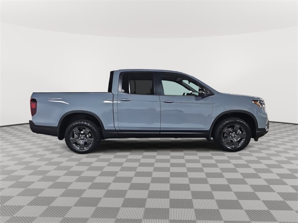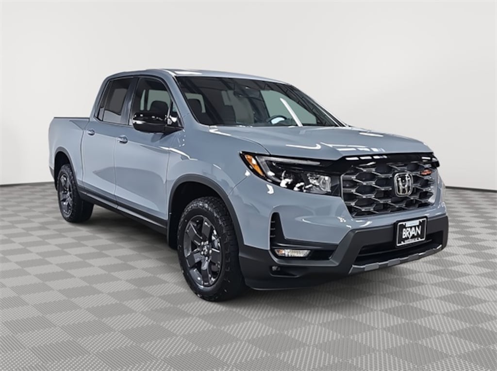 This 2026 Honda Ridgeline TrailSport in Sonic Gray Pearl features: Blk Lth Leather, Blk Lth Leather, 4-Wheel Disc Brakes, 4.33 Axle Ratio, 7 Speakers, ABS brakes, Air Conditioning, Alloy wheels, AM/FM radio: SiriusXM, Auto-dimming Rear-View mirror, Automatic temperature control, Blind Spot Information (BSI) System warning, Bluetooth® Hands-Free Link, Brake assist, Bumpers: body-color, Compass, Delay-off headlights, Driver door bin, Driver vanity mirror, Driver's Seat Mounted Armrest, Dual front impact airbags, Dual front side impact airbags, Electronic Stability Control, Emergency communication system: HondaLink Assist, Exterior Parking Camera Rear, Four wheel independent suspension, Front anti-roll bar, Front Bucket Seats, Front dual zone A/C, Front fog lights, Front reading lights, Fully automatic headlights, Garage door transmitter: HomeLink, Heated door mirrors, Heated Front Bucket Seats, Heated front seats, Heated steering wheel, Honda Satellite-Linked Navigation System, Illuminated entry, Leather Seat Trim, Leather steering wheel, Low tire pressure warning, Memory seat, Navigation system: Honda Satellite-Linked Navigation System, Occupant sensing airbag, Outside temperature display, Overhead airbag, Overhead console, Panic alarm, Passenger door bin, Passenger seat mounted armrest, Passenger vanity mirror, Power door mirrors, Power driver seat, Power moonroof, Power passenger seat, Power steering, Power windows, Radio data system, Radio: 215-Watt Audio System w/7 Speakers, Rear air conditioning, Rear anti-roll bar, Rear reading lights, Rear seat center armrest, Rear step bumper, Rear window defroster, Remote keyless entry, Security system, SiriusXM, Speed control, Speed-sensing steering, Split folding rear seat, Steering wheel mounted audio controls, Tachometer, Telescoping steering wheel, Tilt steering wheel, Traction control, Trip computer, Turn signal indicator mirrors, Variably intermittent wipers, Wheels: 18" TrailSport Shark Gray Alloy.