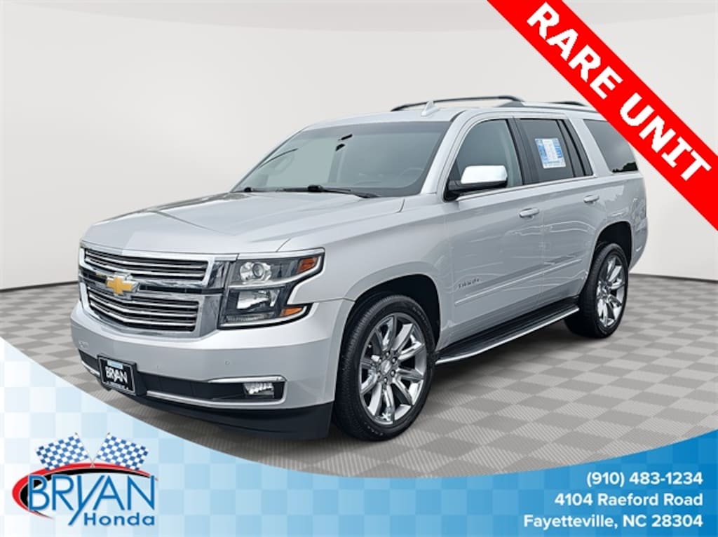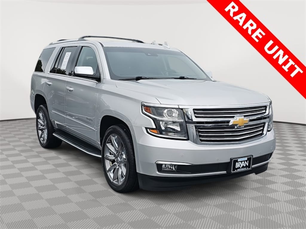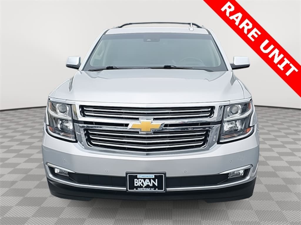 This 2017 Chevrolet Tahoe Premier in Silver Ice Metallic features: 4WD, Cocoa/Dune Leather, 4WD, Cocoa/Dune Leather, 10 Speakers, 1st & 2nd Row Color-Keyed Carpeted Floor Mats, 3.08 Rear Axle Ratio, 3.42 Rear Axle Ratio, 3rd Row 60/40 Power Fold Split-Bench, 3rd row seats: split-bench, 4-Wheel Antilock Disc Brakes w/Brake Assist, 4-Wheel Disc Brakes, 5 12-Volt Auxiliary Power Outlets, 6-Way Power Front Passenger Seat Adjuster, ABS brakes, Adaptive Cruise Control w/Front Automatic Braking, Adaptive suspension, Adjustable pedals, Air Conditioning, Alloy wheels, AM/FM radio: SiriusXM, Apple CarPlay/Android Auto, Auto High-beam Headlights, Auto-dimming door mirrors, Auto-Dimming Inside Rear-View Mirror, Auto-dimming Rear-View mirror, Automatic Collision Preparation, Automatic temperature control, Black Assist Steps w/Chrome Accent Strip, Black Roof Rack Cross Rails, Bodyside moldings, Bose Centerpoint Premium 10-Speaker Surround Sound, Brake assist, Bumpers: body-color, Cargo Net, CD player, Color-Keyed Carpeting Floor Covering, Compass, Delay-off headlights, Driver door bin, Driver Inboard & Front Passenger Airbags, Driver vanity mirror, Dual front impact airbags, Dual front side impact airbags, Electronic Cruise Control w/Set & Resume Speed, Electronic Stability Control, Emergency communication system: OnStar Guidance, Enhanced Driver Alert Package (Y86), Enhanced Driver Information Center, Exterior Parking Camera Rear, Floor Console, Fog Lamps, Forward Collision Alert Sensor Indicator, Front & Rear Parking Assist, Front anti-roll bar, Front Bucket Seats, Front Center Armrest, Front dual zone A/C, Front fog lights, Front Heated Reclining Bucket Seats, Front reading lights, Front wheel independent suspension, Fully automatic headlights, Garage door transmitter, Hands Free Power Liftgate, Head-Up Display, Heated & Vented Driver & Front Passenger Seats, Heated 2nd Row Seats, Heated door mirrors, Heated front seats, Heated Leather Wrapped Steering Wheel, Heated rear seats, Heated steering wheel, High-Intensity Discharge Headlights, Illuminated entry, Integrated Trailer Brake Controller, IntelliBeam Headlamps, Lane Keep Assist, License Plate Front Mounting Package, Low Speed Forward Automatic Braking, Low tire pressure warning, Magnetic Ride Control Suspension Package, Max Trailering Package, Memory seat, Memory Settings, Navigation System, NavTraffic, Occupant sensing airbag, OnStar Basic Plan For 5 Years, Outside temperature display, Overhead airbag, Overhead console, Panic alarm, Passenger door bin, Passenger vanity mirror, Passive Entry System, Pedal memory, Perforated Leather-Appointed Seat Trim, Power door mirrors, Power driver seat, Power Liftgate, Power passenger seat, Power Release 2nd Row Bucket Seats, Power steering, Power Sunroof, Power Tilt & Telescopic Steering Column, Power windows, Power-Adjustable Accelerator & Brake Pedals, Power-Folding Heated Outside Mirrors, Preferred Equipment Group 1LZ, Premium audio system: Chevrolet MyLink, Push Button Keyless Start, Radio: Chevrolet MyLink w/Nav/AM/FM Stereo, Rain sensing wipers, Rear air conditioning, Rear anti-roll bar, Rear Cross-Traffic Alert, Rear reading lights, Rear Seat Blu-Ray/DVD Entertainment System, Rear window defroster, Rear window wiper, Remote Keyless Entry, Remote keyless entry, Remote Vehicle Start, Roof rack: rails only, Roof-Mounted Luggage Rack Side Rails, Security system, Set of 4 Wheel Locks (LPO), Side Blind Zone Alert w/Lane Change Alert, Single-Slot CD/MP3 Player, SiriusXM Satellite Radio, Speed control, Speed-sensing steering, Split folding rear seat, Spoiler, Steering wheel memory, Steering wheel mounted audio controls, Sun, Entertainment & Destinations Package, Tachometer, Telescoping steering wheel, Tilt steering wheel, Traction control, Trip computer, Turn signal indicator mirrors, Universal Home Remote, VAC Power 4-Wheel Disc