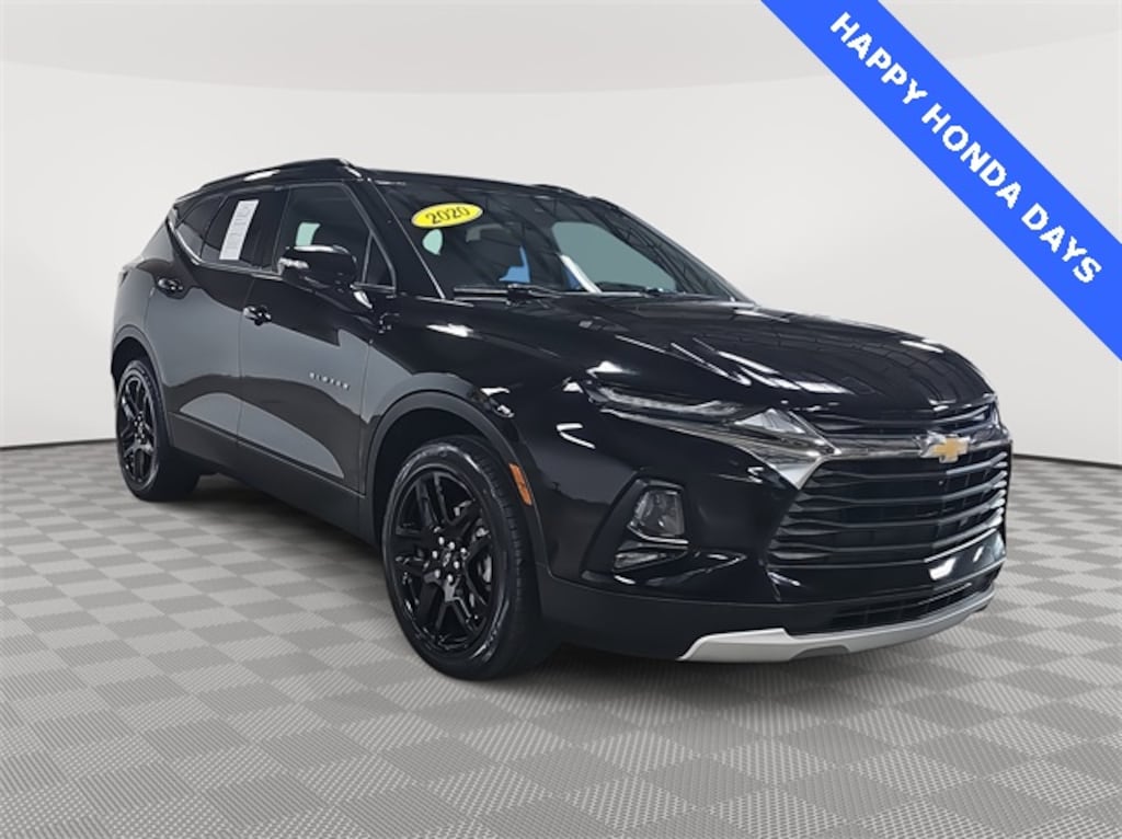 This 2020 Chevrolet Blazer LT in Black features: 120-Volt Power Outlet, 155 Amp Alternator, 170 Amp Alternator, 2 USB Data Ports w/SD Card Reader, 4-Wheel Disc Brakes, 6 Speakers, 6-Speaker Audio System Feature, 6-Way Power Front Passenger Seat Adjuster, ABS brakes, Air Conditioning, Alloy wheels, AM/FM radio: SiriusXM, Apple CarPlay/Android Auto, Auto-dimming door mirrors, Auto-dimming Rear-View mirror, Automatic temperature control, Black Roof Rails, Brake assist, Bumpers: body-color, Child-Seat-Sensing Airbag, Compass, Delay-off headlights, Driver door bin, Driver vanity mirror, Dual front impact airbags, Dual front side impact airbags, Electronic Stability Control, Emergency communication system: OnStar and Chevrolet connected services capable, Exterior Parking Camera Rear, Four wheel independent suspension, Front anti-roll bar, Front Bucket Seats, Front Center Armrest, Front dual zone A/C, Front reading lights, Fully automatic headlights, Garage door transmitter, HD Surround Vision, Heated door mirrors, Heated Driver & Front Passenger Seats, Heated front seats, High-Intensity Discharge Headlights, Illuminated entry, Inside Rear-View Auto-Dimming Mirror, Knee airbag, Lane Change Alert w/Side Blind Zone Alert, Leather Shift Knob, Low tire pressure warning, Occupant sensing airbag, Outside Heated Power-Adjustable Body-Color Mirrors, Outside temperature display, Overhead airbag, Overhead console, Panic alarm, Passenger door bin, Passenger vanity mirror, Perforated Leather-Appointed Seat Trim, Power door mirrors, Power driver seat, Power Liftgate, Power Panoramic Tilt-Sliding Sunroof, Power passenger seat, Power steering, Power windows, Preferred Equipment Group 3LT, Radio data system, Radio: Chevrolet Infotainment 3 Premium System, Radio: Chevrolet Infotainment 3 System, Rear anti-roll bar, Rear Camera Mirror, Rear Cross Traffic Alert, Rear Park Assist w/Audible Warning, Rear Power Programmable Liftgate, Rear reading lights, Rear seat center armrest, Rear window defroster, Rear window wiper, Remote keyless entry, Remote Start, Ride & Handling Suspension, Security system, SiriusXM Radio, SiriusXM w/360L, Sound & Technology Package, Speed control, Speed-sensing steering, Split folding rear seat, Spoiler, Steering wheel mounted audio controls, Tachometer, Telescoping steering wheel, Tilt steering wheel, Traction control, Trip computer, Turn signal indicator mirrors, Universal Home Remote, Variably intermittent wipers, Voltmeter, Wheels: 18" Bright Silver Aluminum, Wheels: 20" Gloss Black Aluminum (LPO), Wheels: 20" Transit.